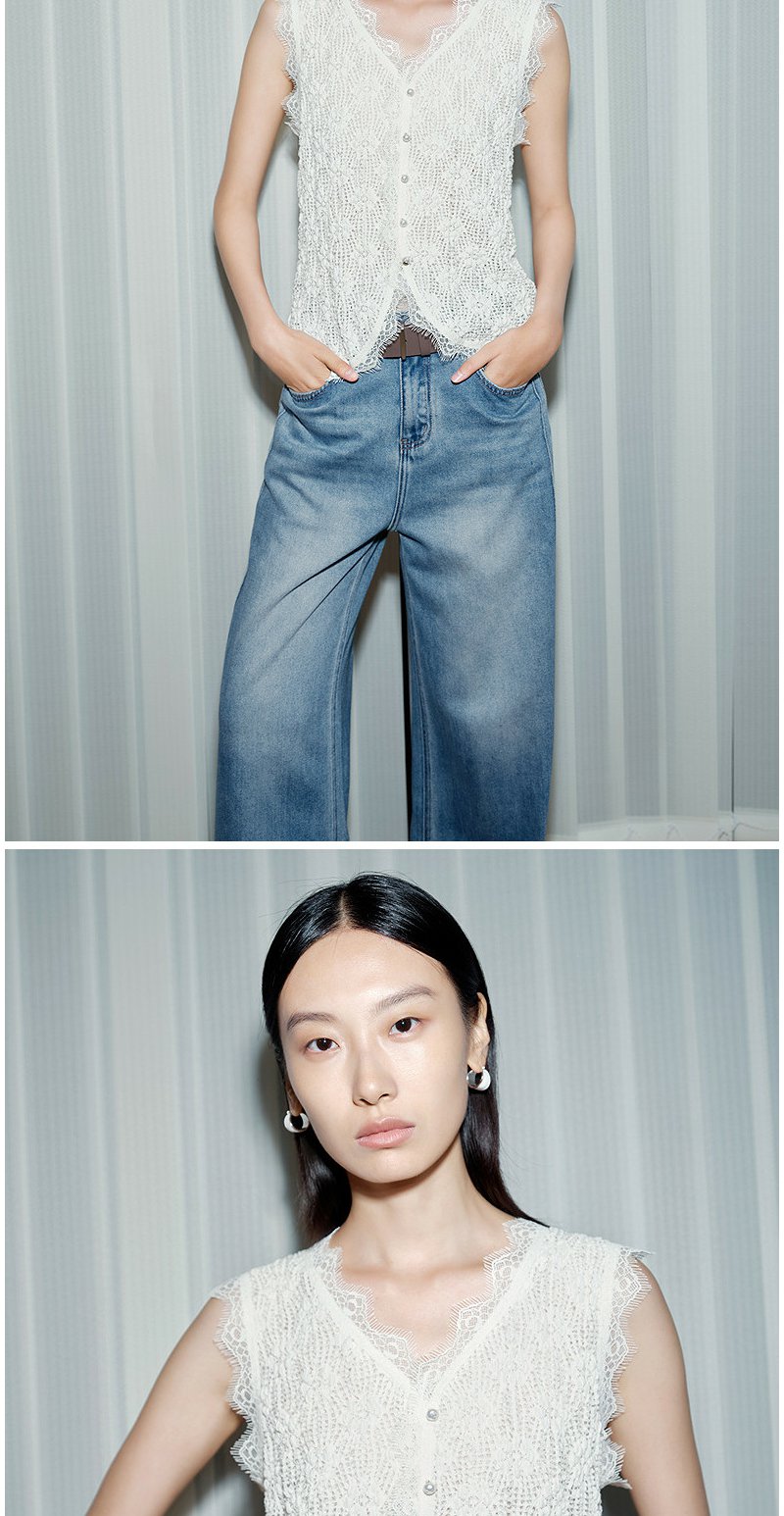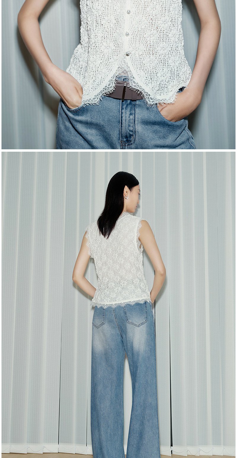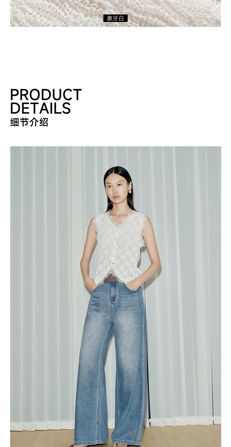 NEELLY纳俪商场同款夏季新款高弹泡泡针织蕾丝背心女气质舒适上衣N26054R04423