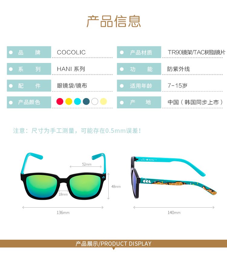 7岁-15岁儿童偏光太阳镜| 七色可选 BABY TR90超轻镜框·高清防紫外线偏光镜片cocolic