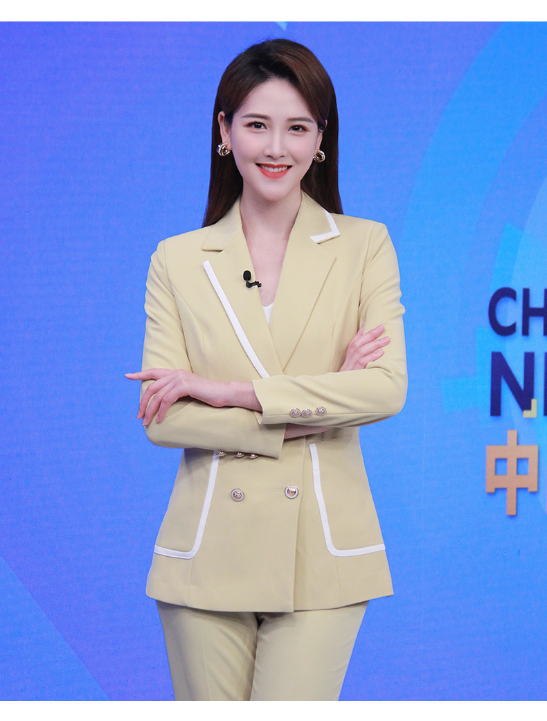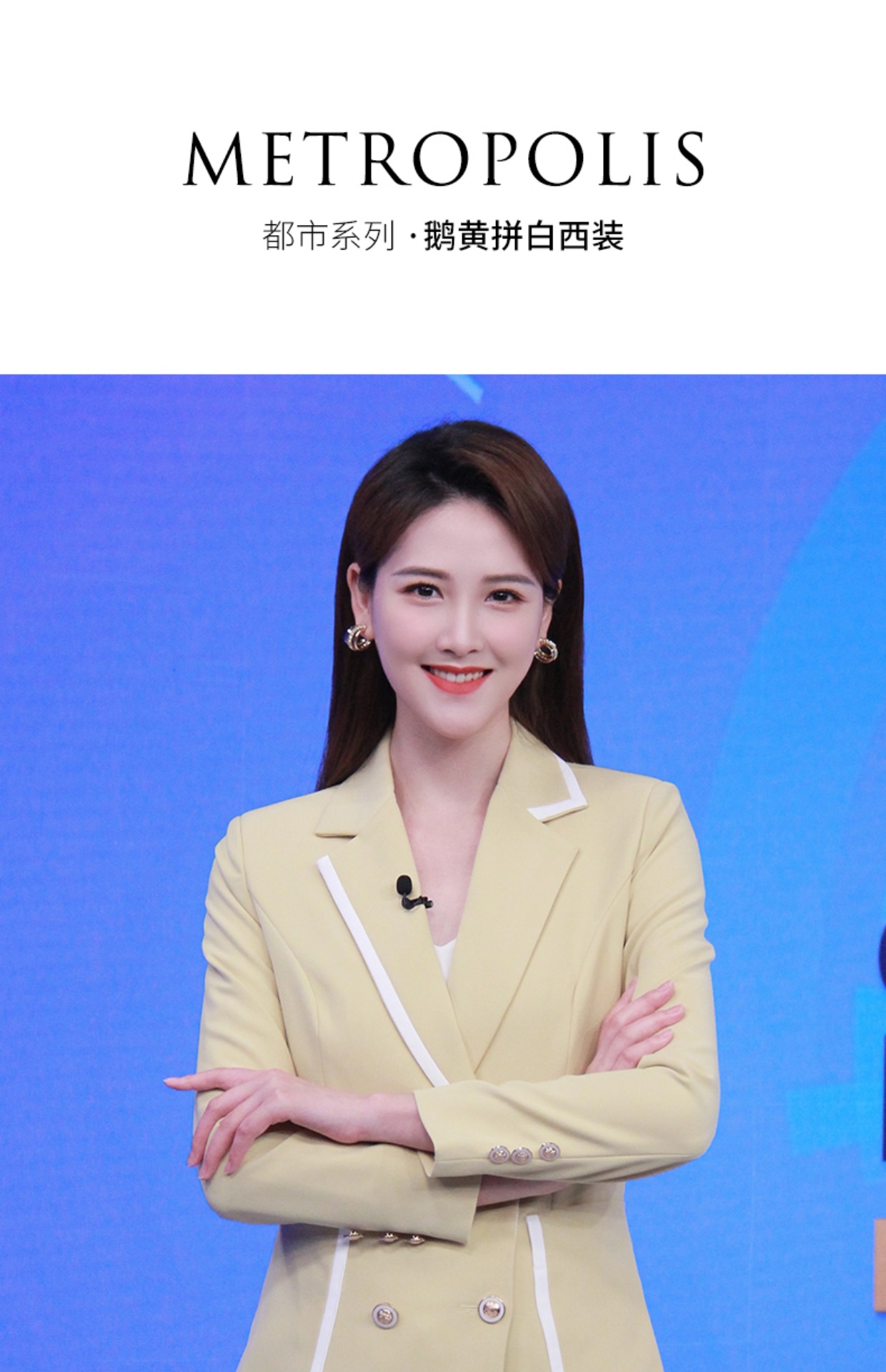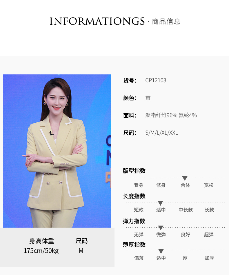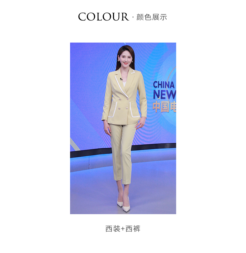 IWY/高级感鹅黄色西服套装女气质主持人上镜正装长袖工作服职业西装女CP12103