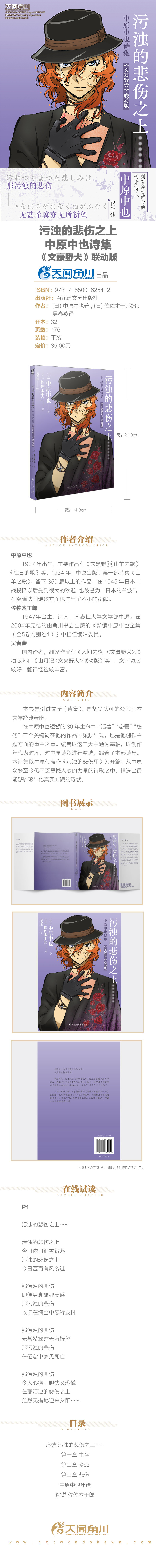 污浊的悲伤之上 : 中原中也诗集 : 《文豪野犬》联动版(小说)随书附赠:动画《文豪野犬》中原中也人物角色 精美卡片1张
