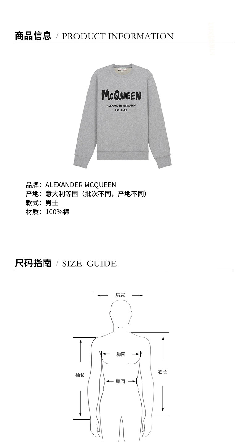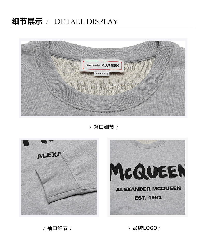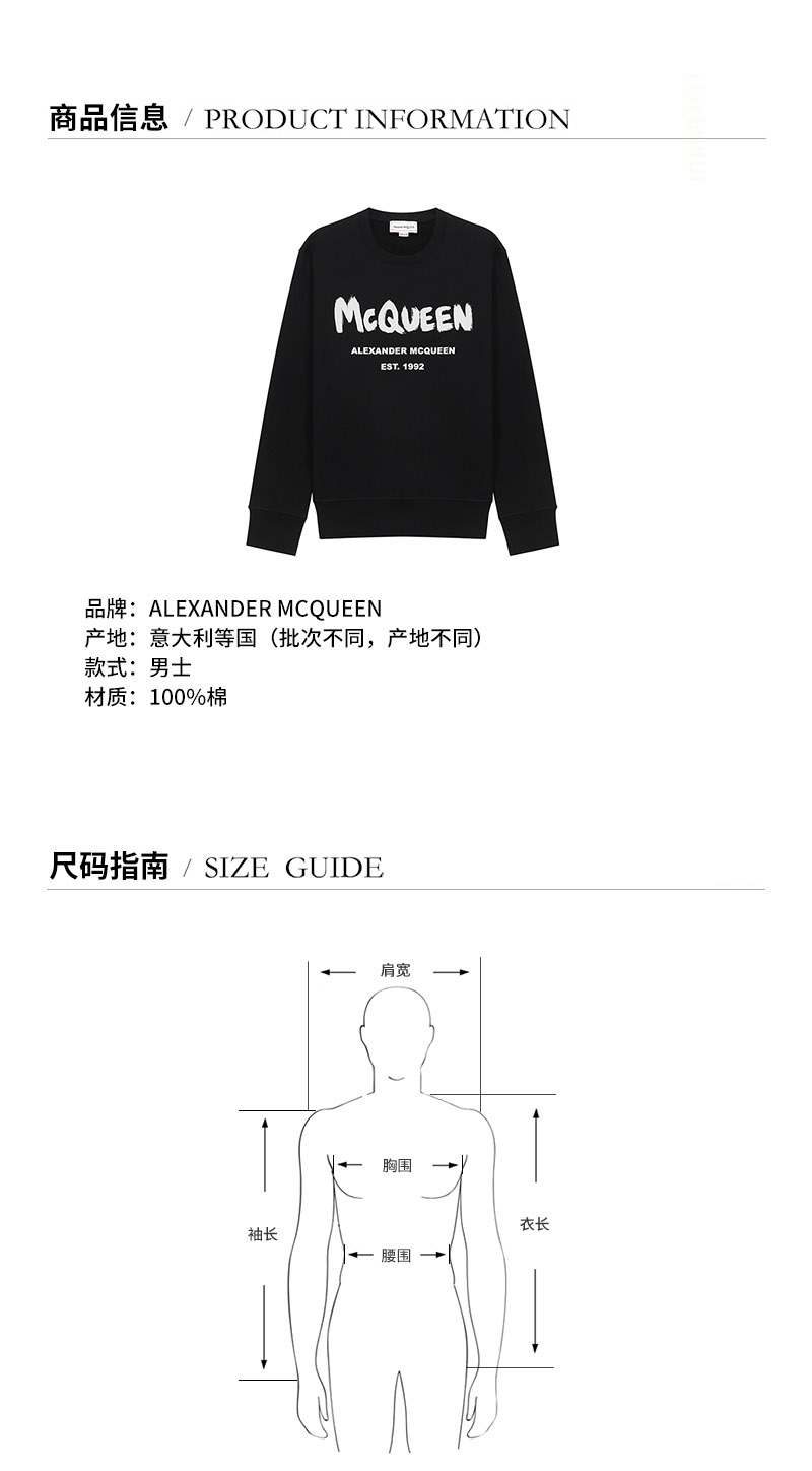 Alexander McQueen/亚历山大麦昆 2021款 男卫衣 男士棉质圆领长袖卫衣运动衫 662578 QRZ71