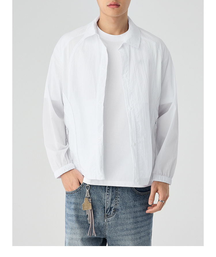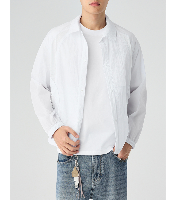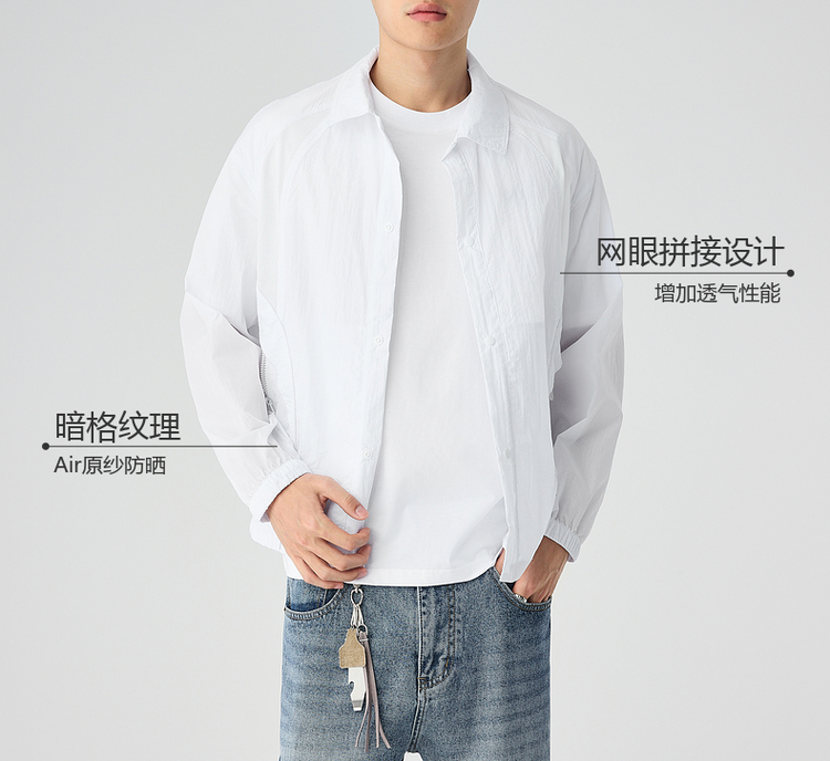 墨麦客2025夏季新款UPF50+原纱男士翻领轻薄防晒衣网眼宽松防晒服