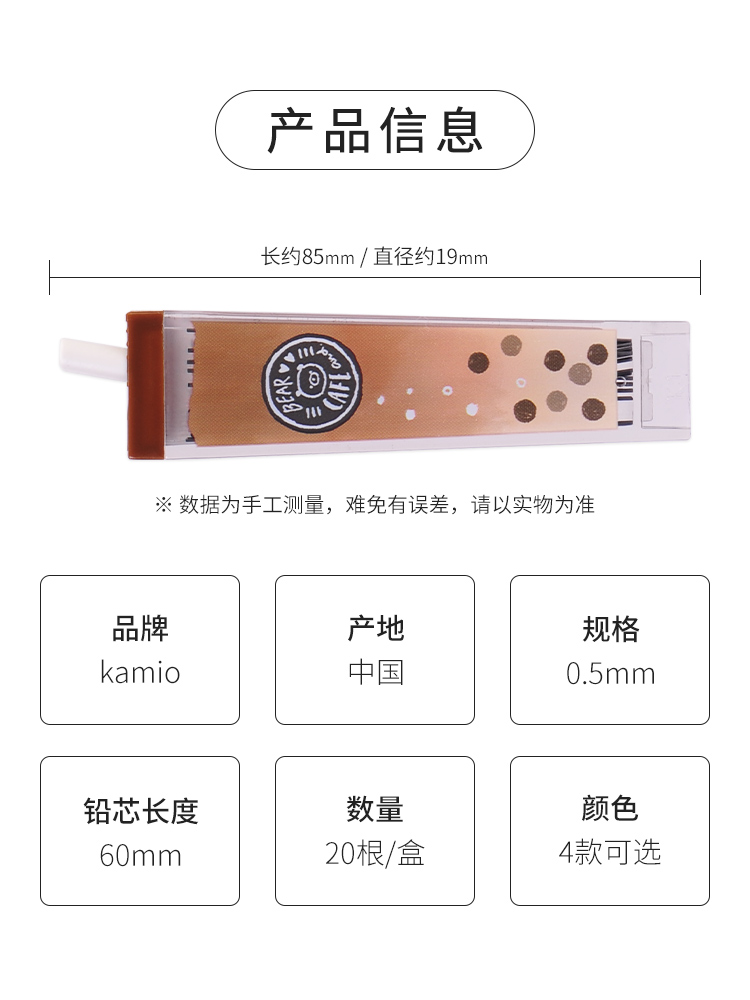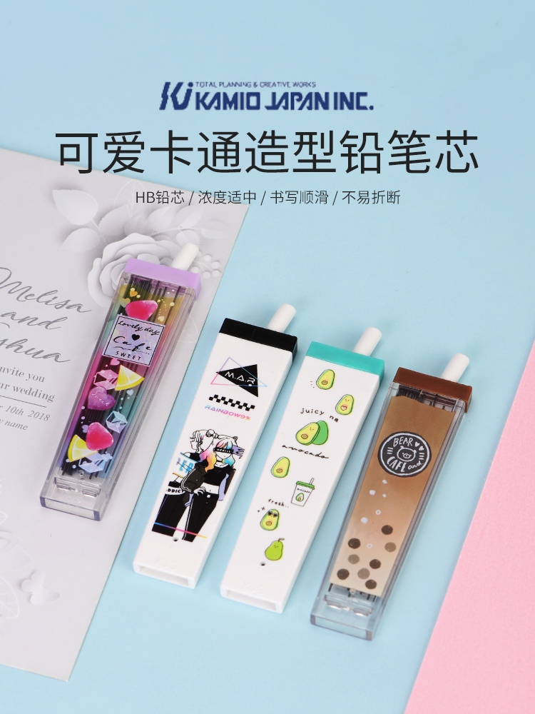 日本进口KAMIO可爱卡通铅芯0.5mm不易断芯HB自动铅笔替芯果汁奶茶造型