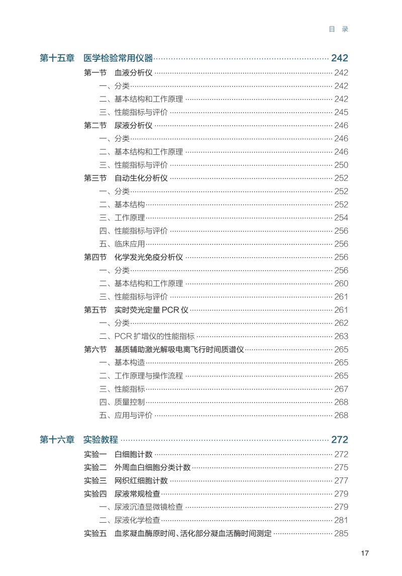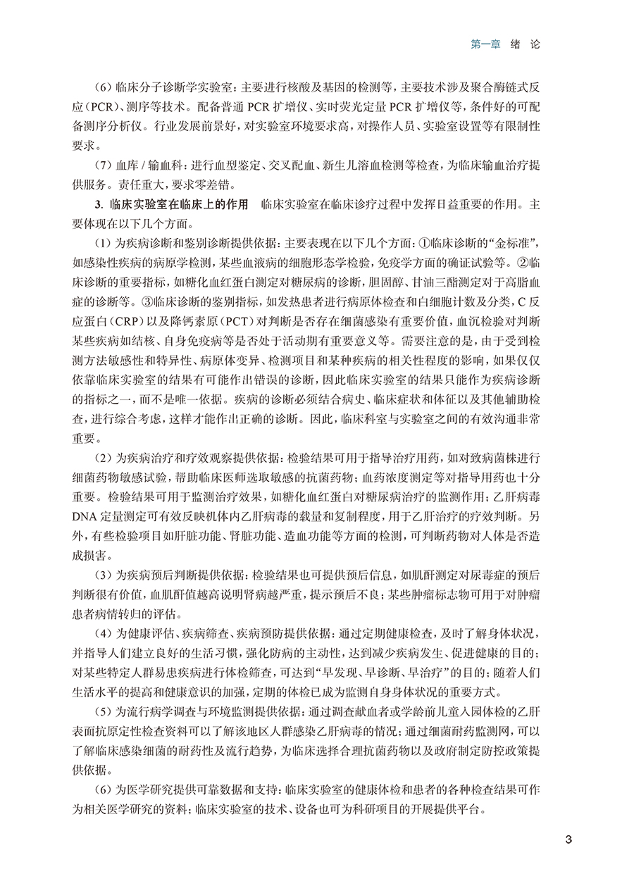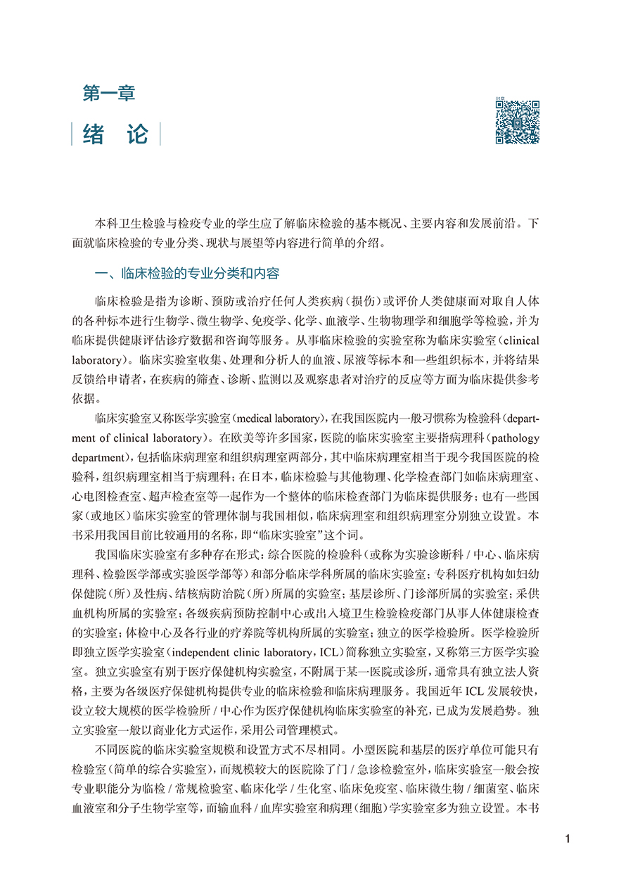作为一本综合性、概括性教材,全书共十七章,首先介绍临床检验的专业分类和内容及临床检验的现状和展望,其次介绍临床检验的质量控制和安全管理的基础知识,然后以器官系统疾病的实验诊断为主线,分别介绍临床常规检验、临床血液学检验、临床输血检验、临床生化检验、临床免疫学检验以及分子诊断医学等经典的理论和常见技术原理、参考区间、影响因素、临床价值及其评价等,同时介绍了临床实验室常用的分析仪器,并安排了14个经典的实验内容。在有些章节引入真实临床案例及分析,内容丰富生动,实用性强。