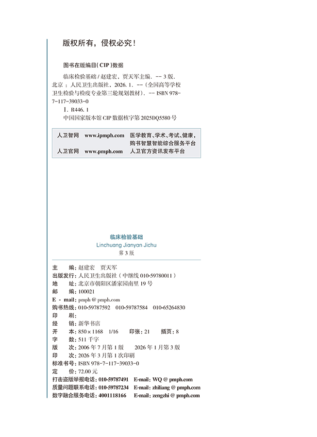 临床检验基础 第3三版 赵建宏 贾天军 主编 十五五规划教材 全国高等学校教材 供卫生检验与检疫专业用 本科 人民卫生出版社