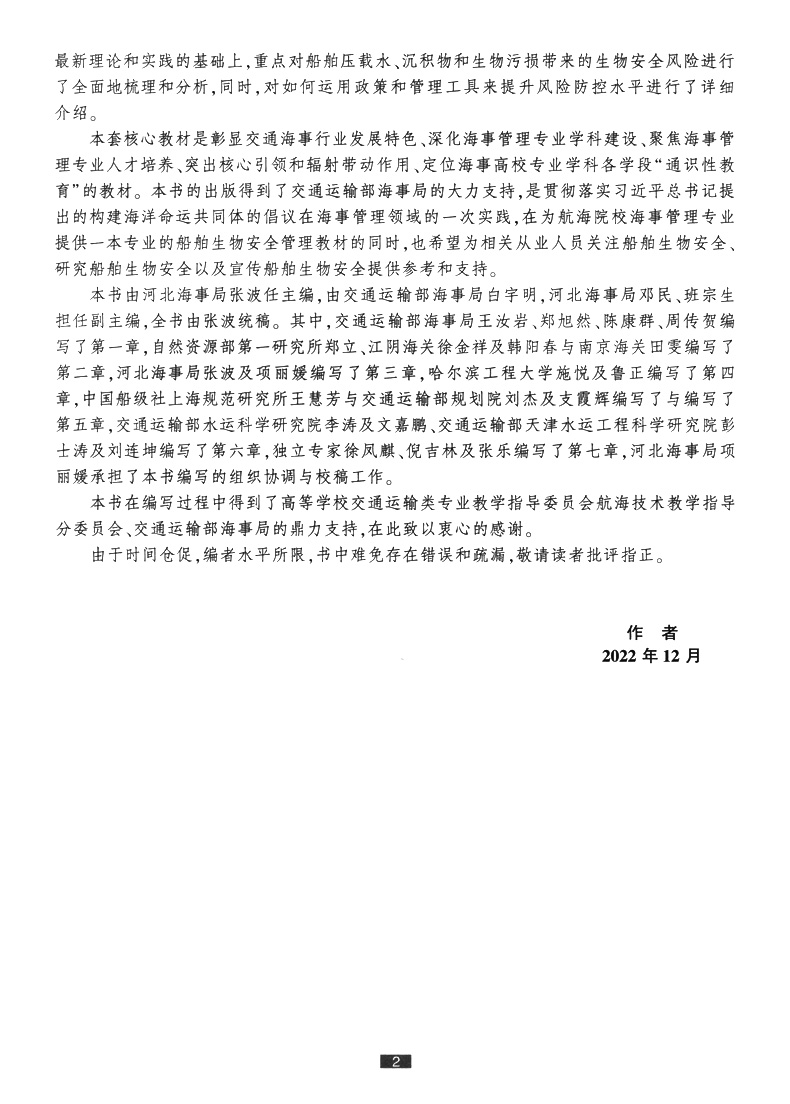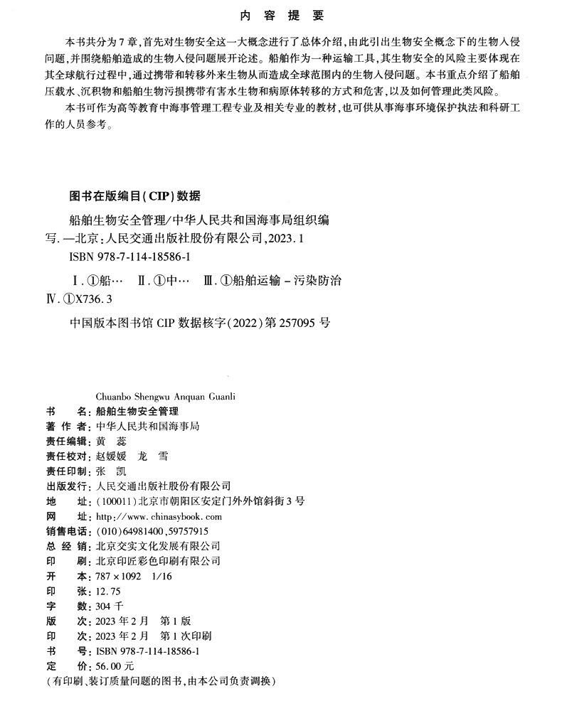 船舶生物安全管理 海事管理核心教材 中华人民共和国海事局编