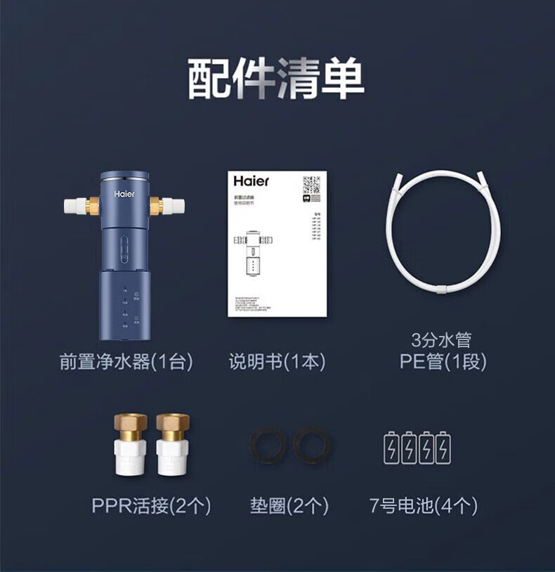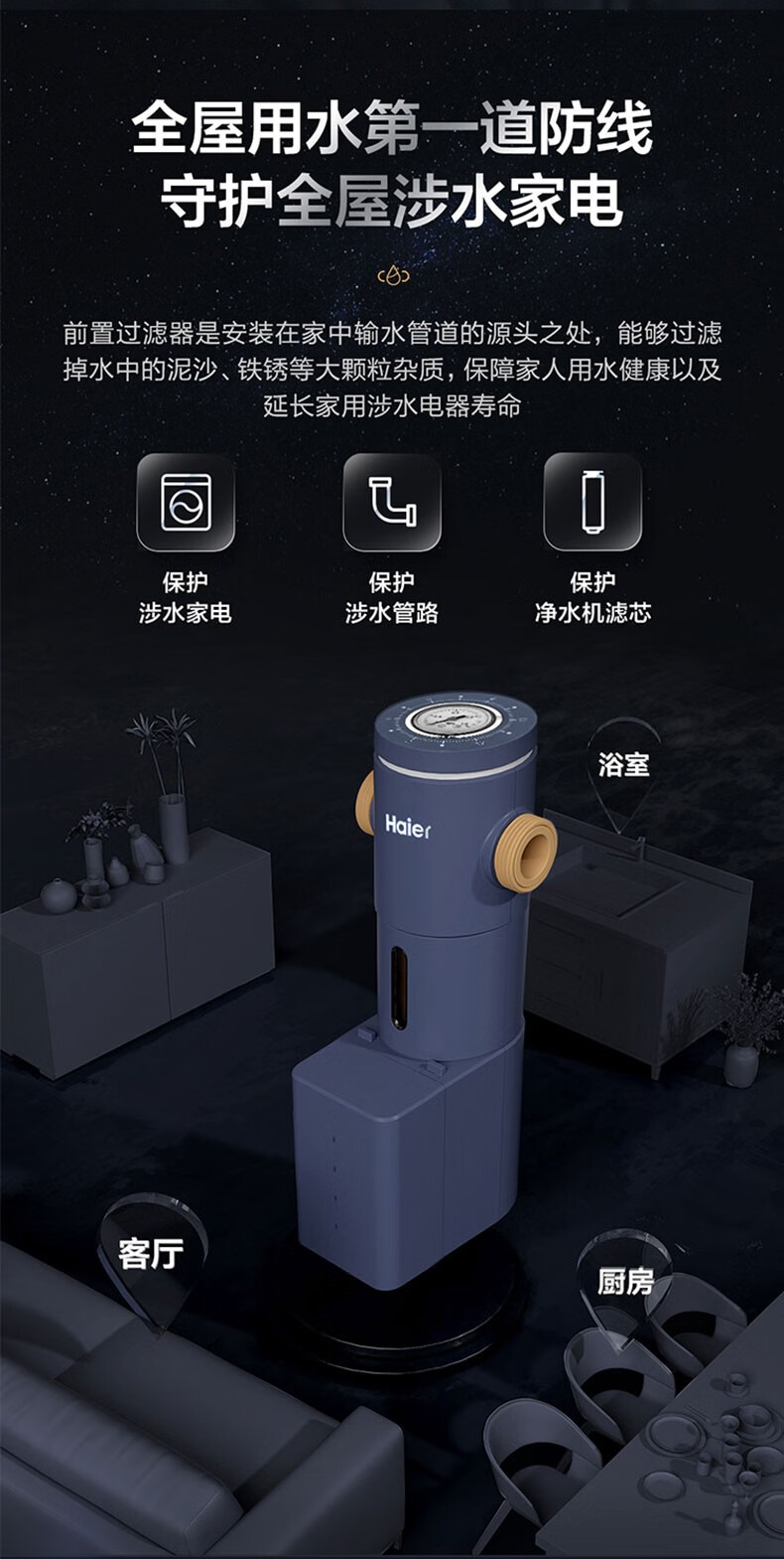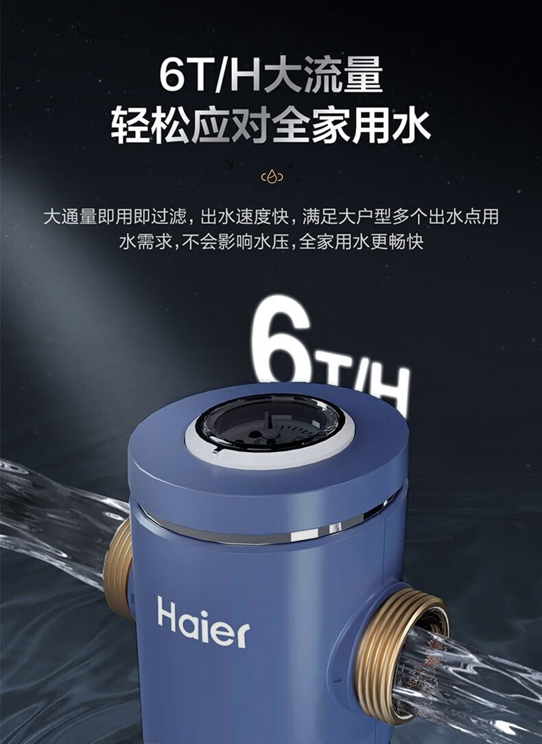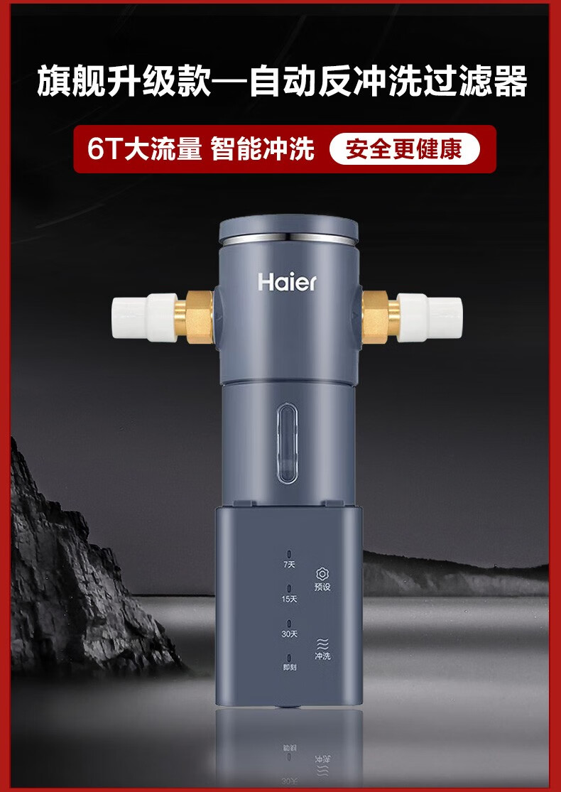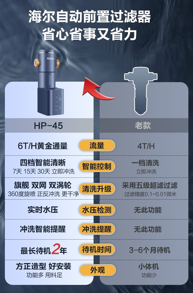 海尔(Haier)【自动反冲洗】前置过滤器升级6T大流量家用净水器智能全屋中央净化前置过滤器 HP45全自动冲洗前置过滤器