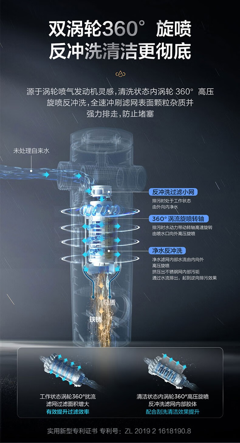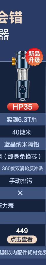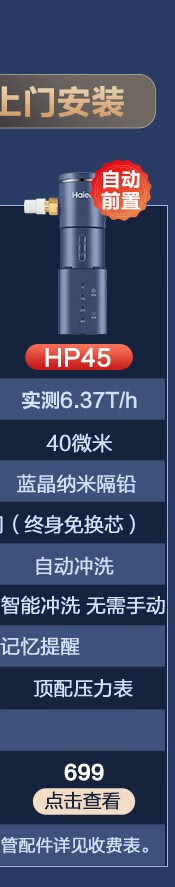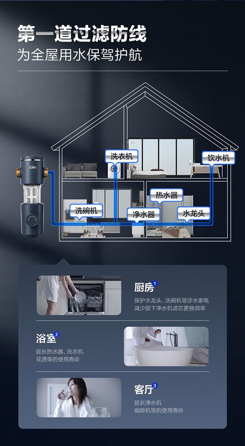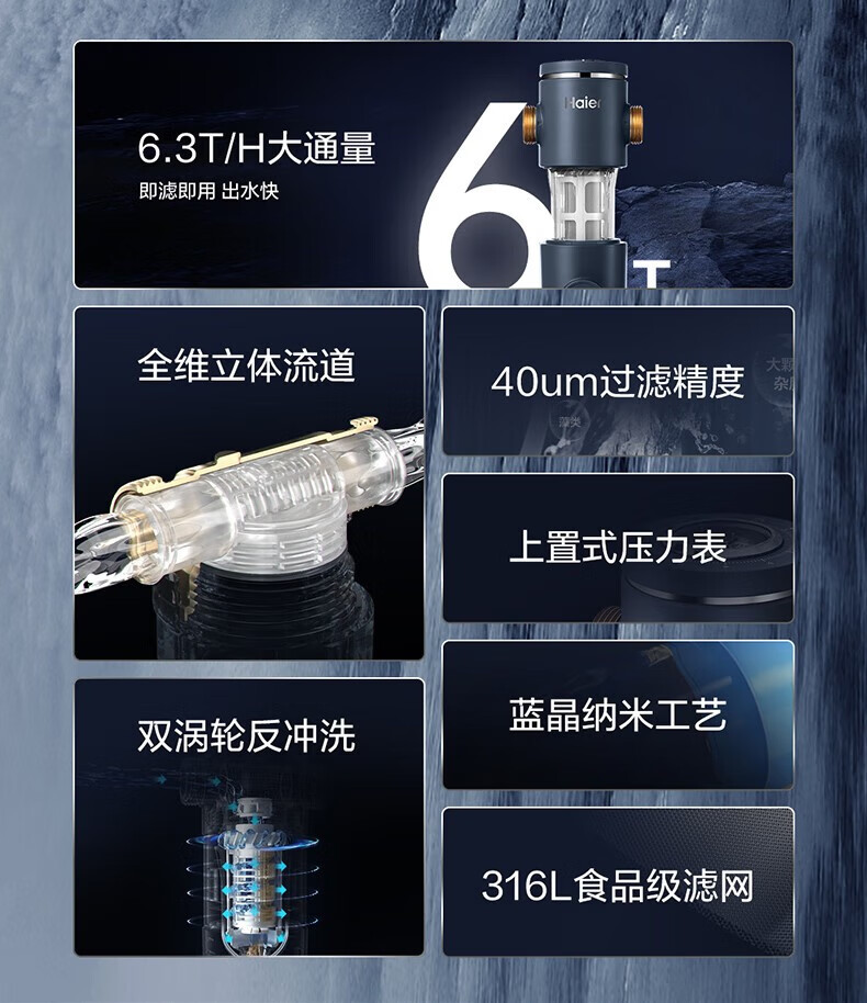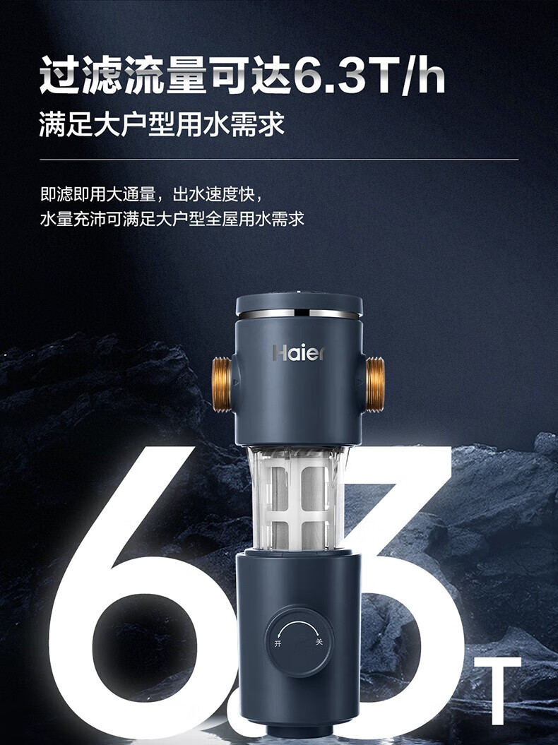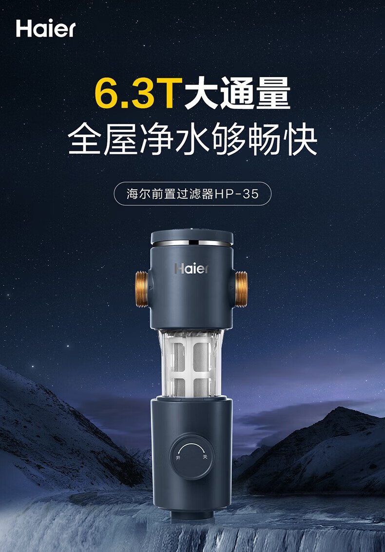 海尔(Haier)【自动反冲洗】前置过滤器升级6T大流量家用净水器智能全屋中央净化前置过滤器 HP45全自动冲洗前置过滤器