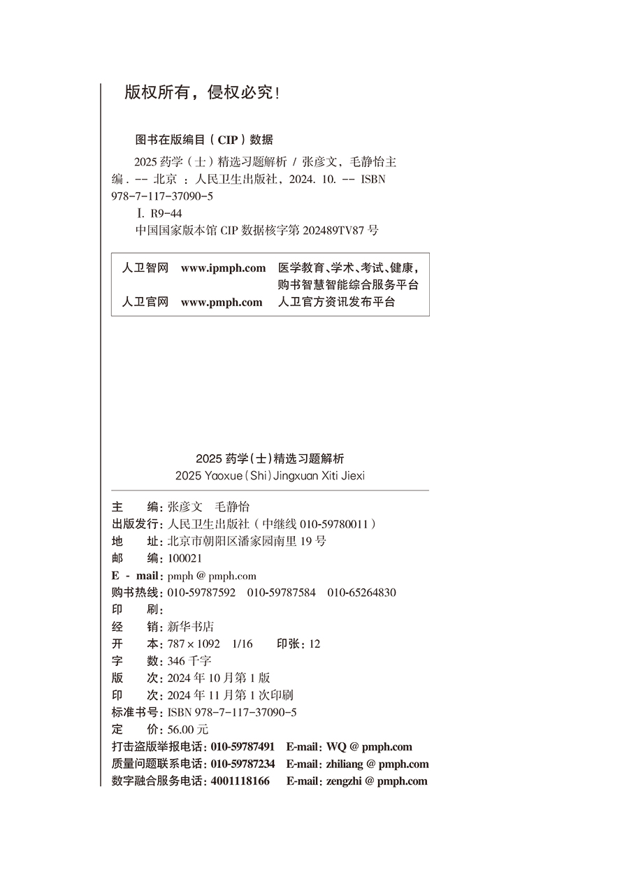 2025药学 士 精选习题解析 全国卫生专业技术资格考试习题集丛书 适用专业药学(士) 编张彦文 毛静怡9787117370905人民卫生出版社