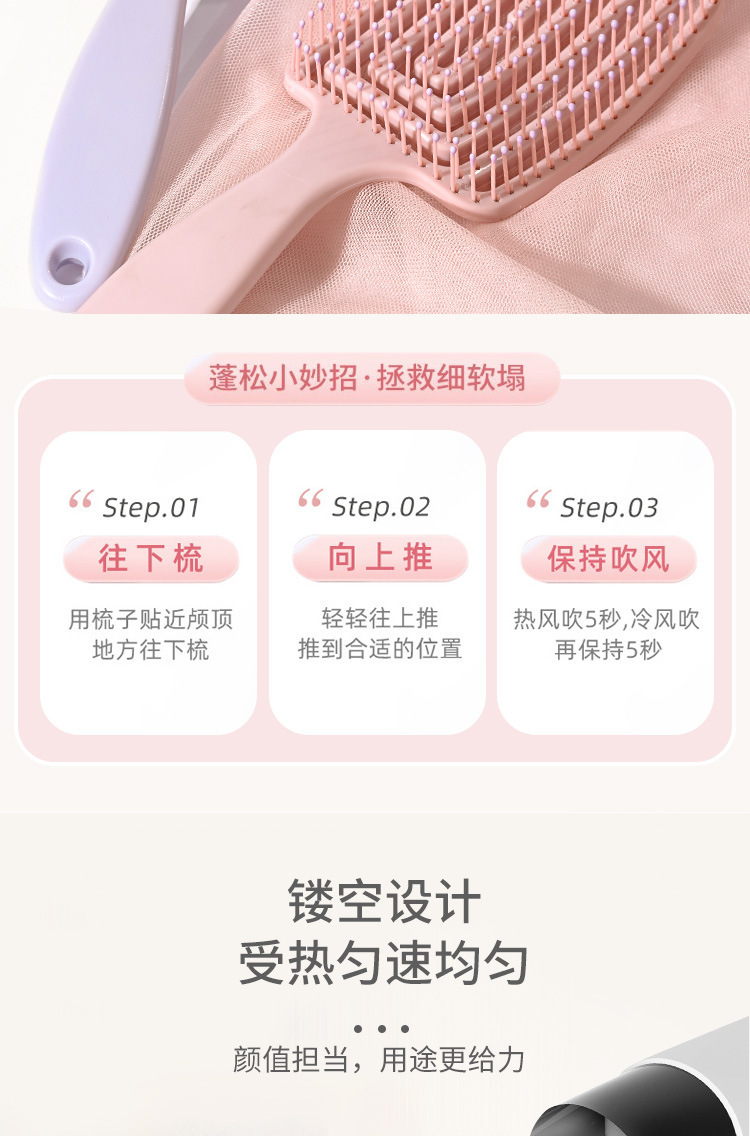 【舒缓头皮❗干湿两用】家用镂空蓬松头发梳子女士长发专用造型按摩经络气囊排骨气垫梳子