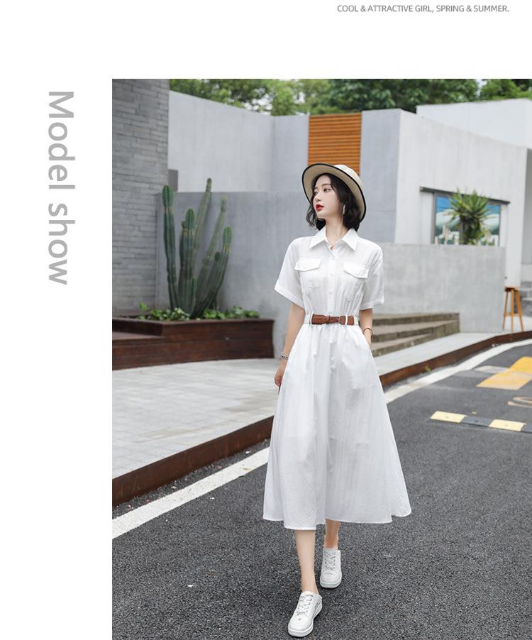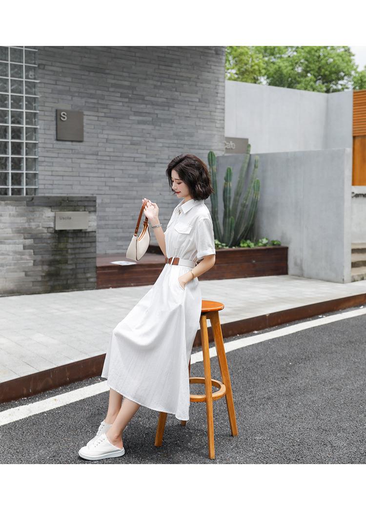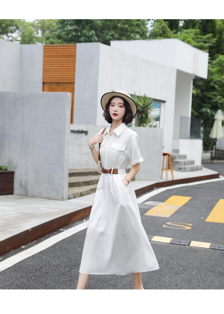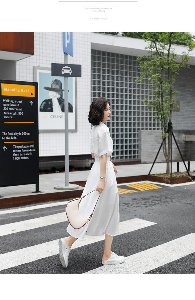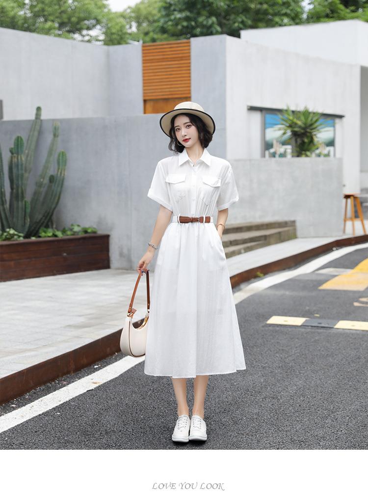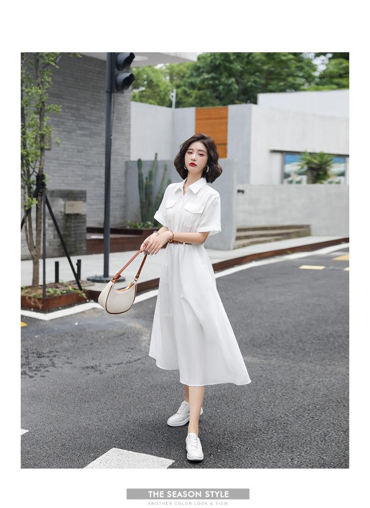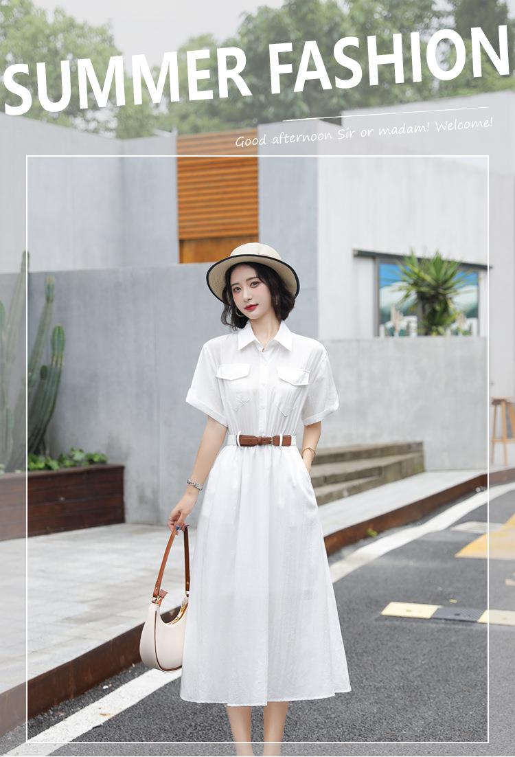 法式白色连衣裙夏季女2023女装新款短袖垂感显瘦衬衫裙子一件代发
