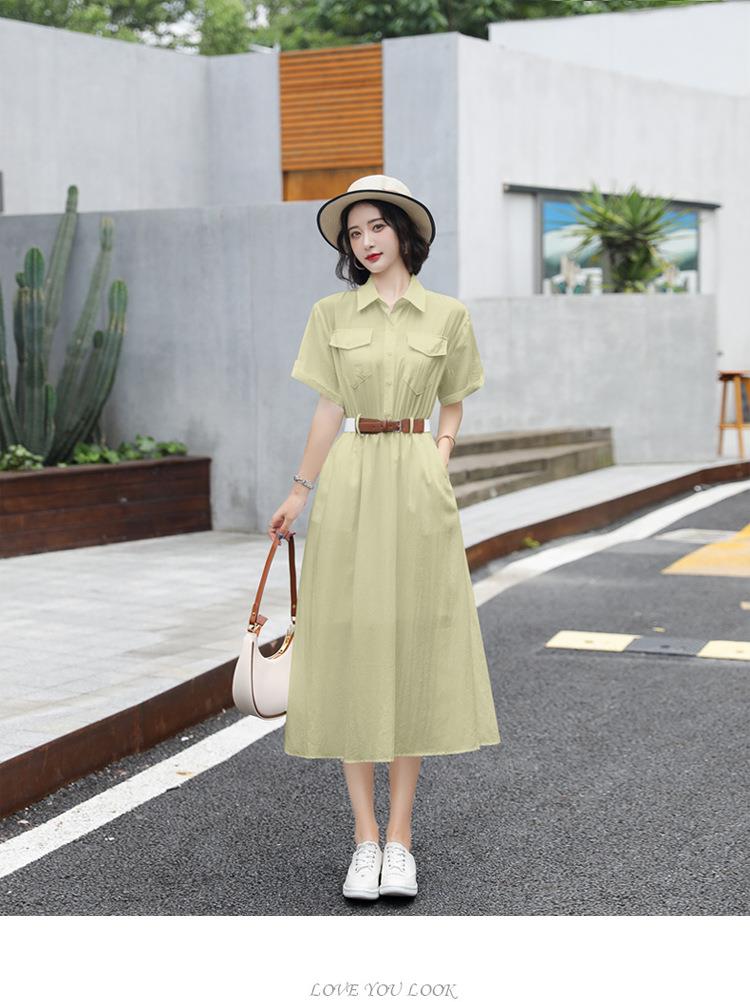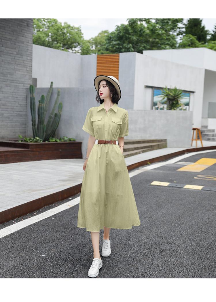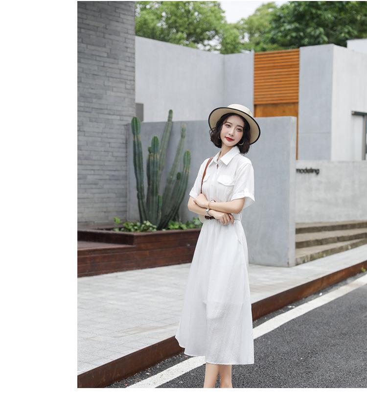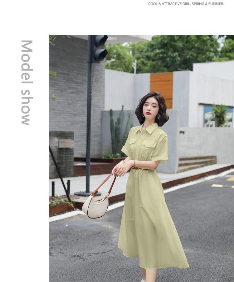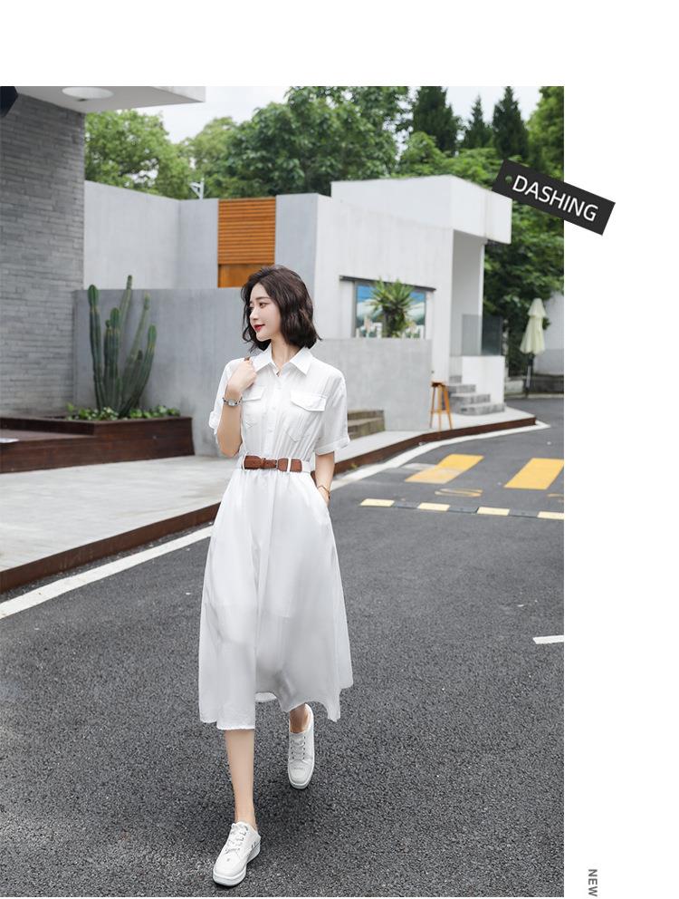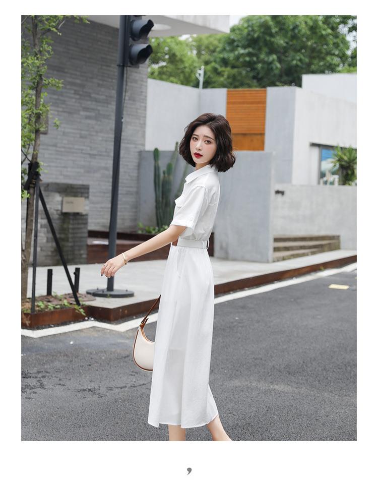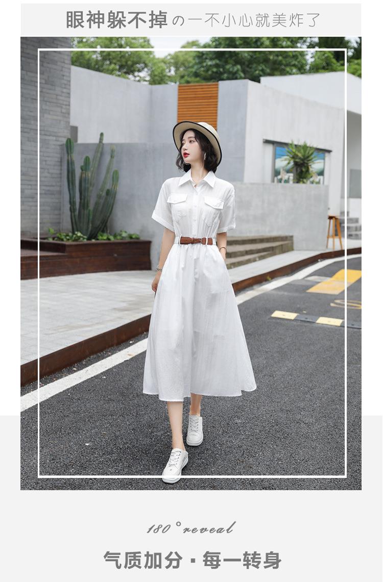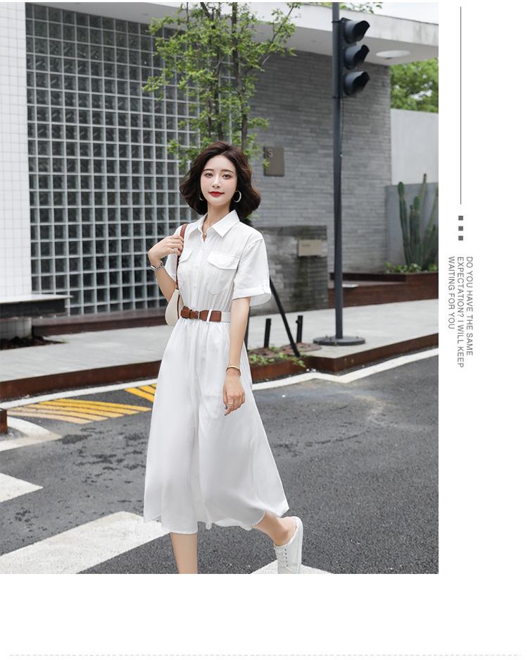法式白色连衣裙夏季女2023女装新款短袖垂感显瘦衬衫裙子一件代发