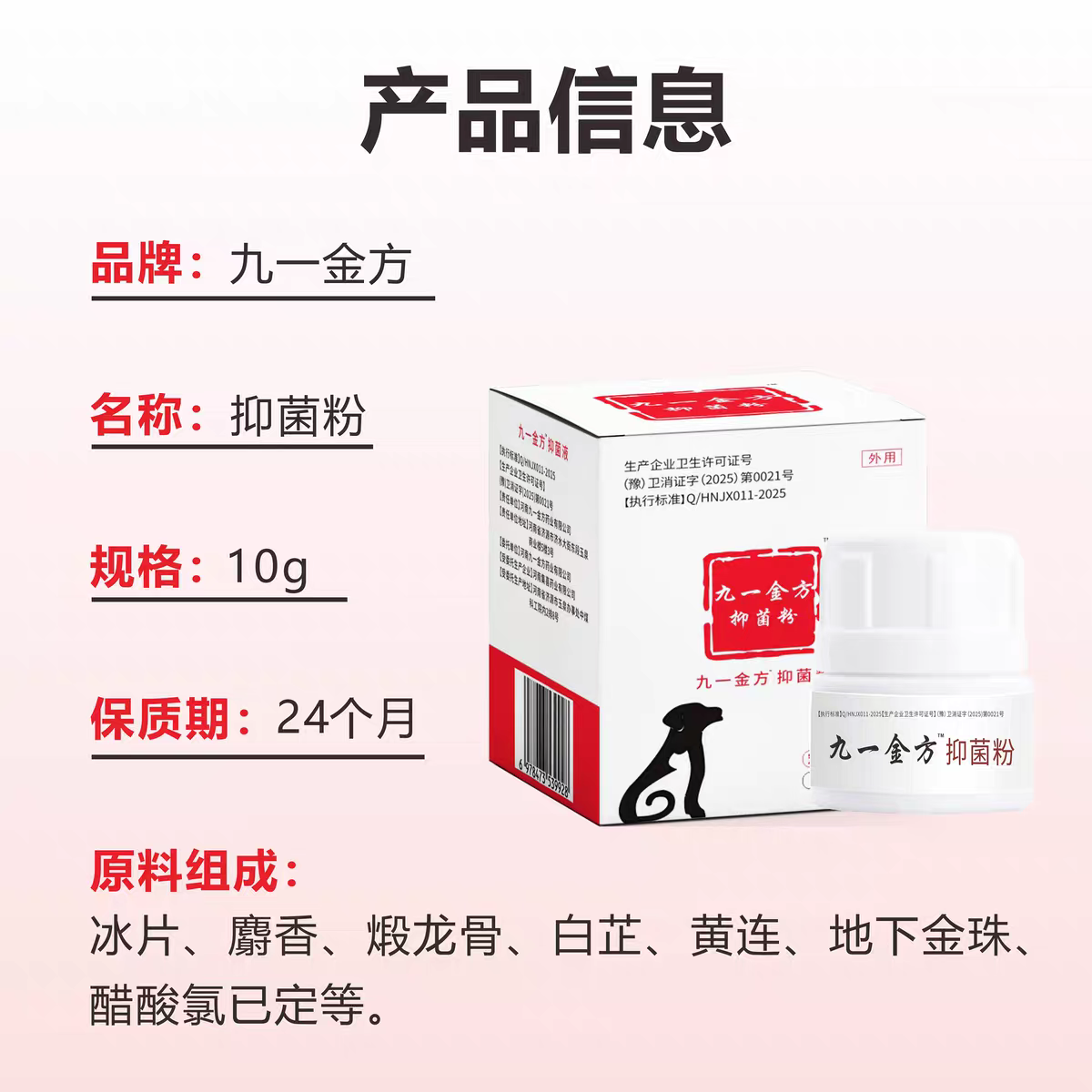 九一金方 抑菌粉 犬猫通用 烧伤烫伤外伤手术趾间炎 促进皮肤愈合 温和不刺激 10g/盒