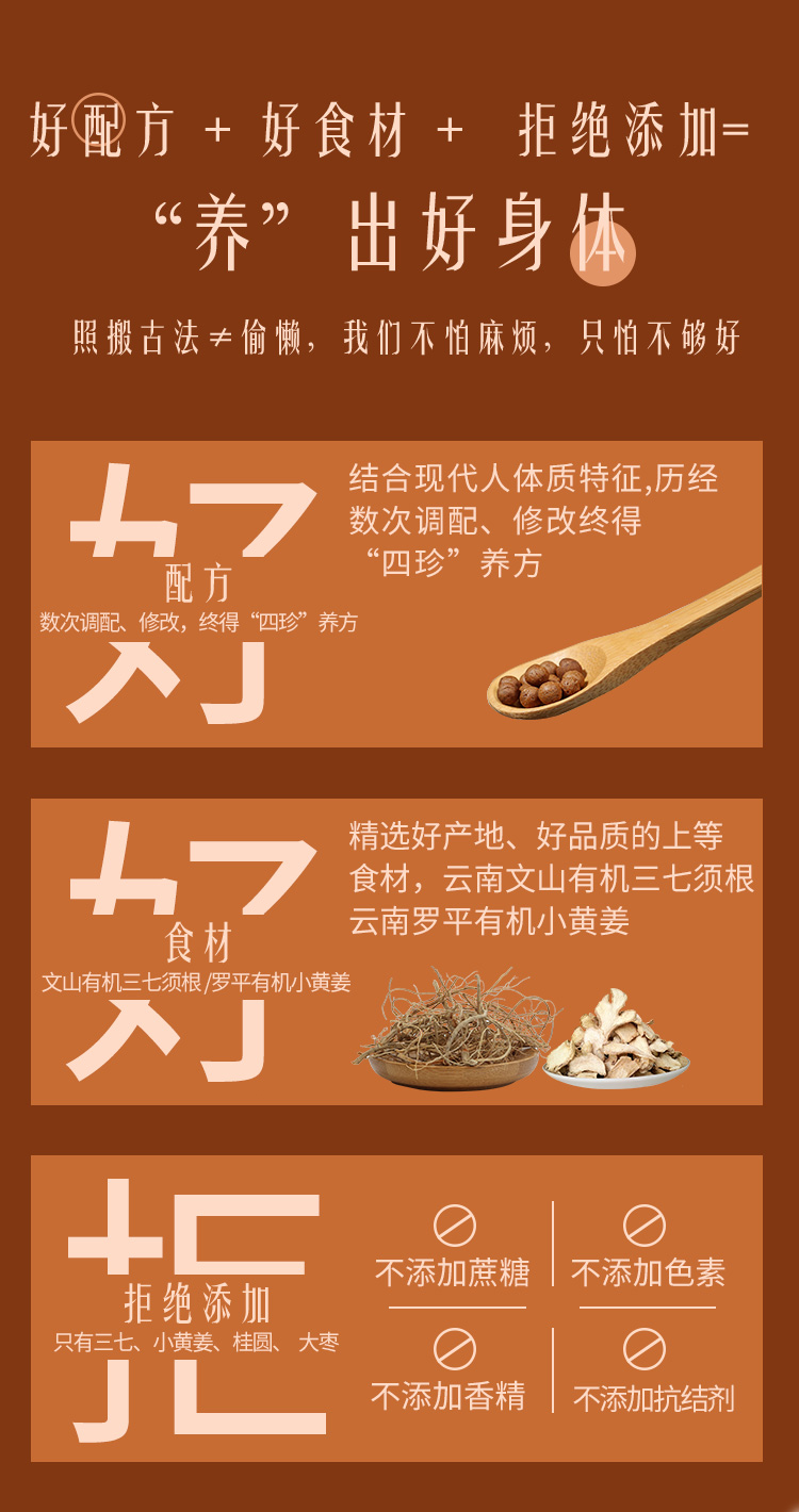 苗乡四珍丸360克/瓶 精选三七须根(有机)、小黄姜(有机)、红枣、桂圆四种食材