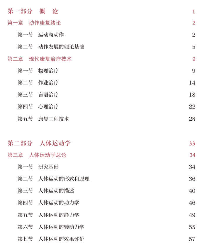 第二部分 人体运动学:人体运动学部分详细探讨了骨骼、关节和肌肉的工作原理,以及人体正常的运动模式。这部分内容不仅帮助学生们理解人体运动的机械原理,还为后续的康复训练设计提供了重要的理论基础。