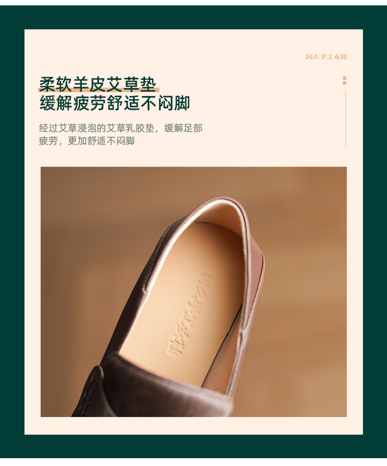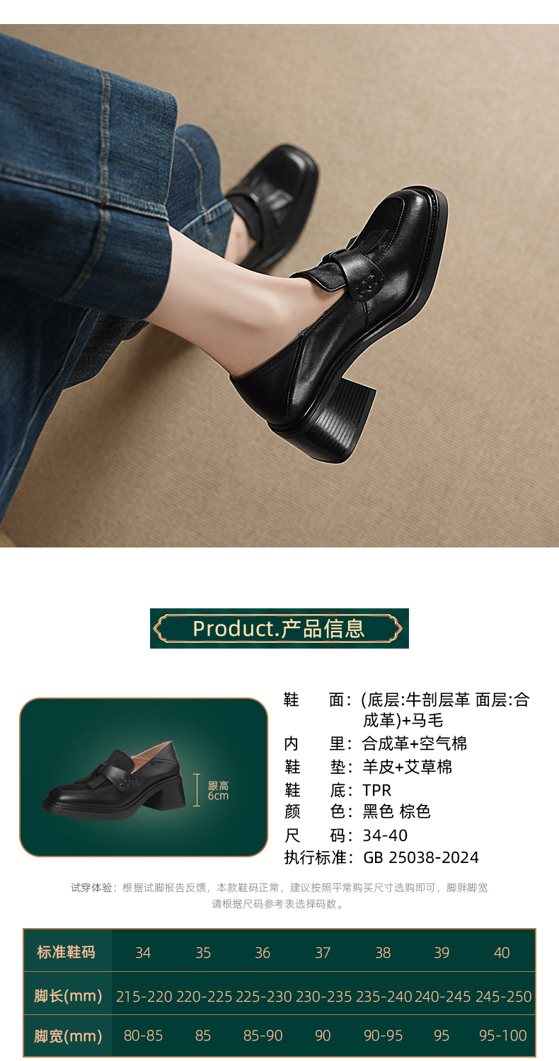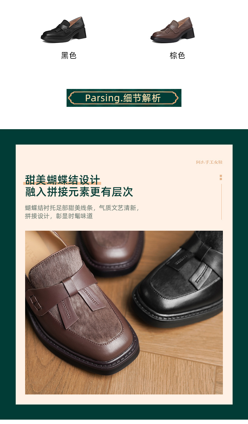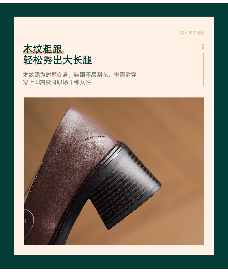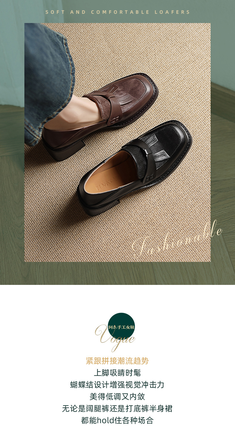 阿么手工女鞋2026新款高跟乐福鞋女款通勤软底复古百搭小皮鞋6CM