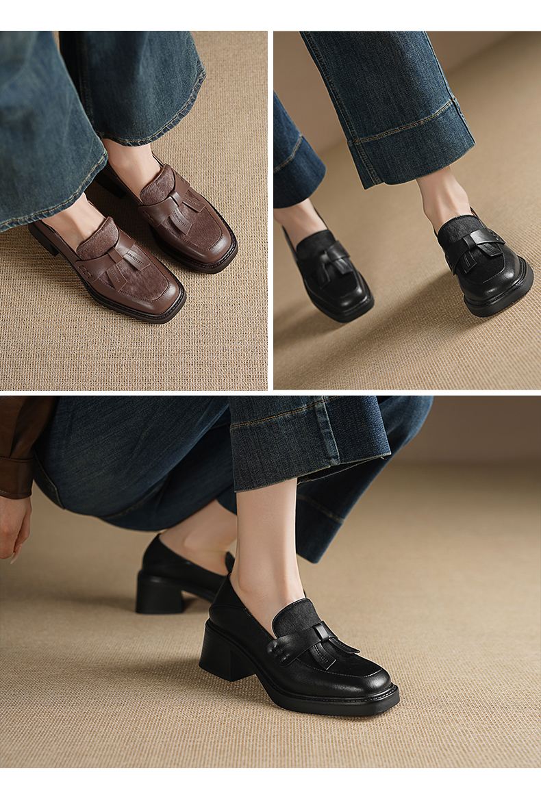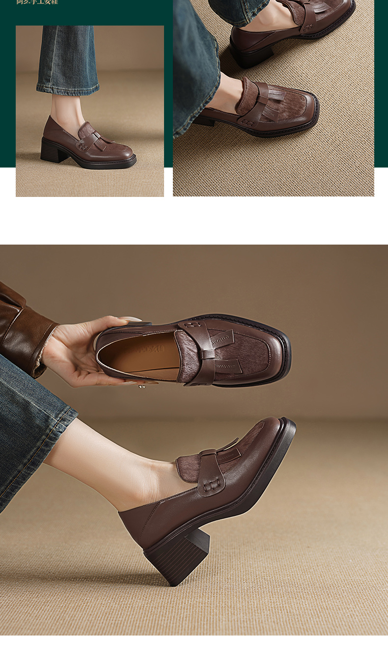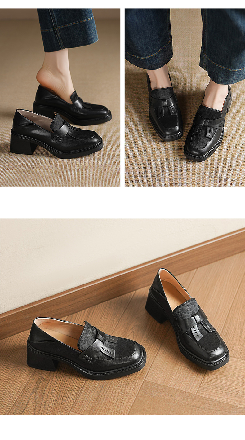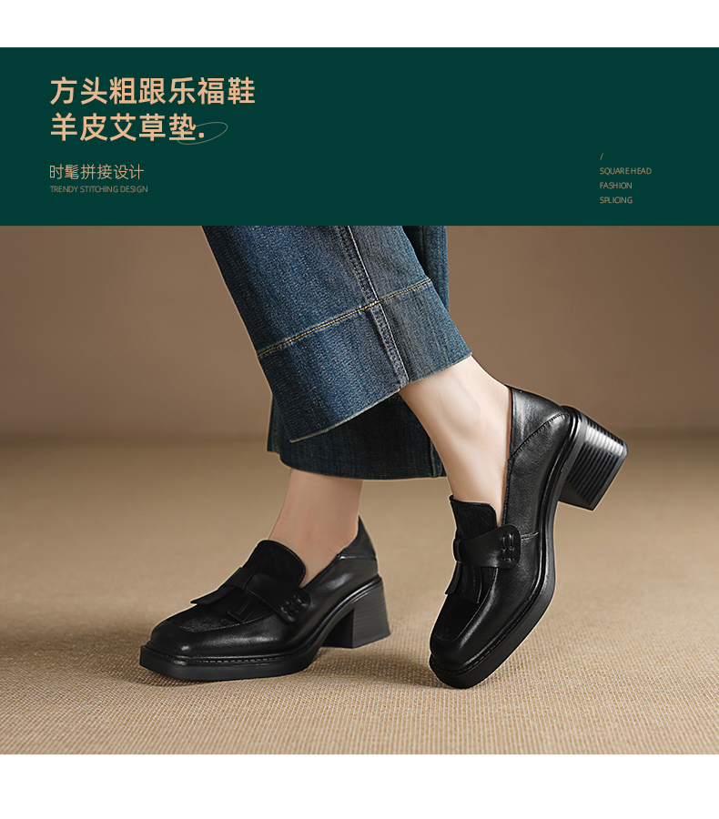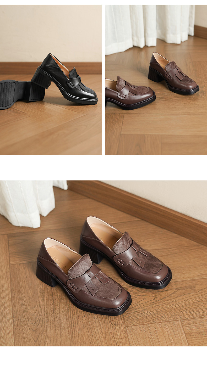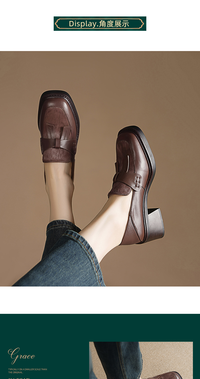 阿么手工女鞋2026新款高跟乐福鞋女款通勤软底复古百搭小皮鞋6CM