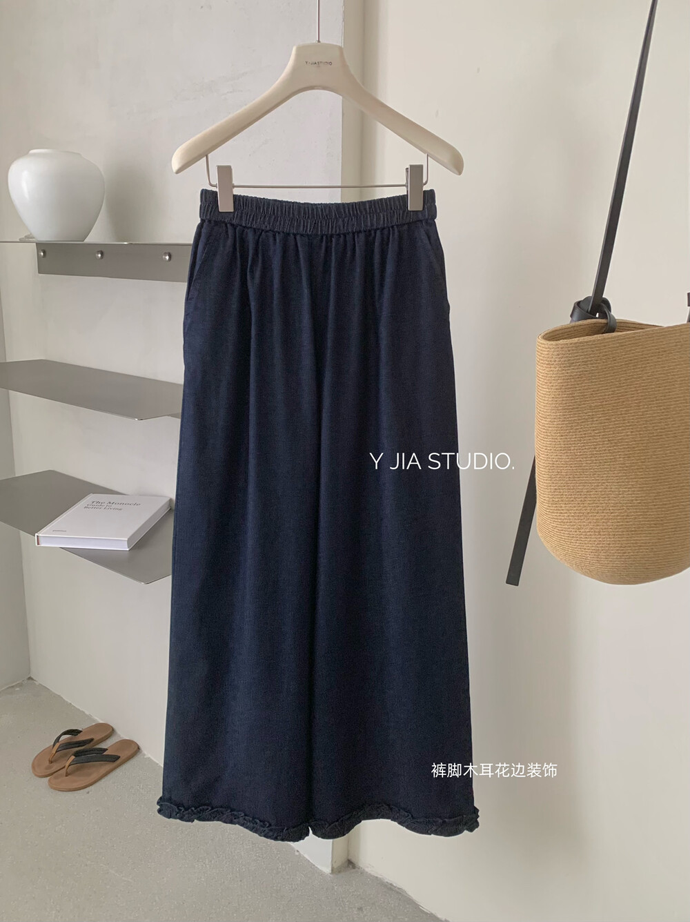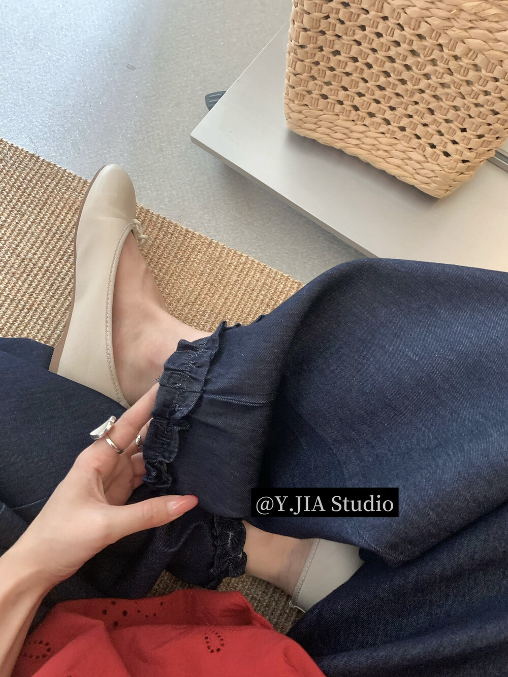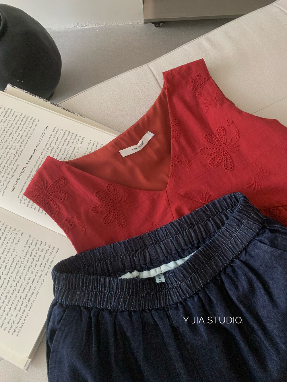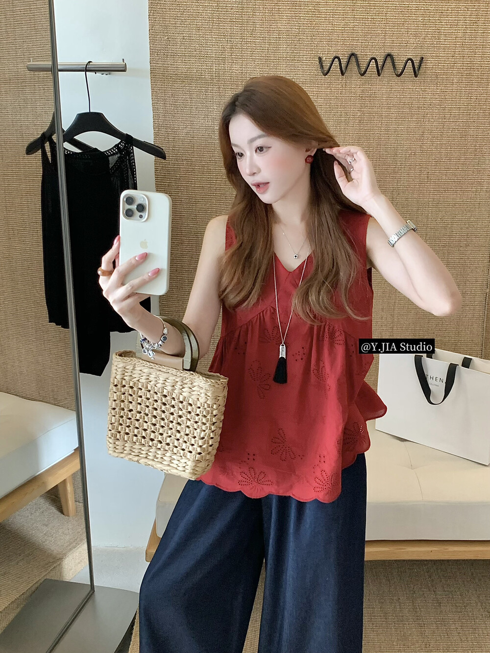 【GZ】无忧购【莉莉安】v领宽松简约显白无袖背心+休闲直筒木耳边牛仔裤套装6021(截单后7天发货)