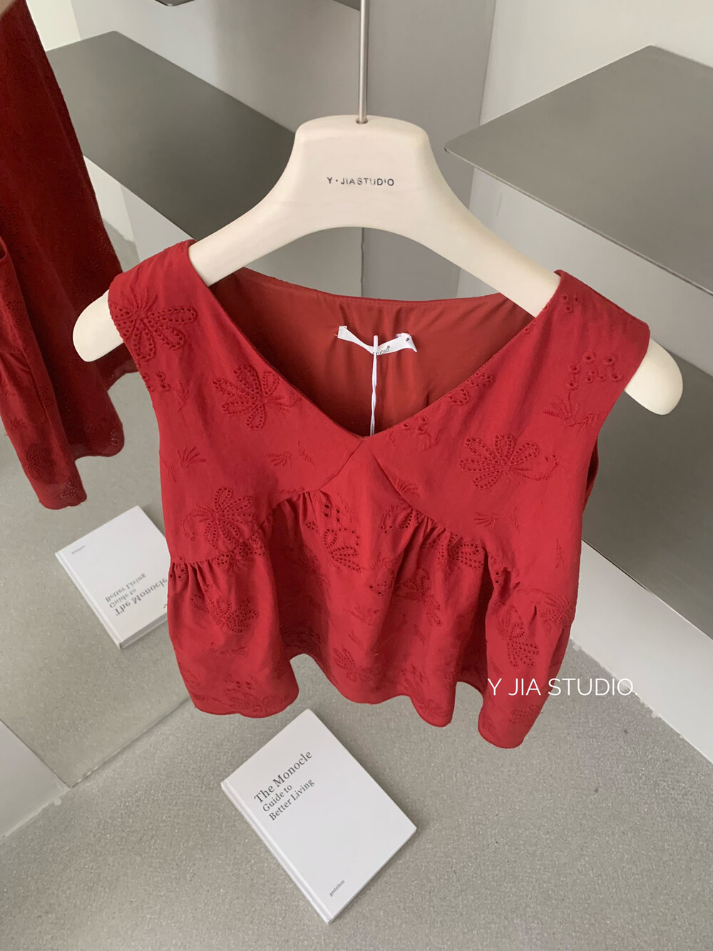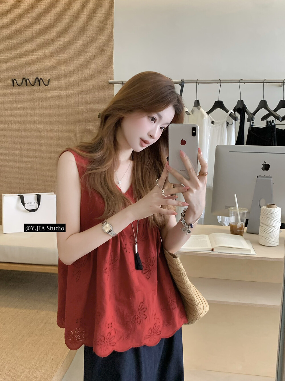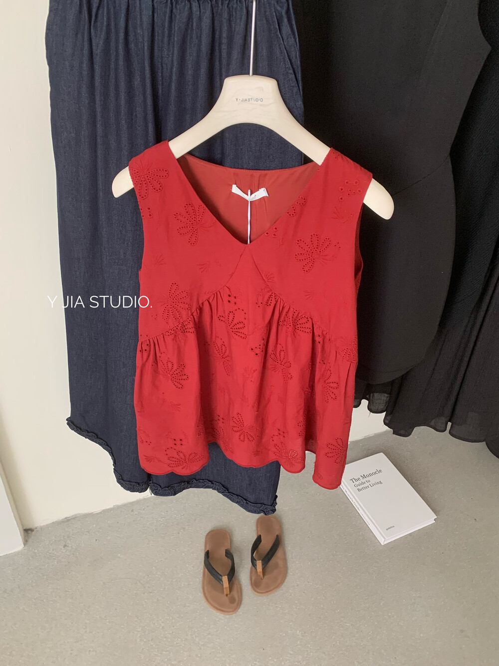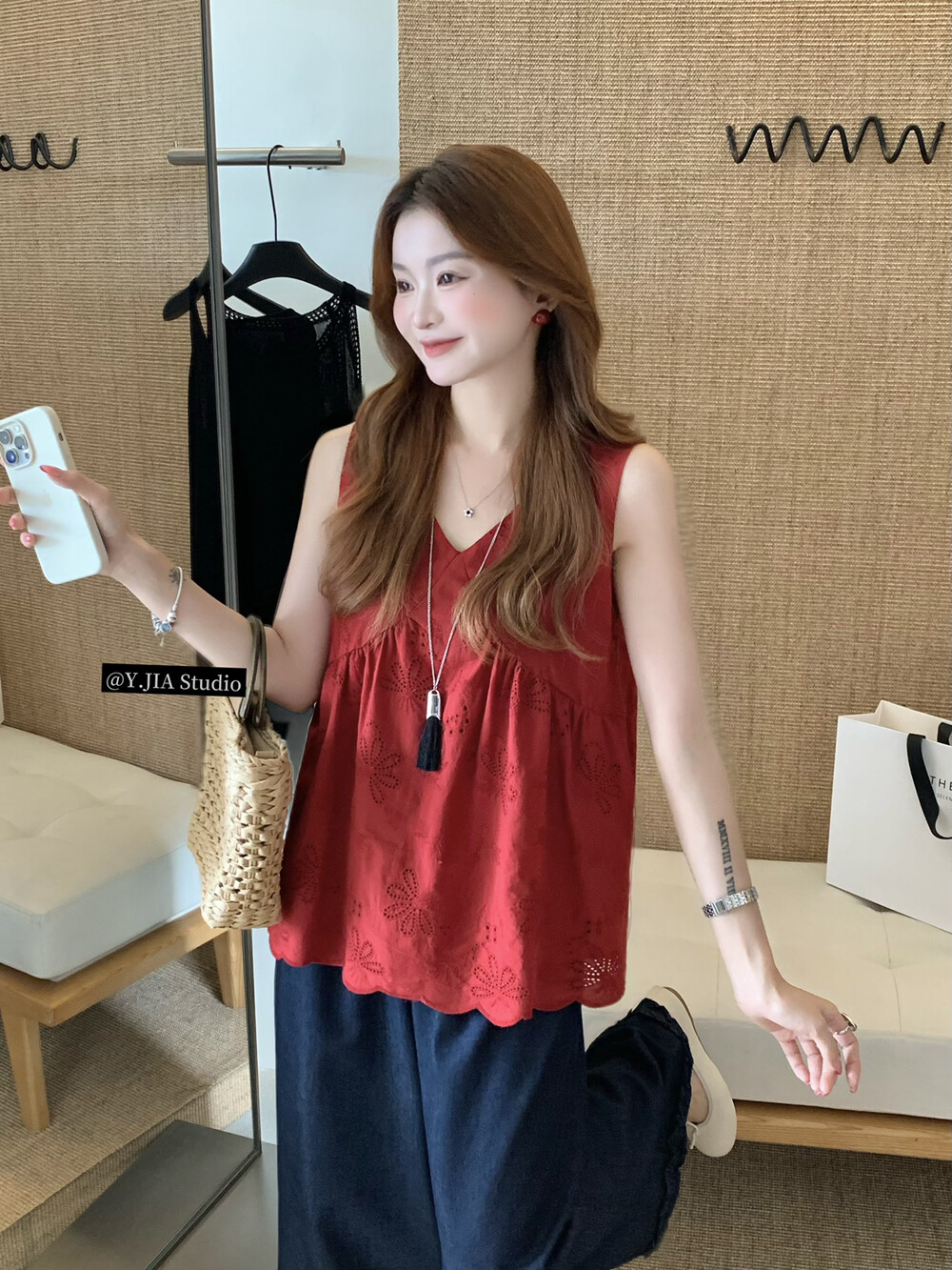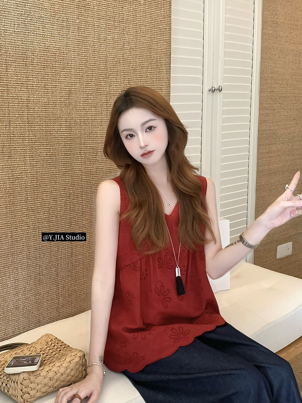 【GZ】无忧购【莉莉安】v领宽松简约显白无袖背心+休闲直筒木耳边牛仔裤套装6021(截单后7天发货)