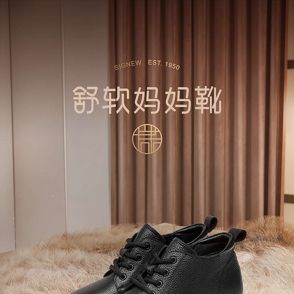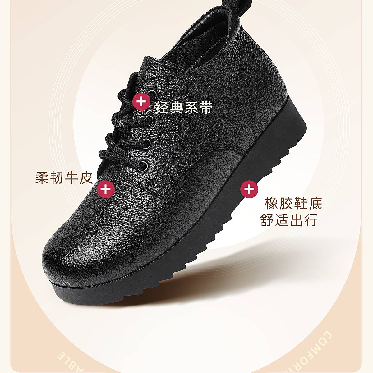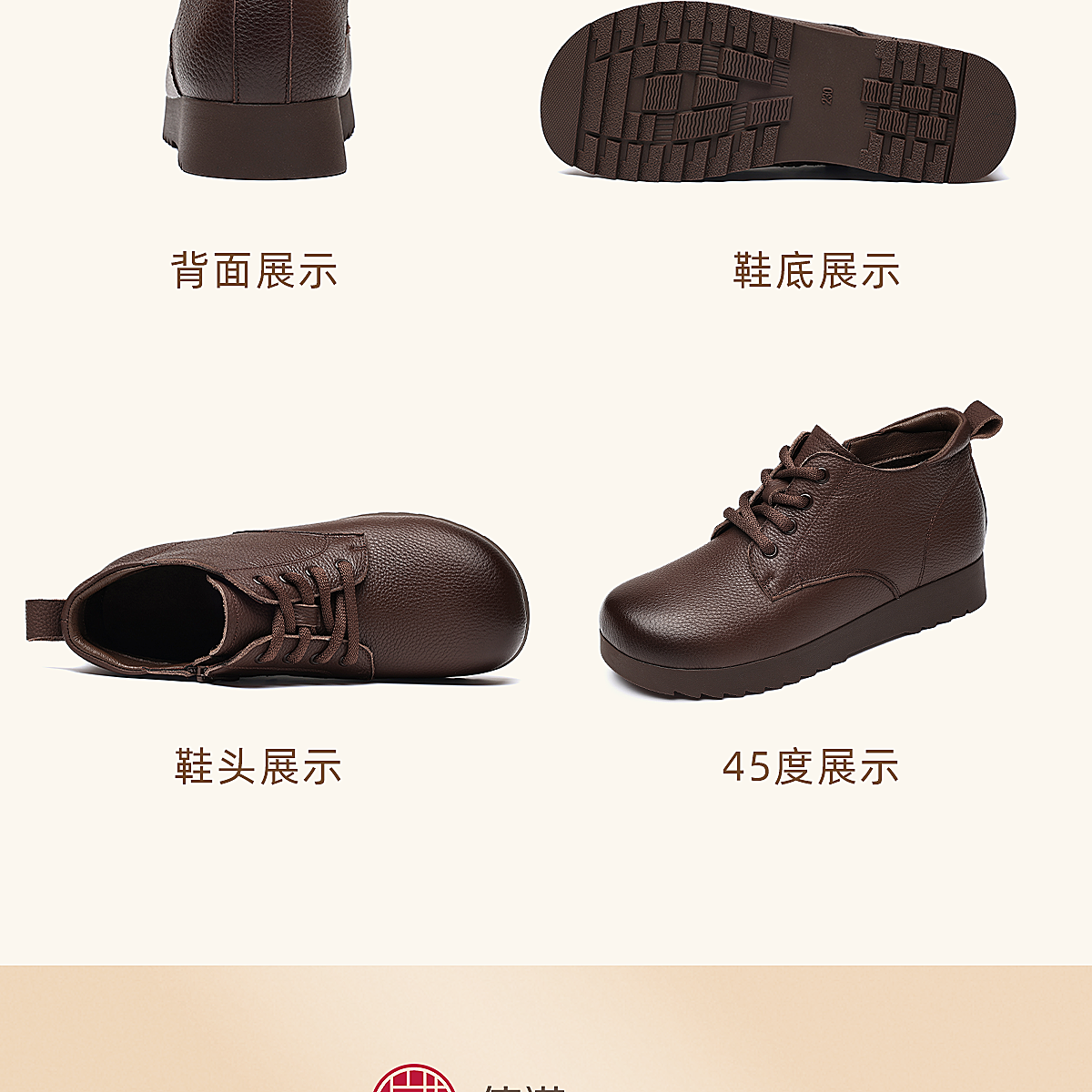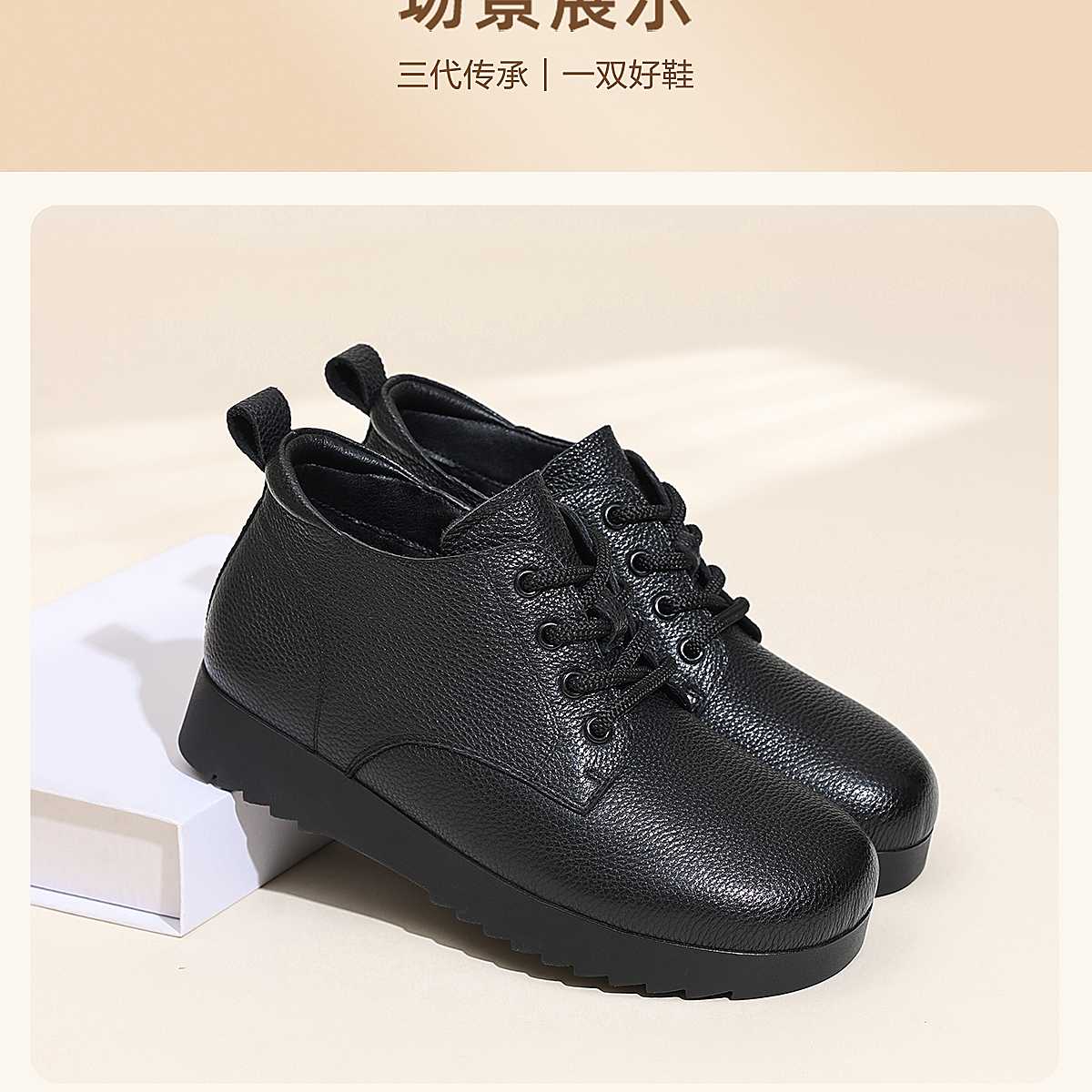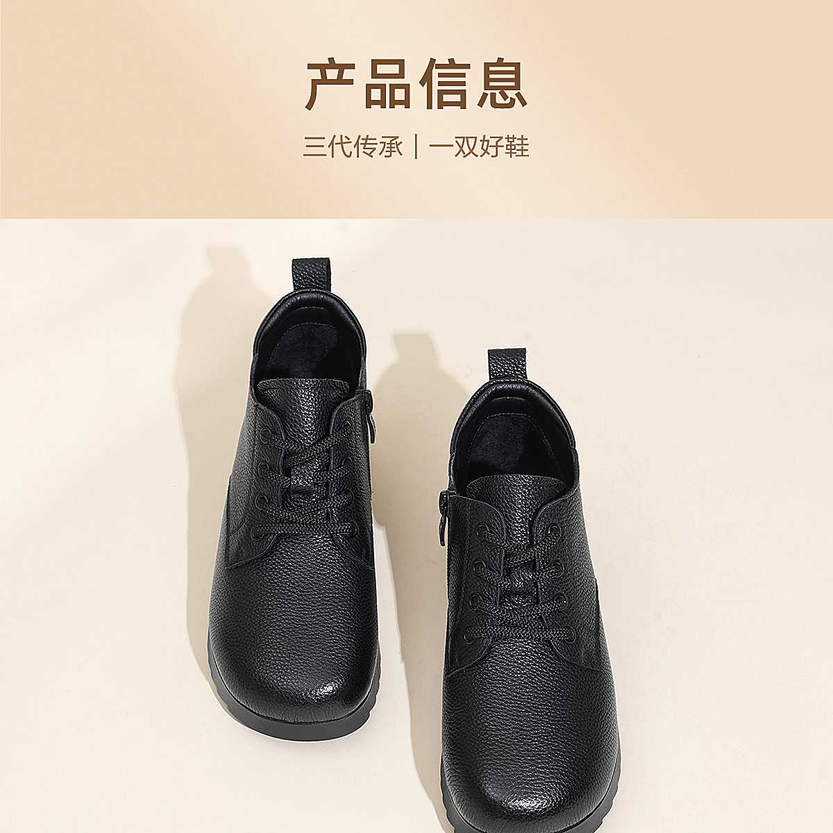 信诺妈妈棉鞋真皮加绒保暖短靴中老年软底舒适皮鞋女2025冬季新款5M103-2D