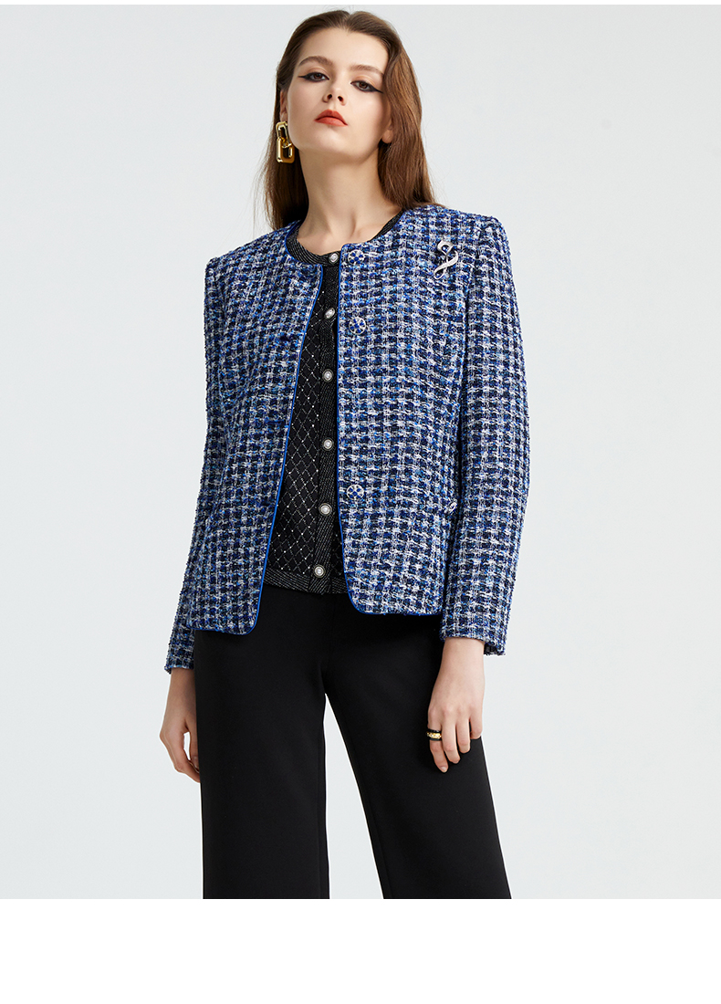 [皮尔卡丹女装]蓝花小香风上衣外套P4347U4990N3