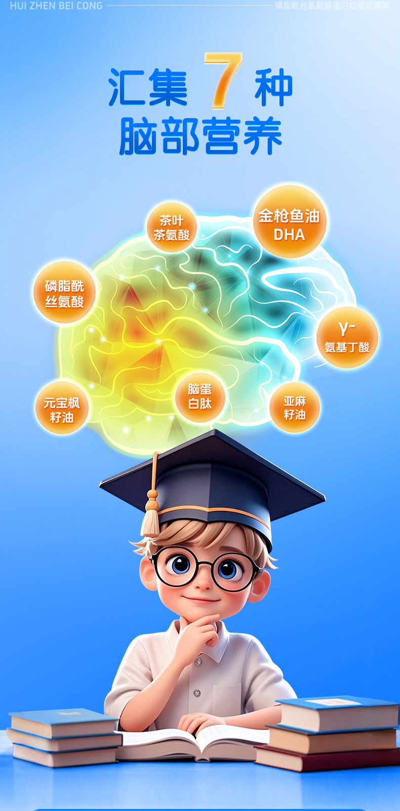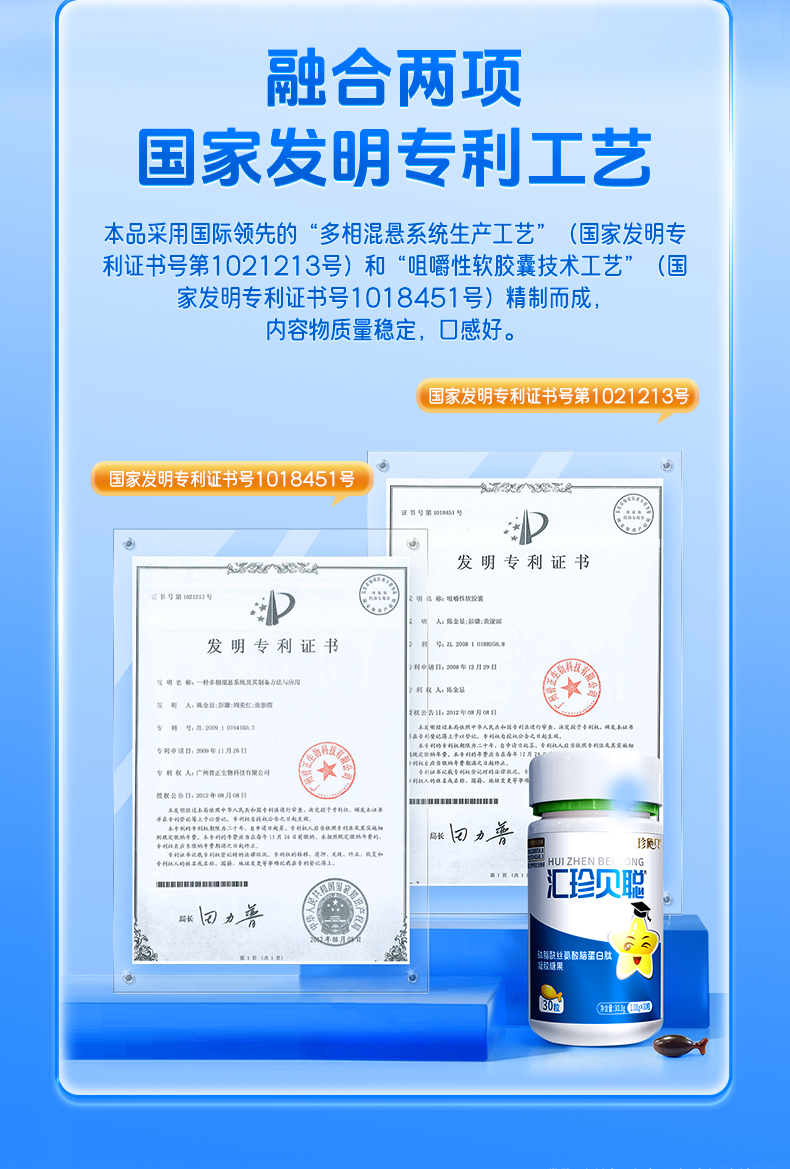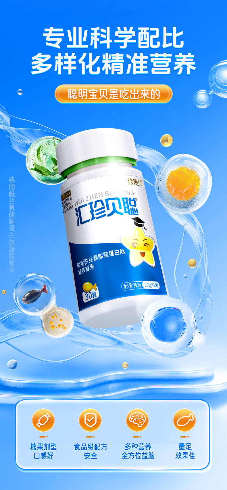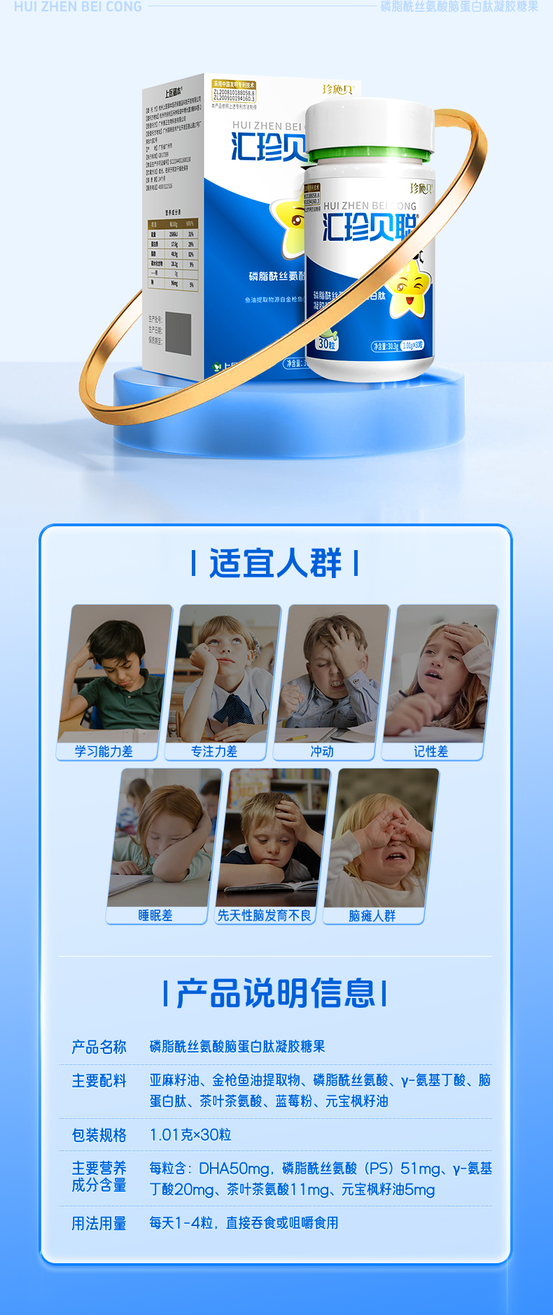 汇珍贝聪 磷脂酰丝氨酸脑蛋白肽凝胶糖果脑眼神经发育注意缺陷