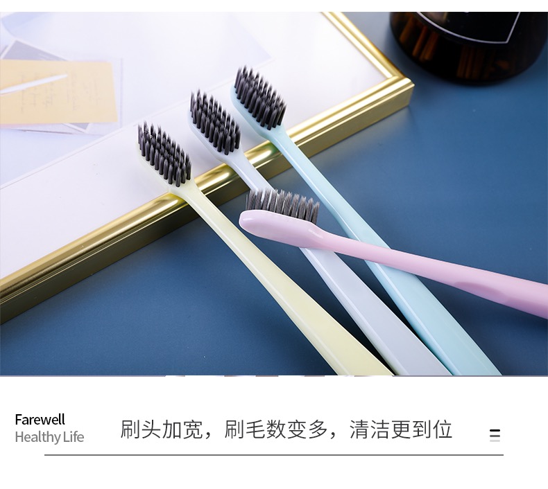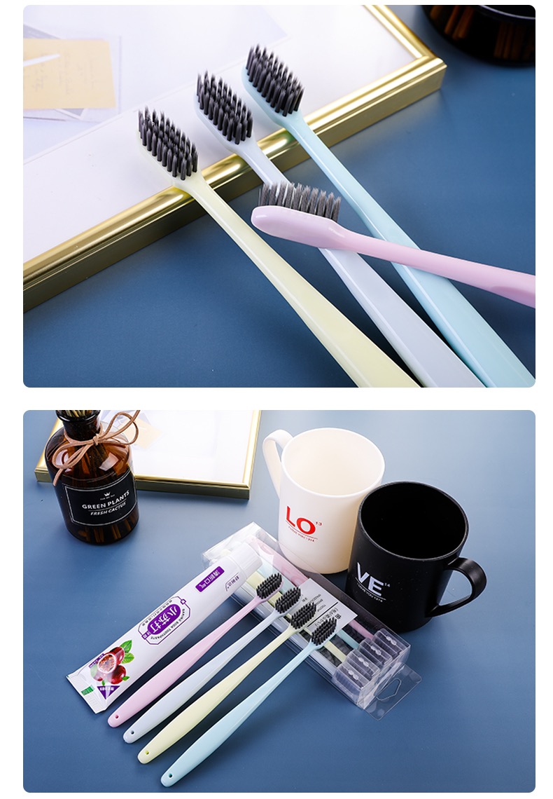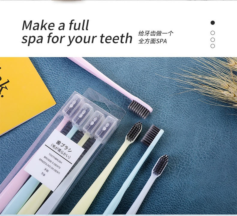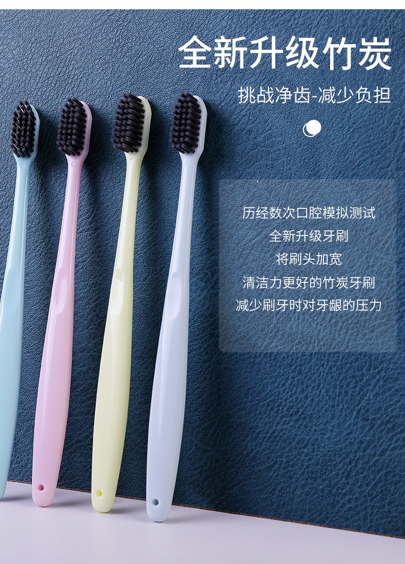 【超值!竹炭牙刷】网红同款 无印同款 日式良品竹炭牙刷素色小头细软毛牙刷家庭 情侣旅行牙刷1盒/4支