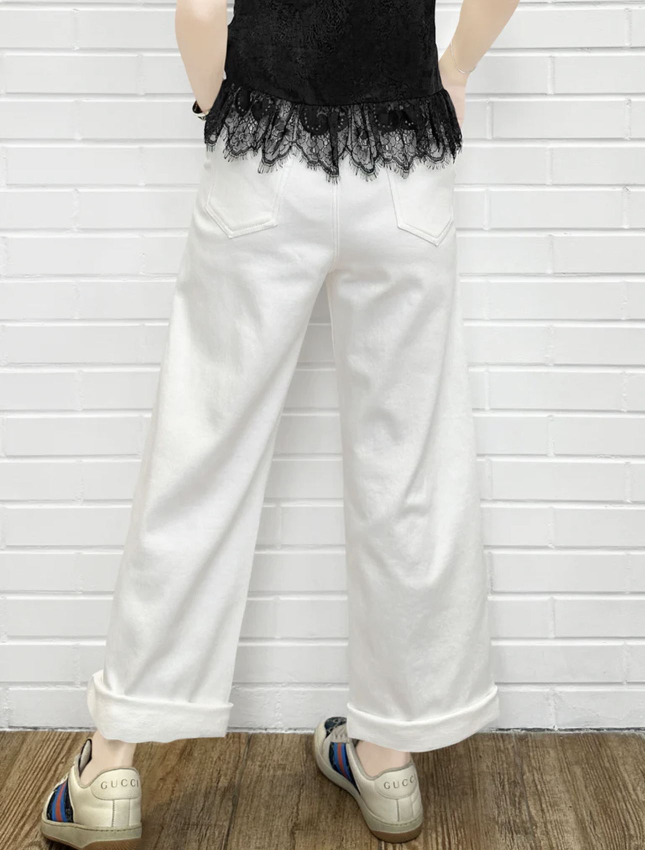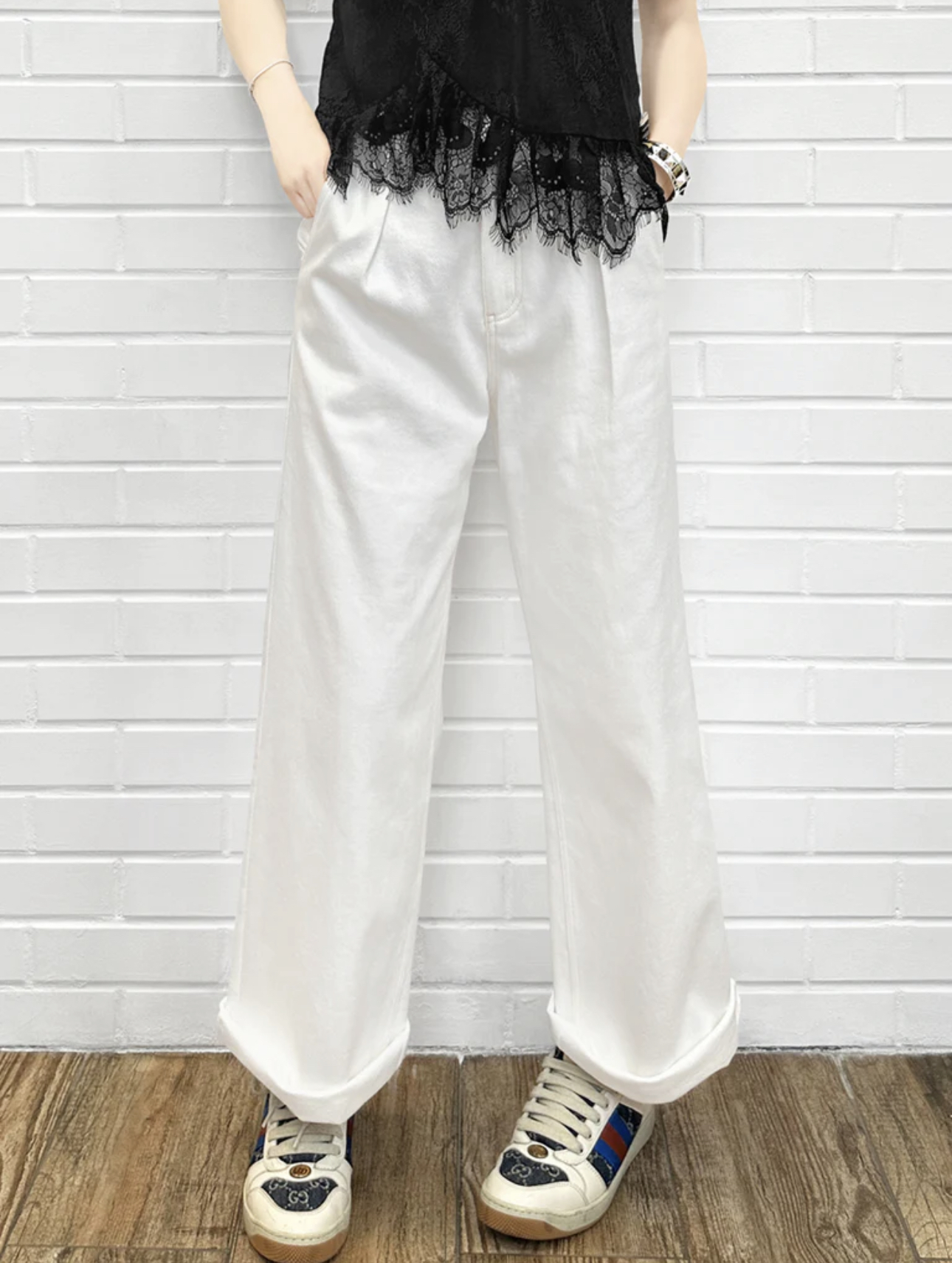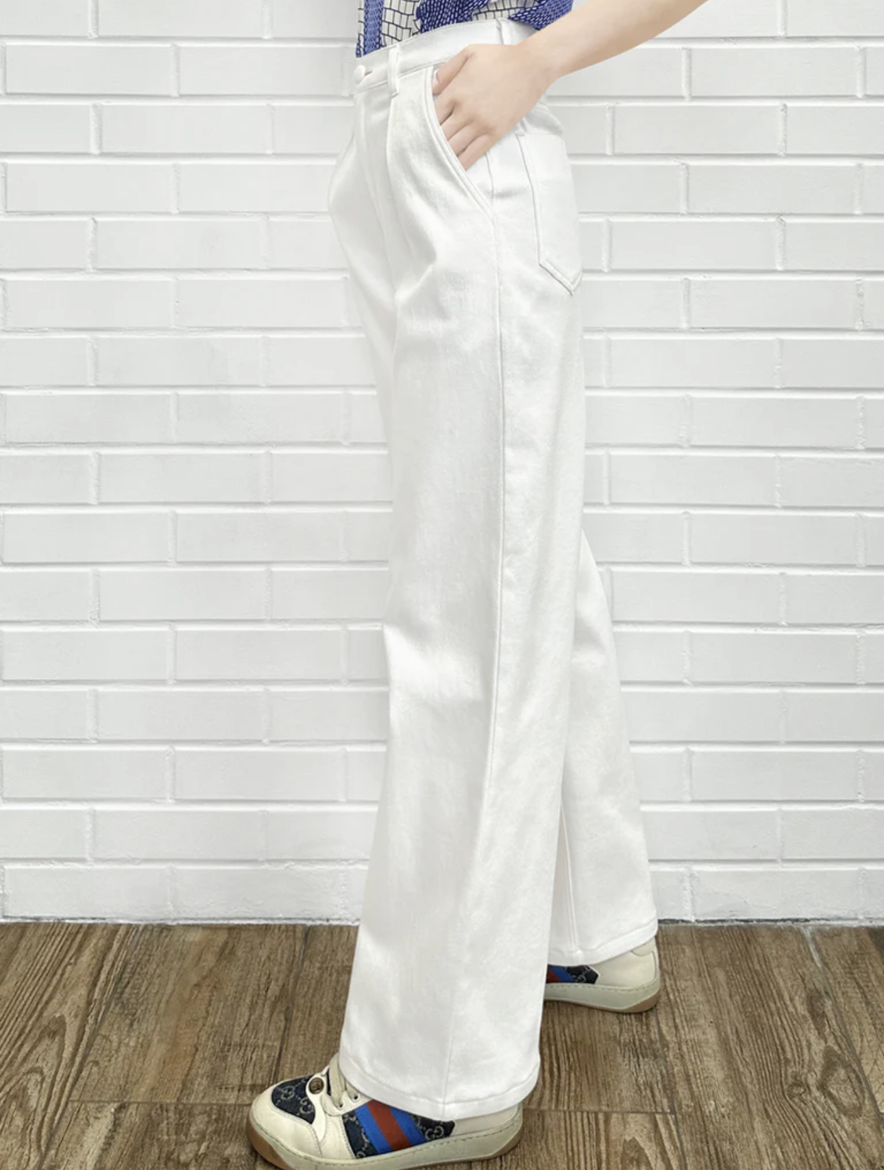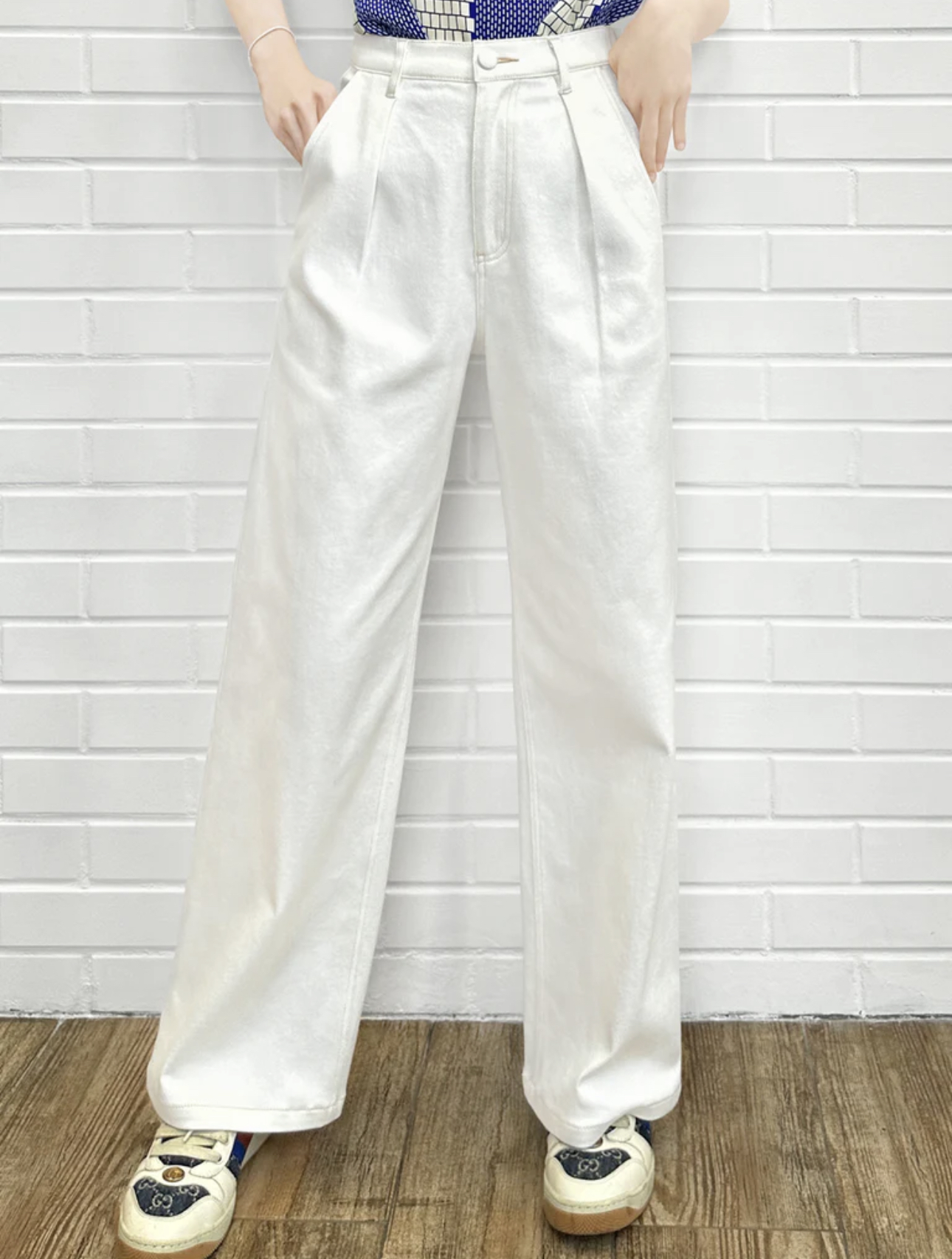 TYNVIE 插袋直筒阔腿裤-白色