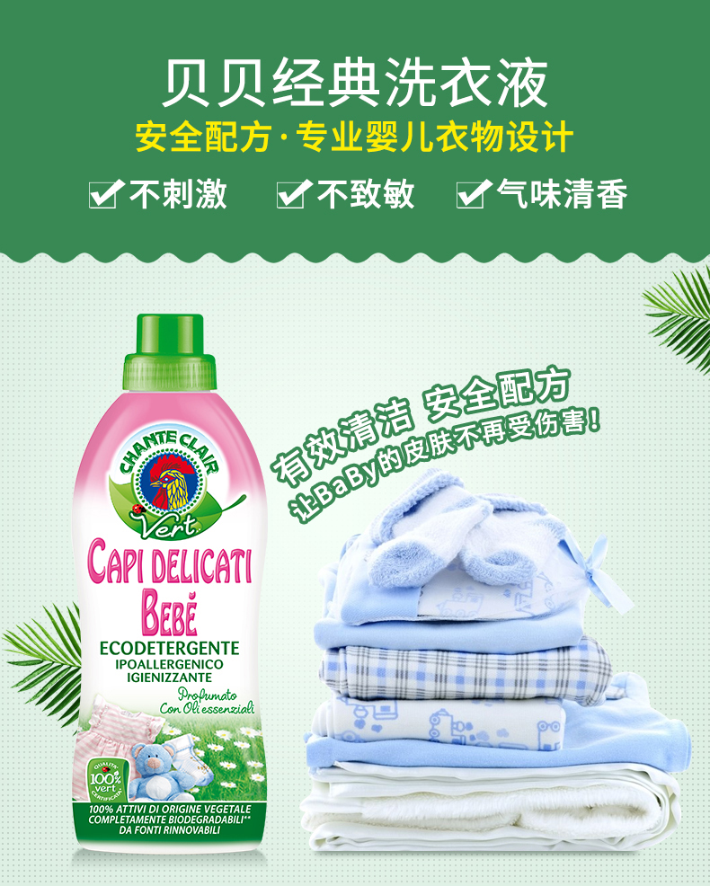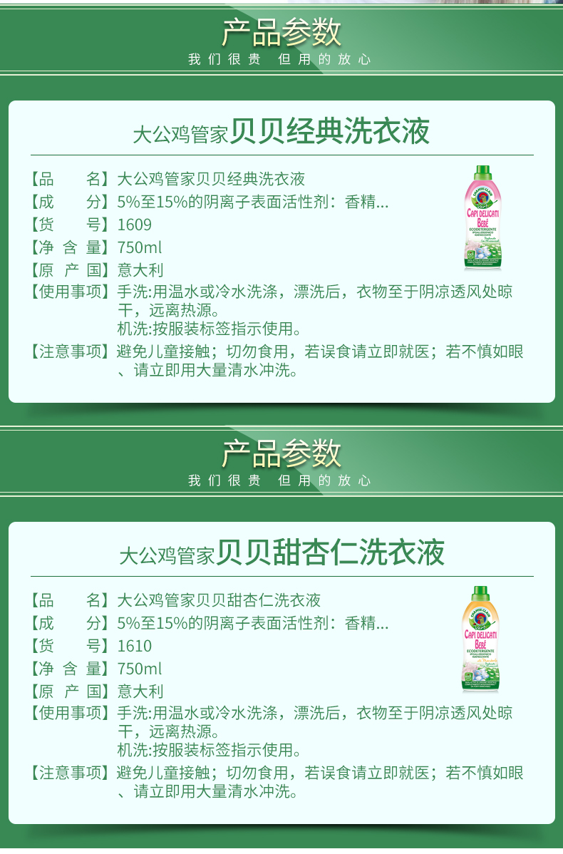 【中欧班列精选2瓶】意大利儿童洗衣液 大公鸡管家儿童经典\甜杏仁洗衣液 750ml/瓶