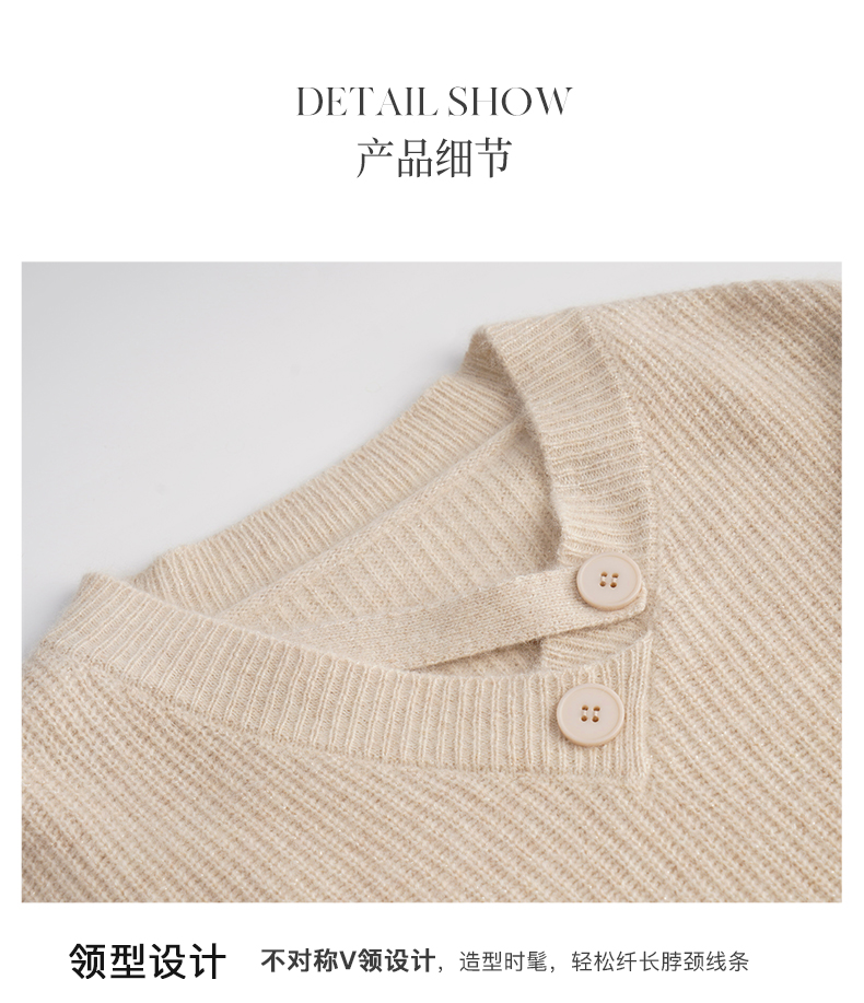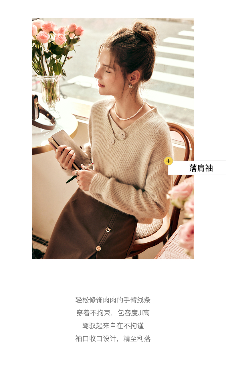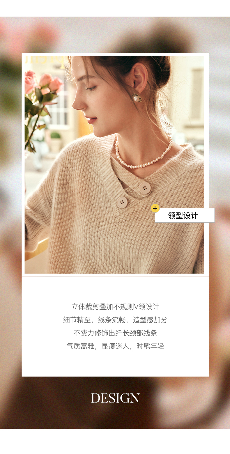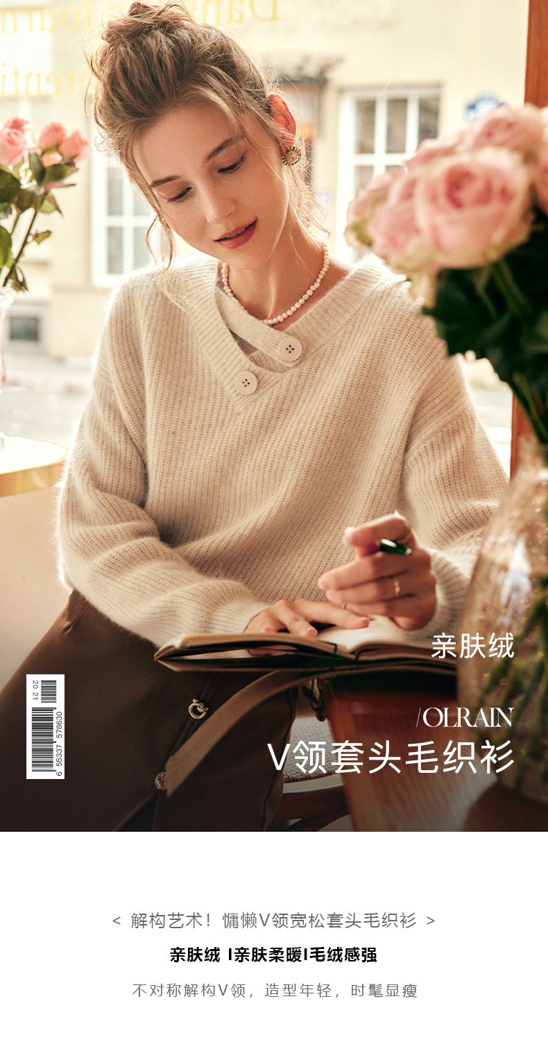 OLrain欧芮儿法式纯色毛衣女秋冬2022新款宽松不规则设计感针织衫