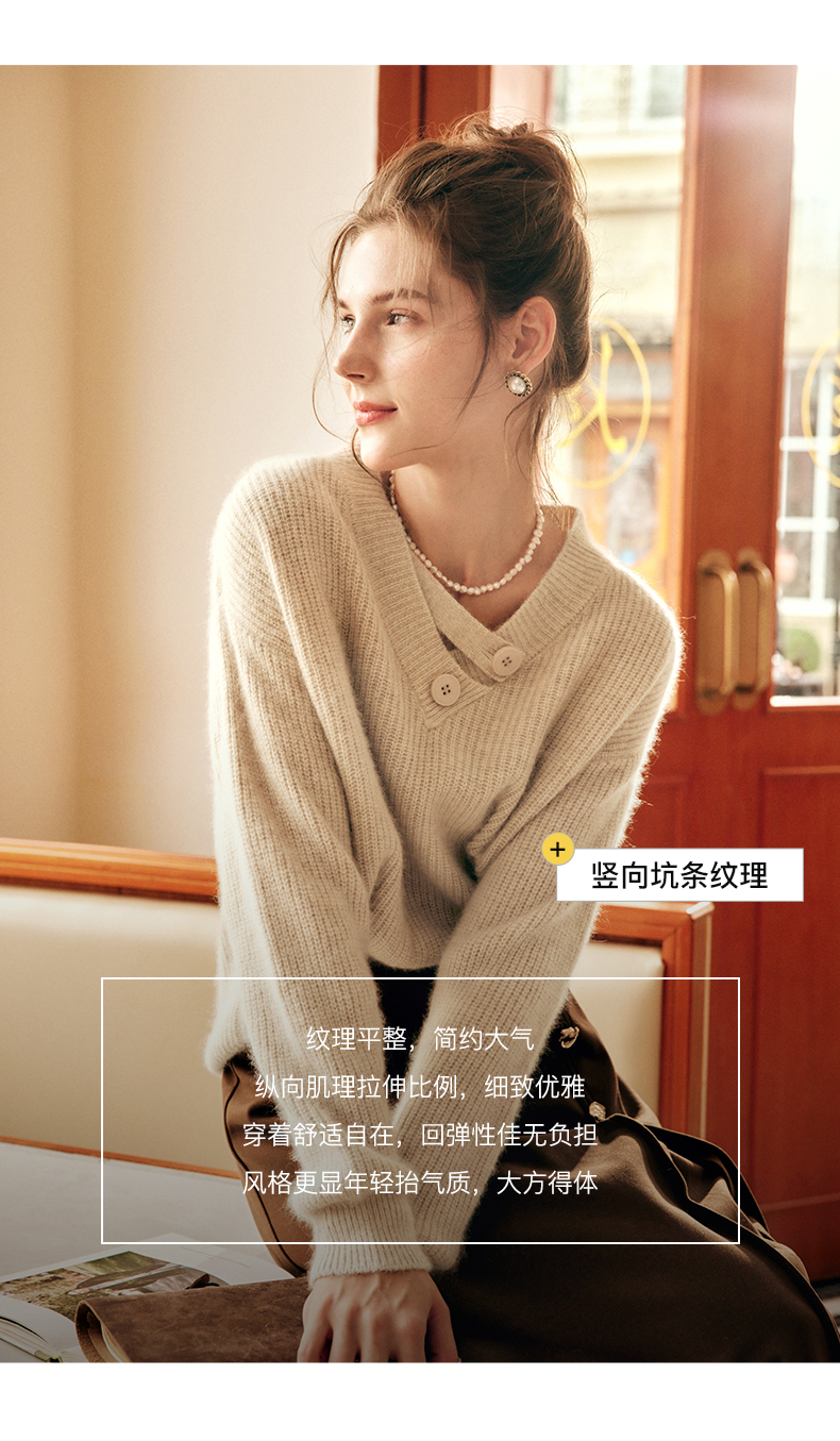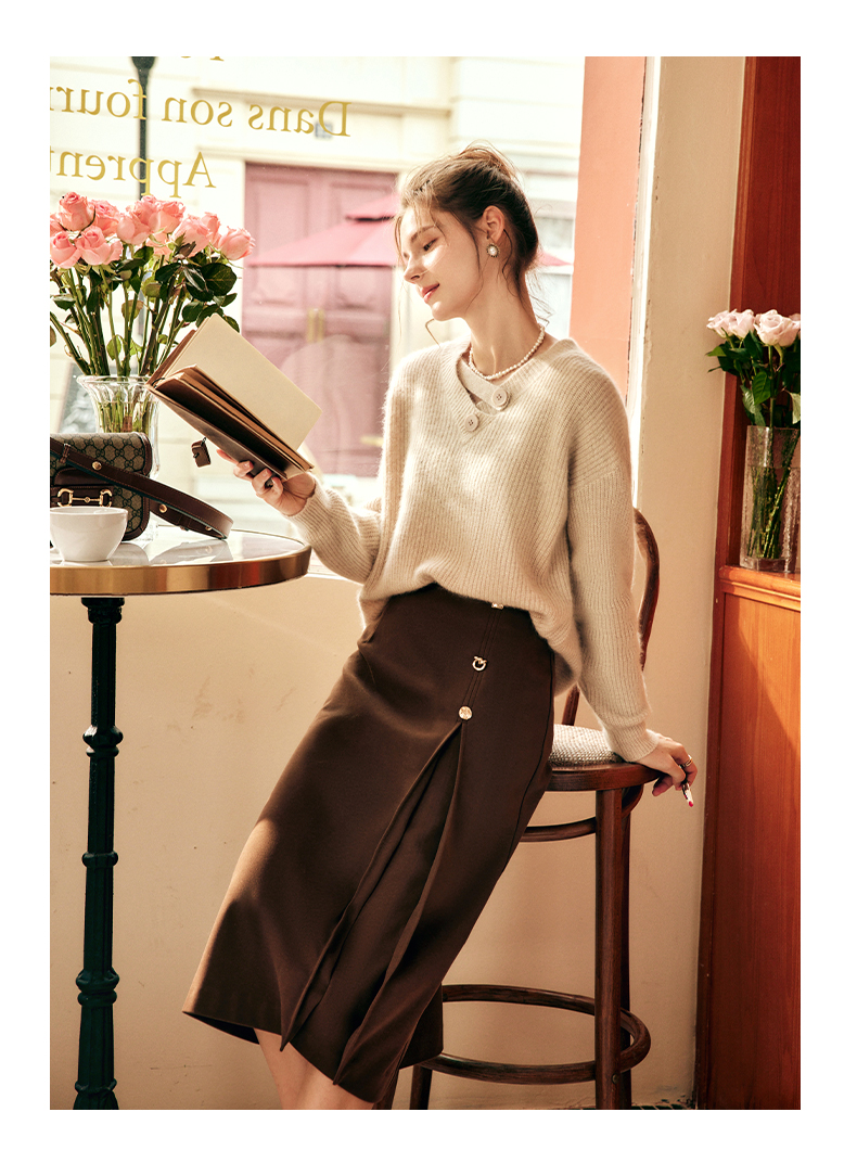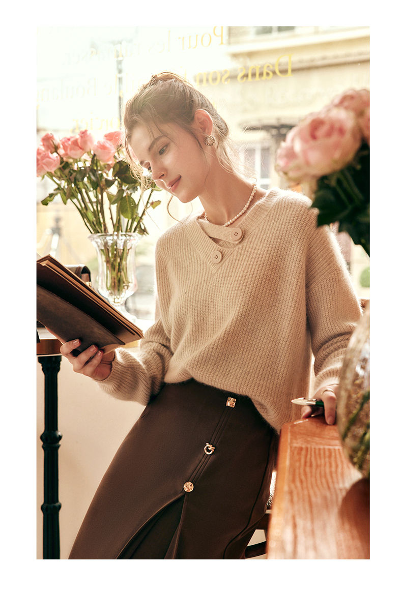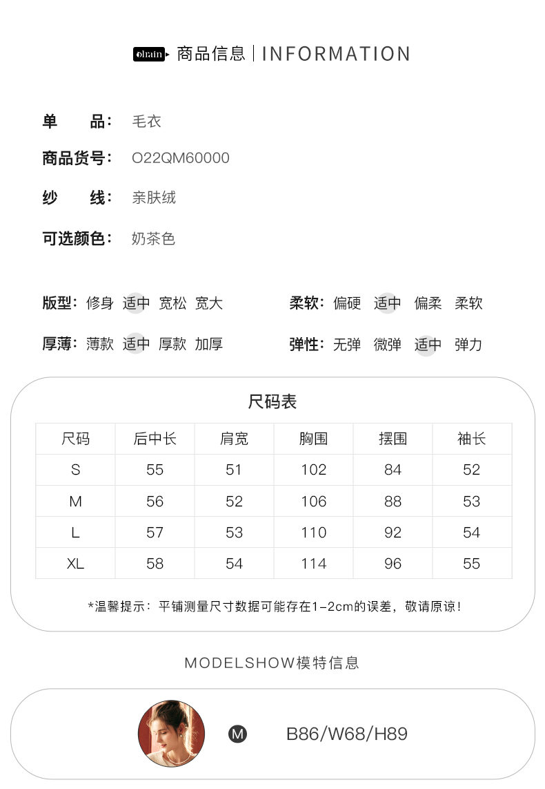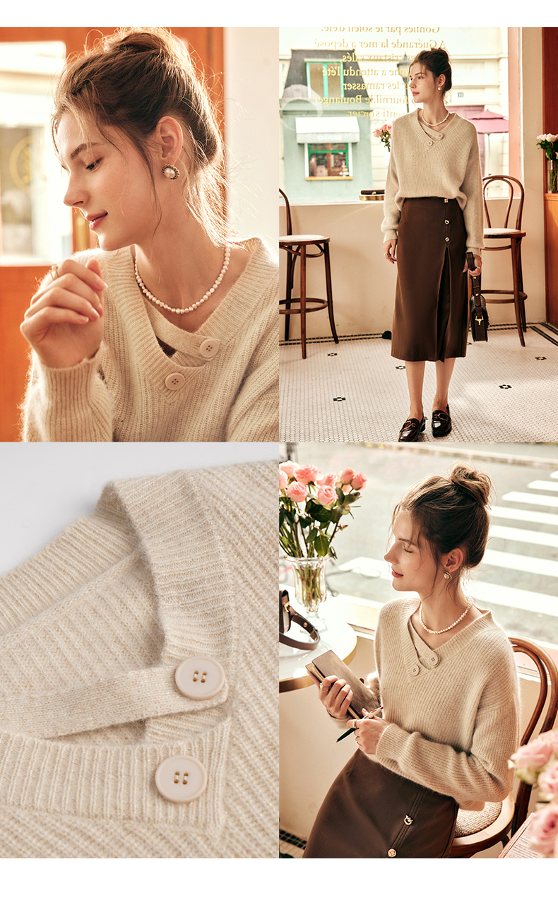 OLrain欧芮儿法式纯色毛衣女秋冬2022新款宽松不规则设计感针织衫