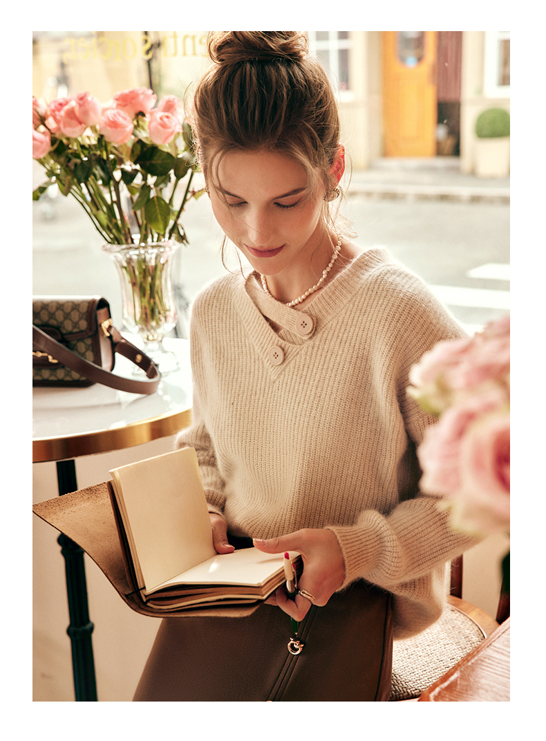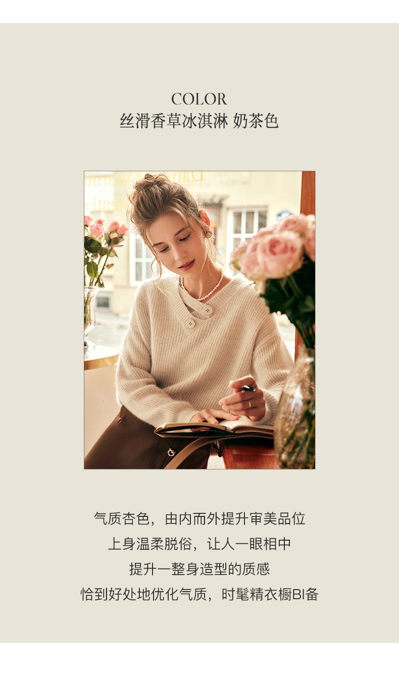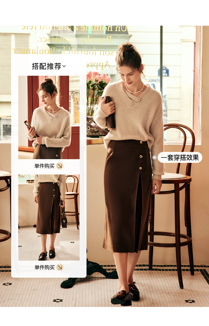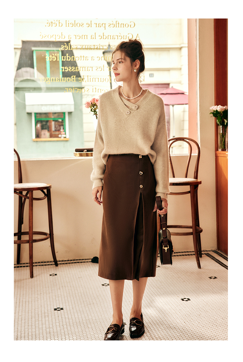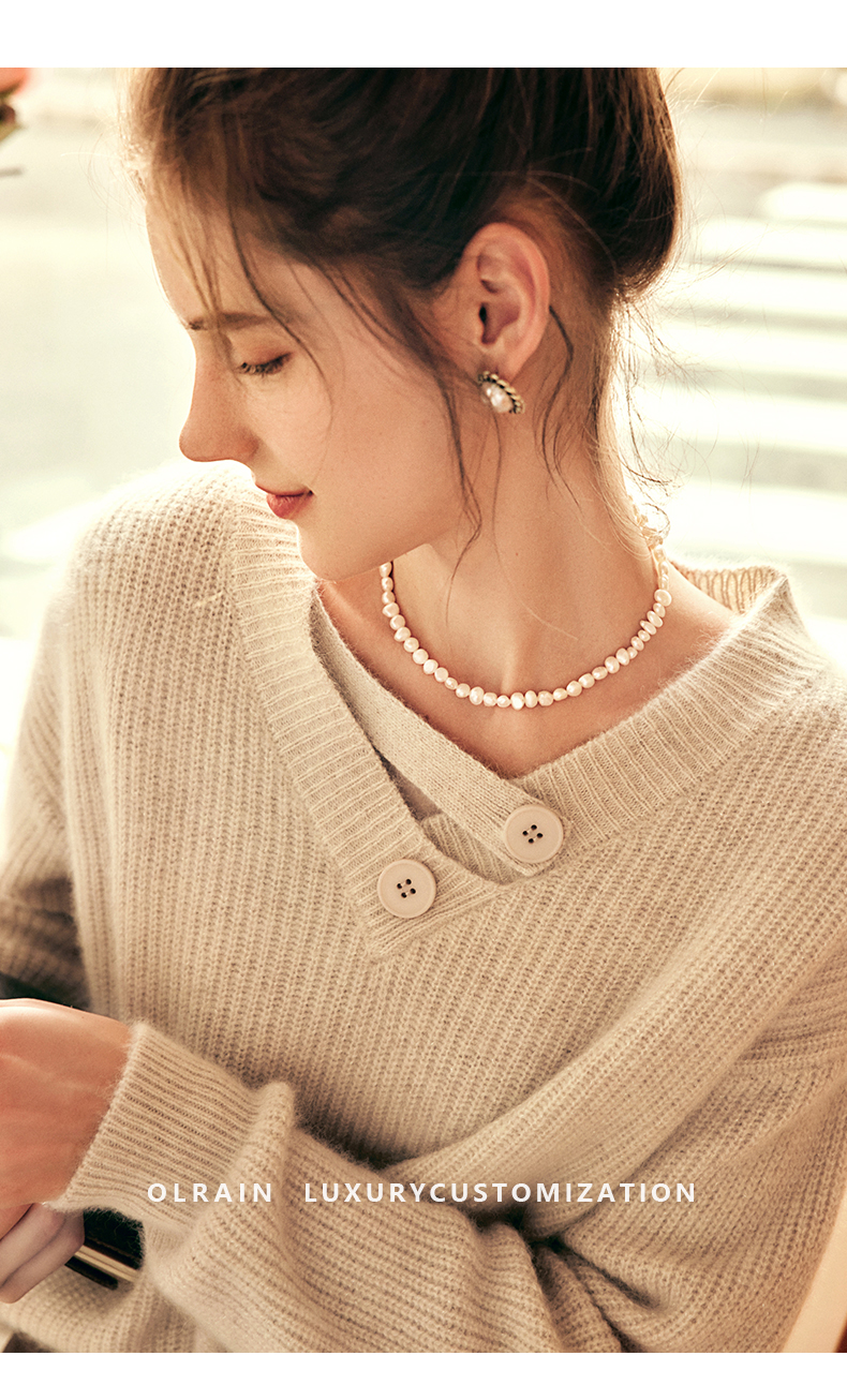 OLrain欧芮儿法式纯色毛衣女秋冬2022新款宽松不规则设计感针织衫