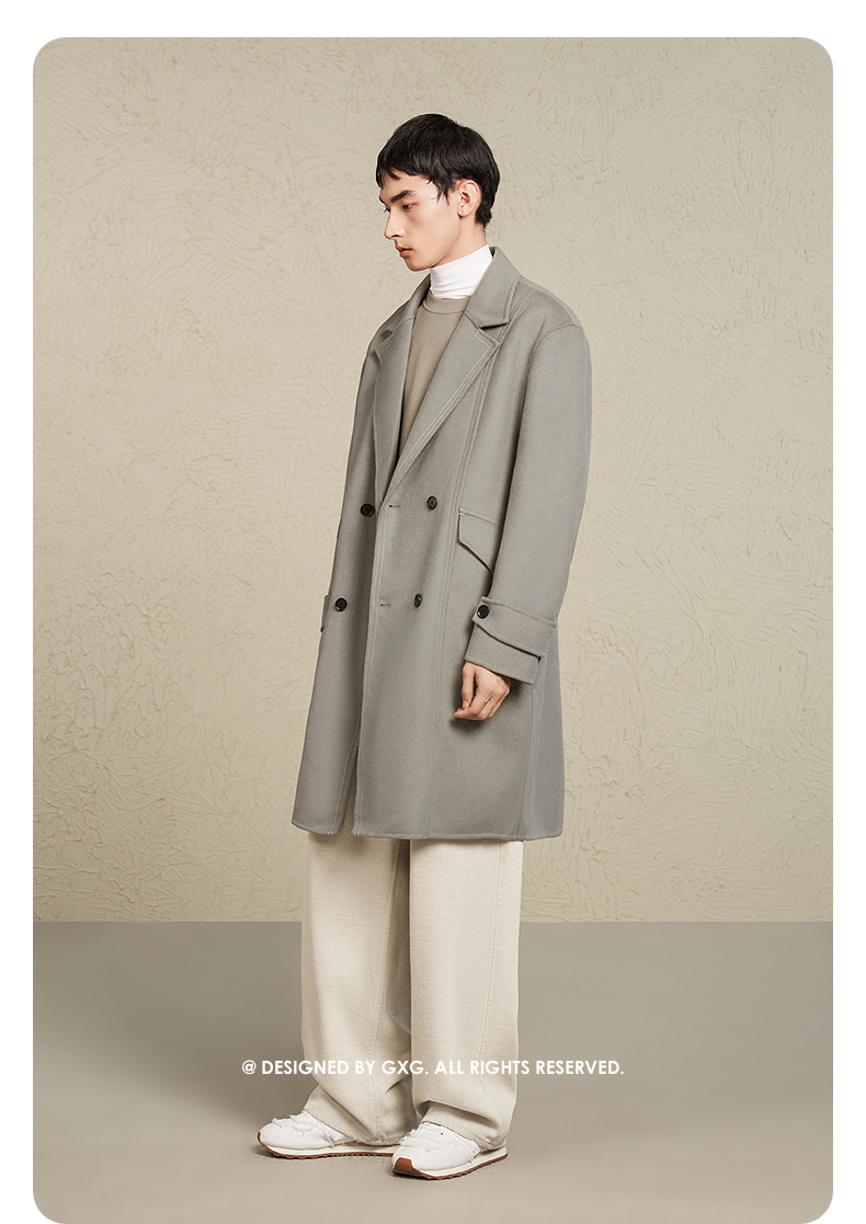 GXG男装 多色分割设计简约长款毛呢大衣外套男士 冬季热卖气质大衣