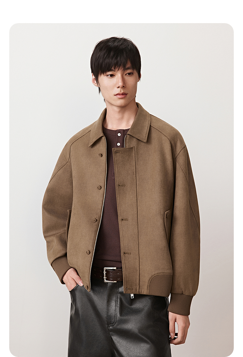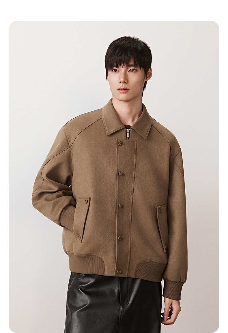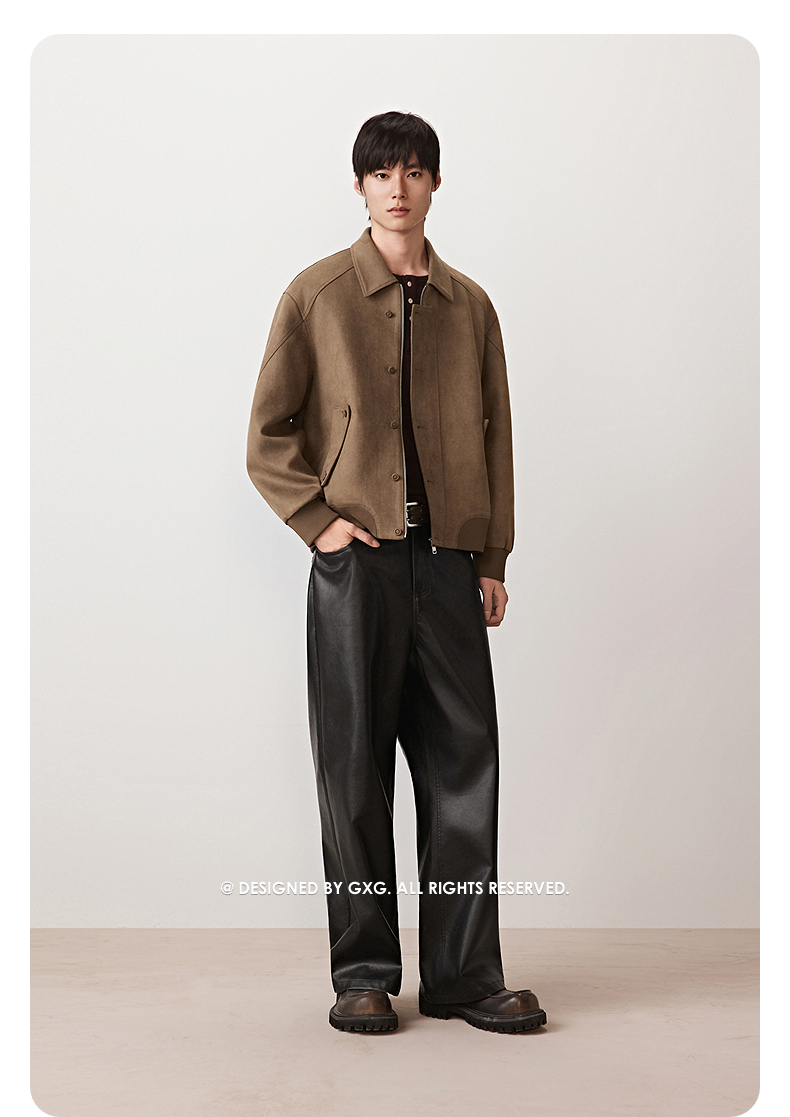 GXG男装 斜纹仿麂皮翻领夹克外套廓形不规则上衣 2025秋季热卖