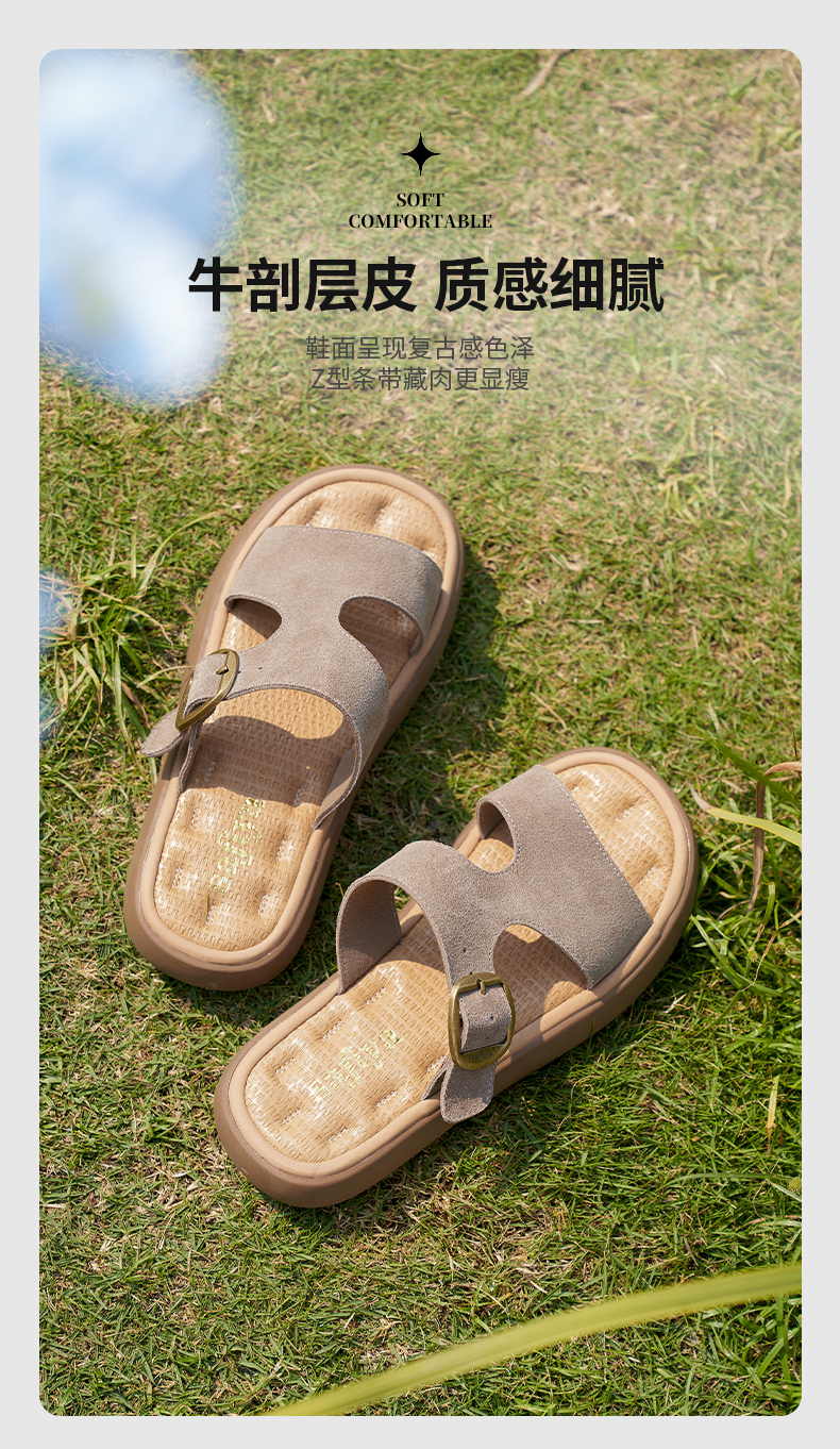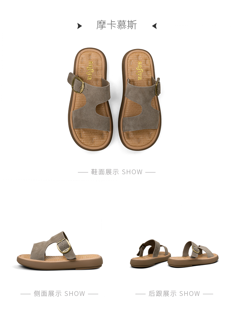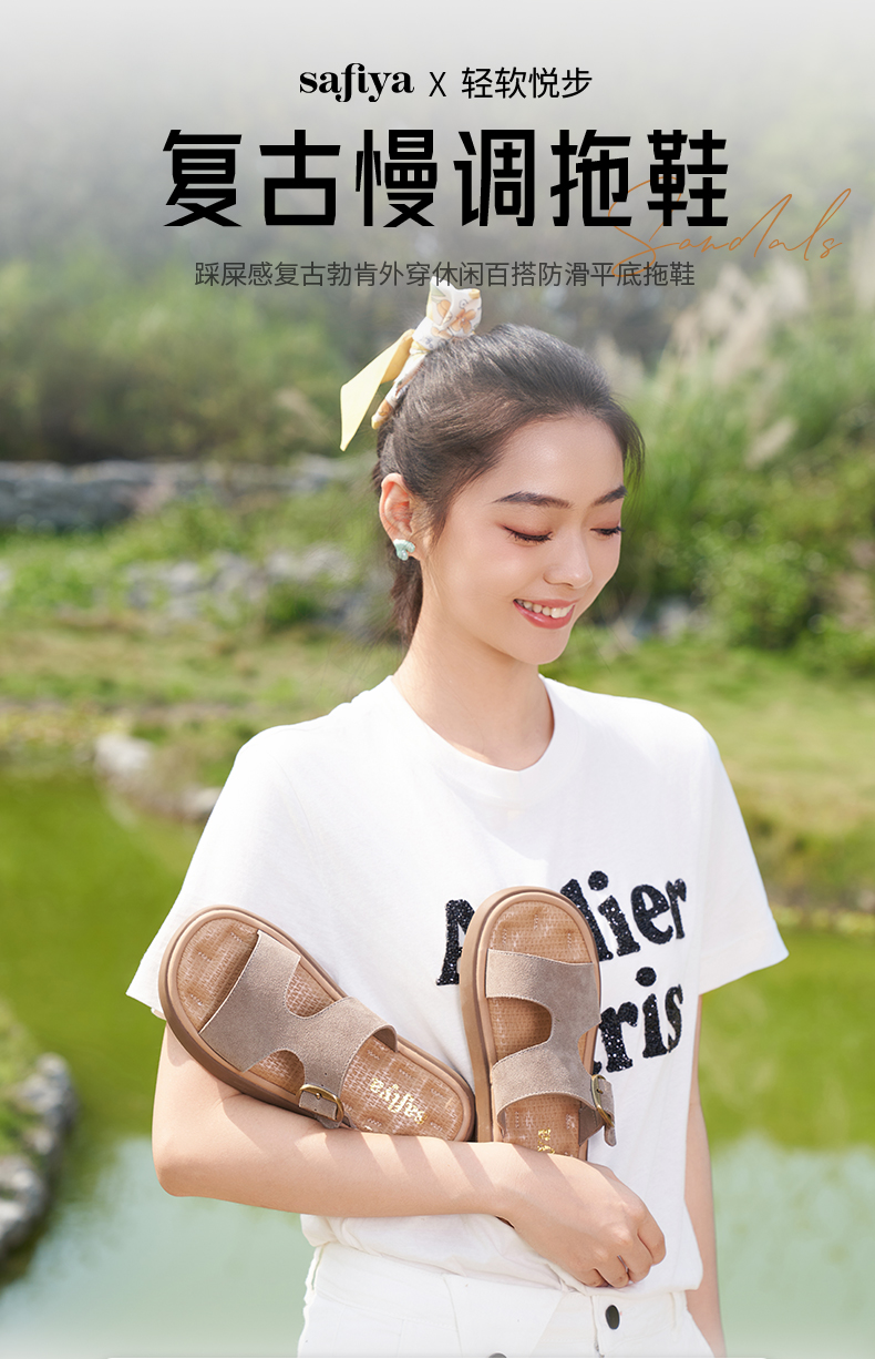 Safiya/索菲娅2025踩屎感复古勃肯外穿休闲百搭防滑平底拖鞋SFD2110166/SFD2110M66