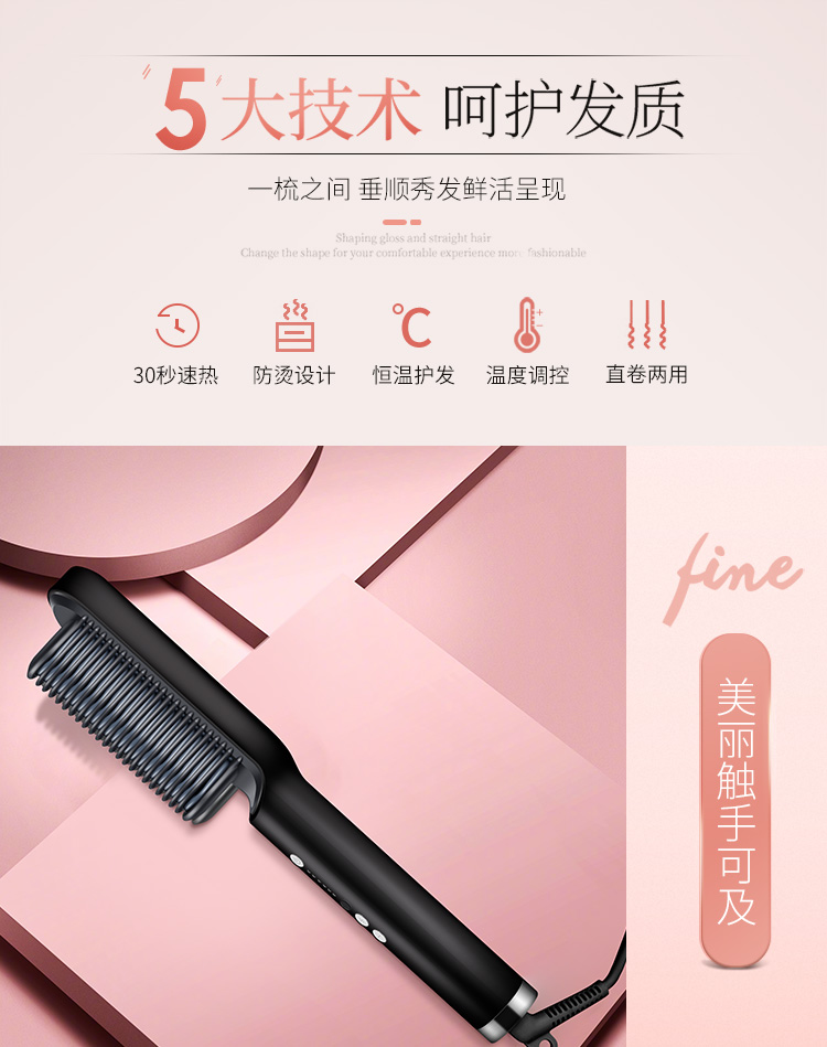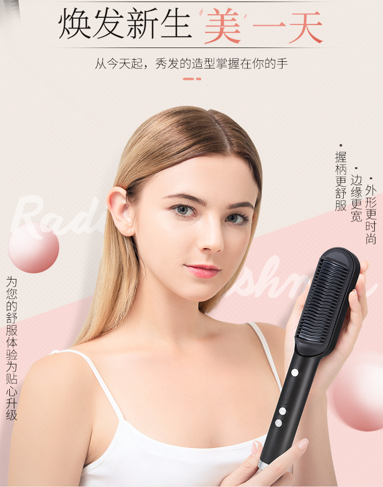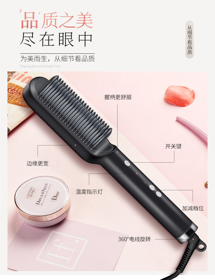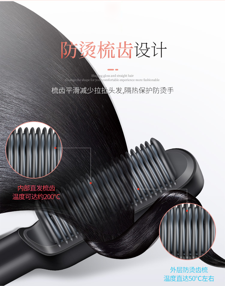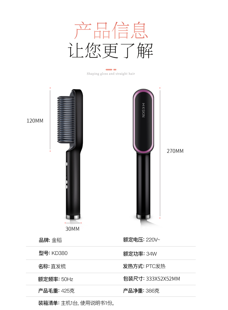 金稻(K-SKIN)直发梳 卷发棒 卷直发器 卷直两用 直发梳夹板 美发护发梳子 造型梳 KD380黑红
