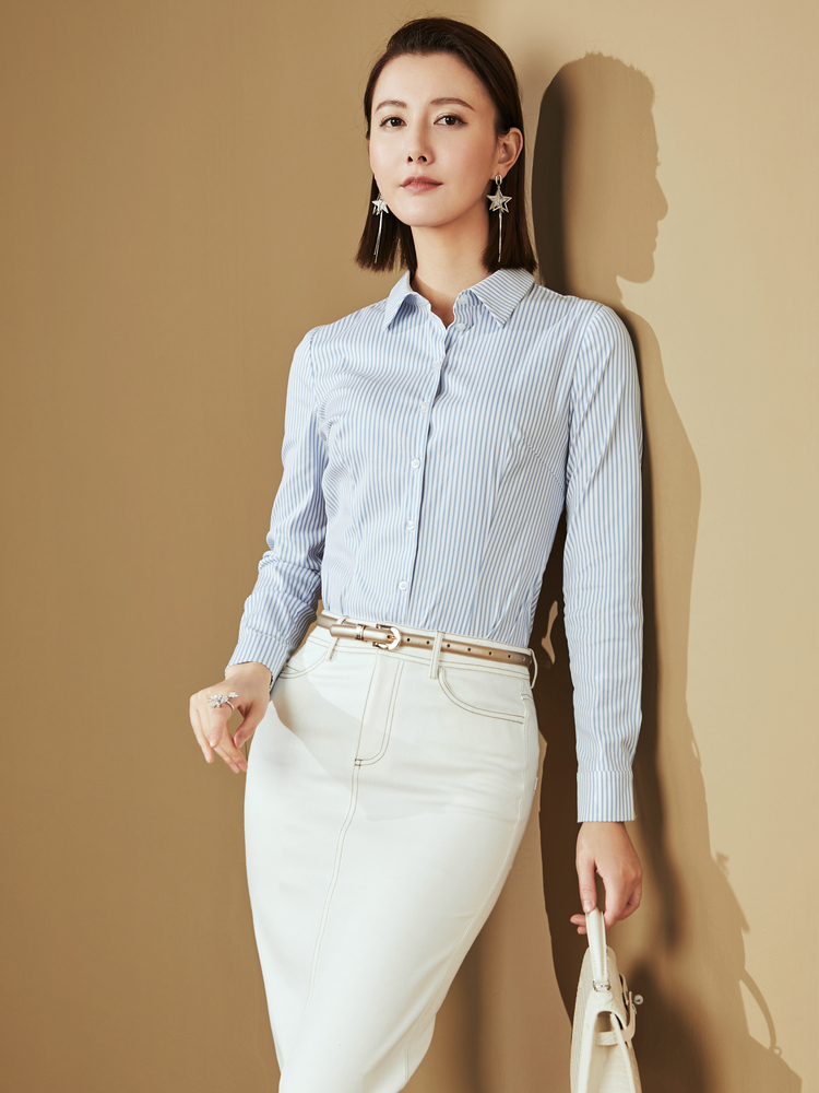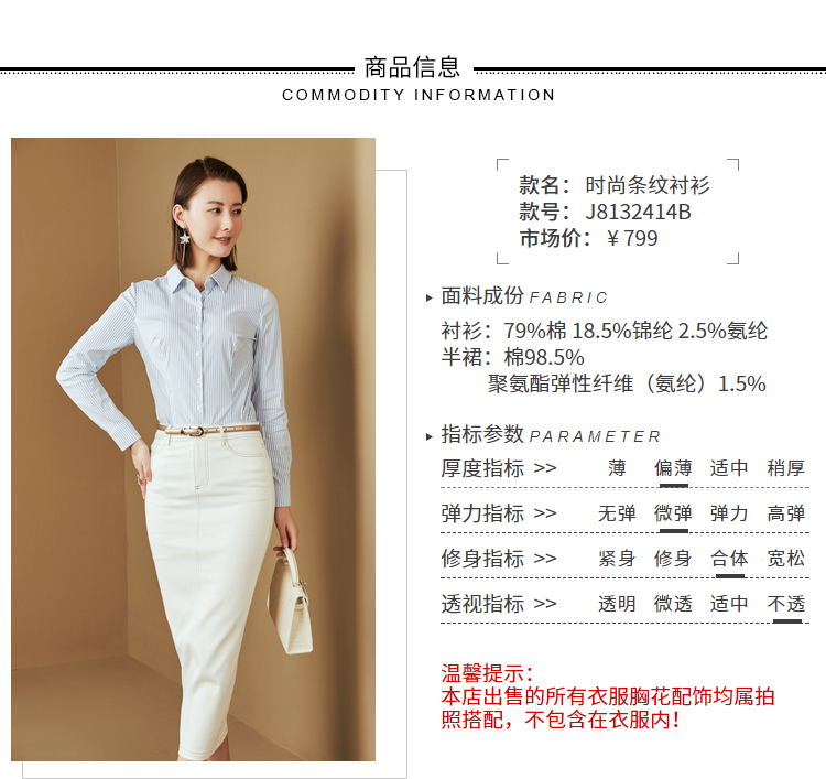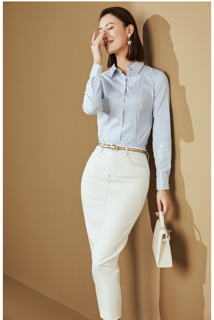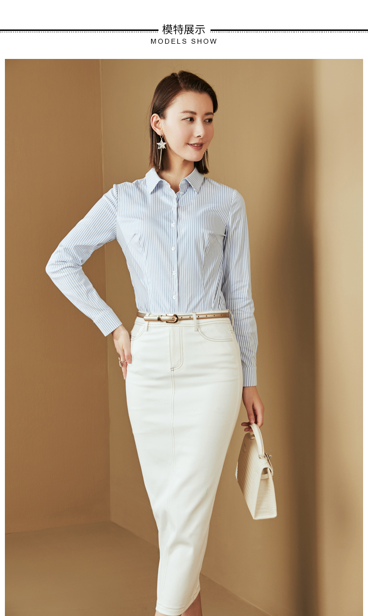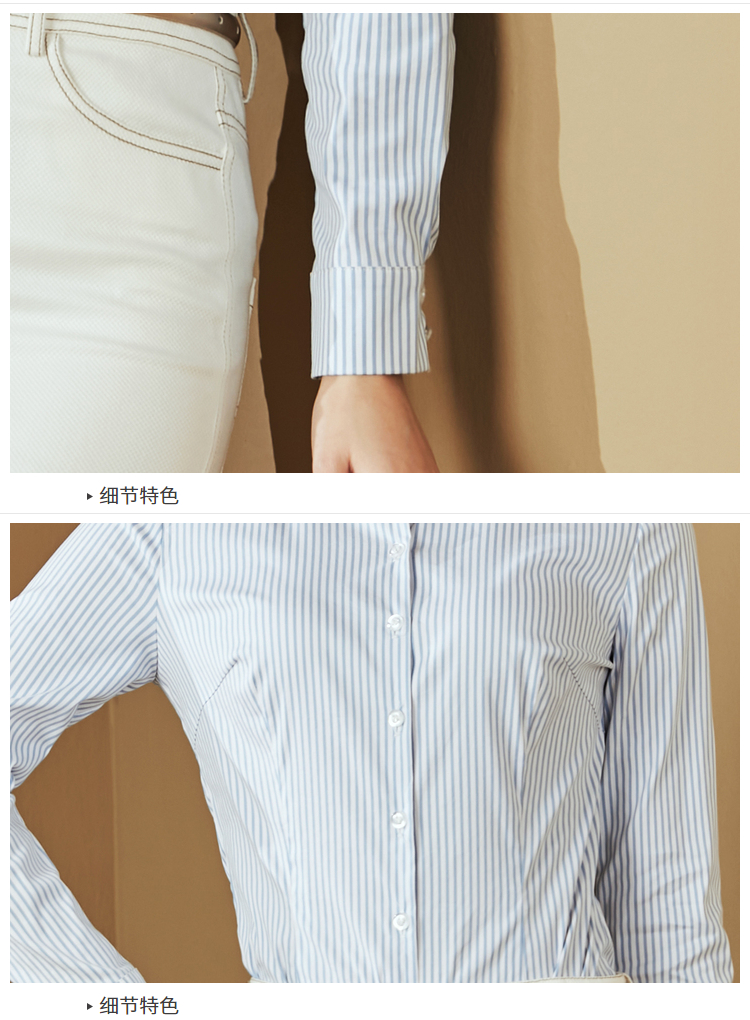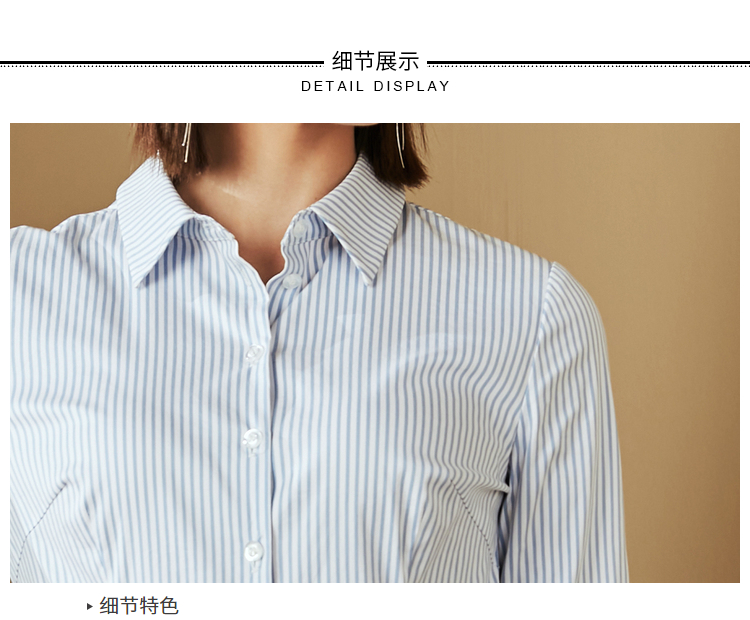 J8132414颈袖添香新款连体衬衣女士蓝白竖条纹衬衫J8132414(四季可穿)