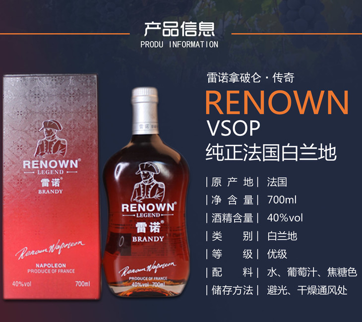 雷诺拿破仑传奇特级白兰地礼盒装700ml 单瓶装