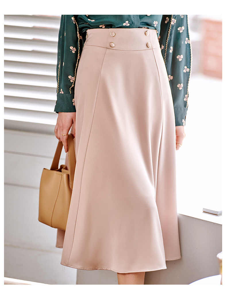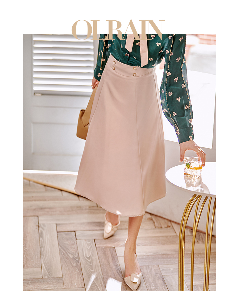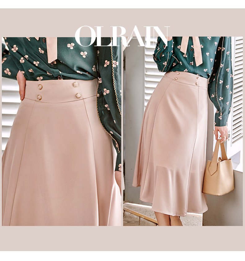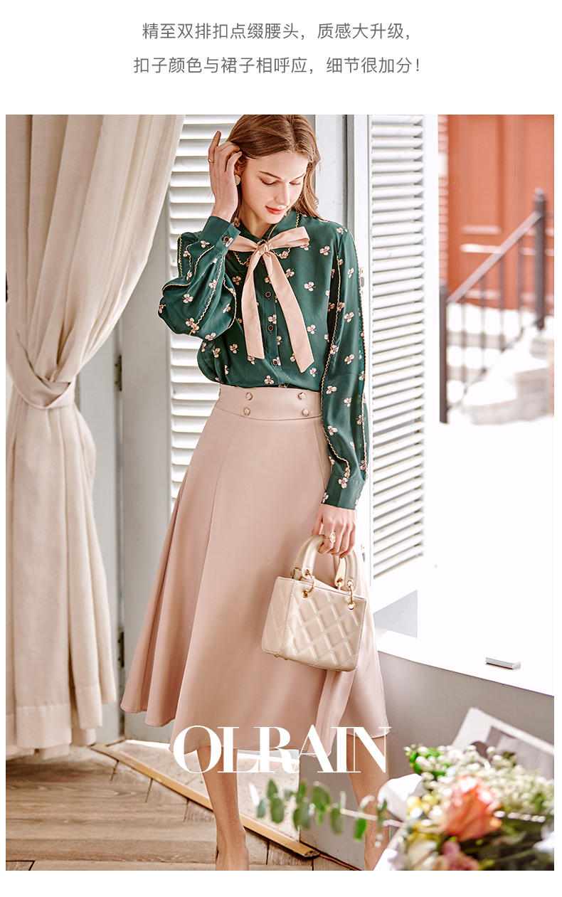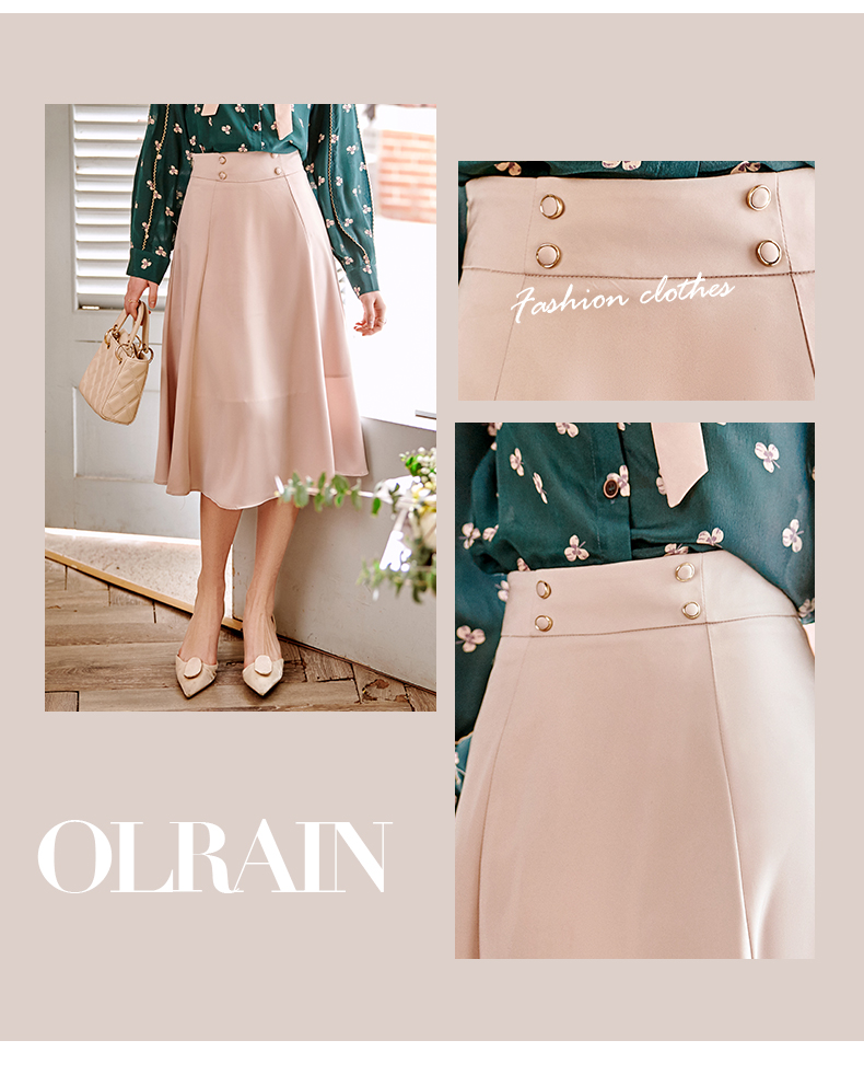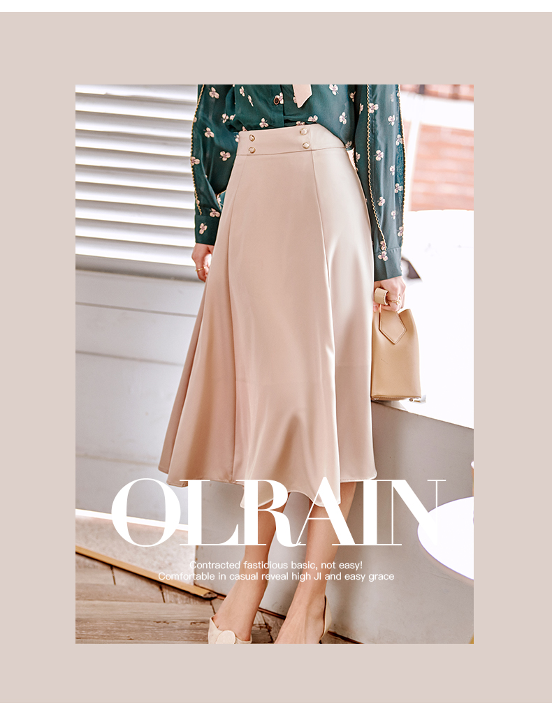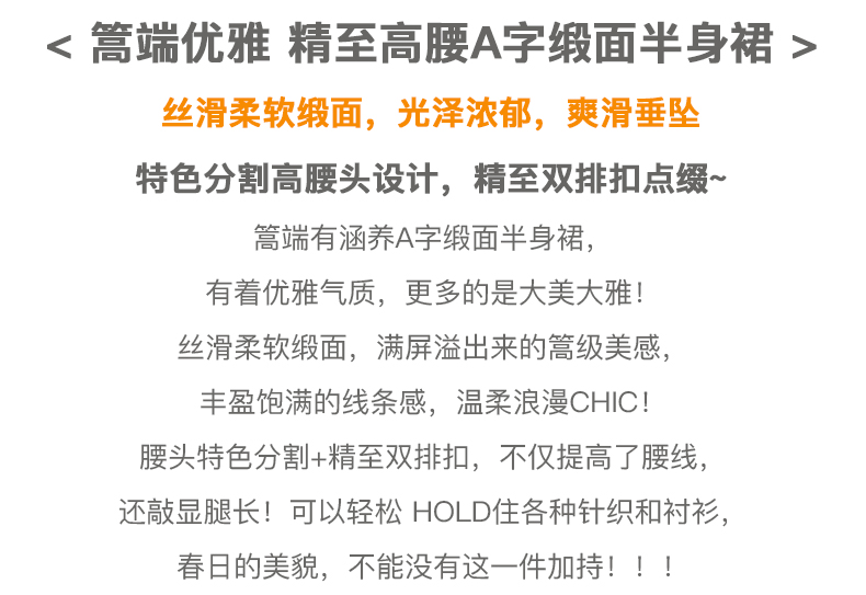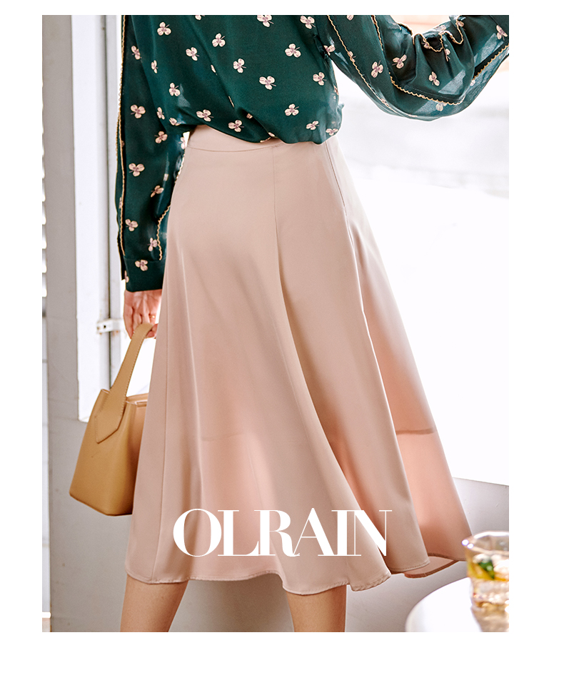 欧芮儿缎面半身裙春季新款高腰显瘦时尚气质优雅年轻垂坠感A字裙