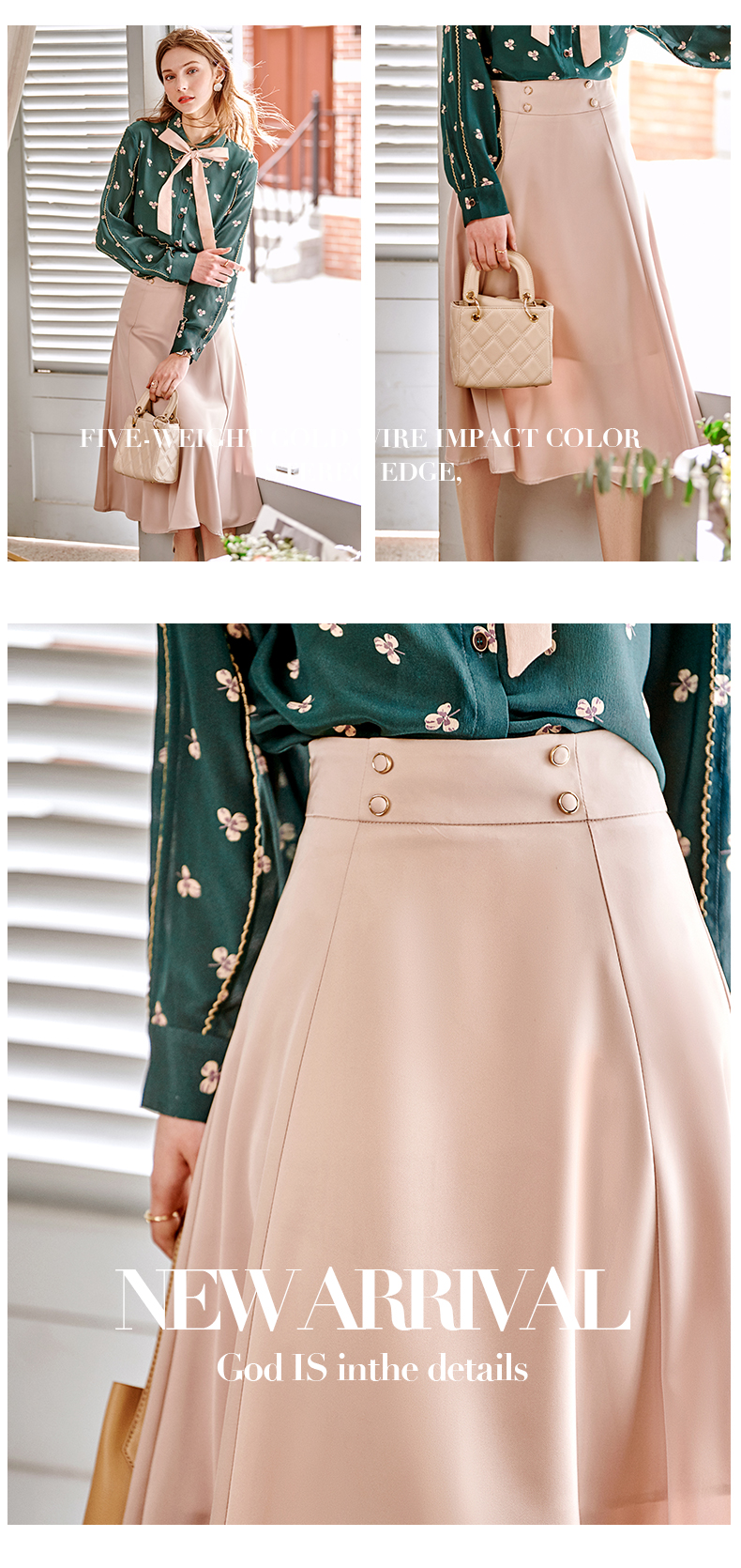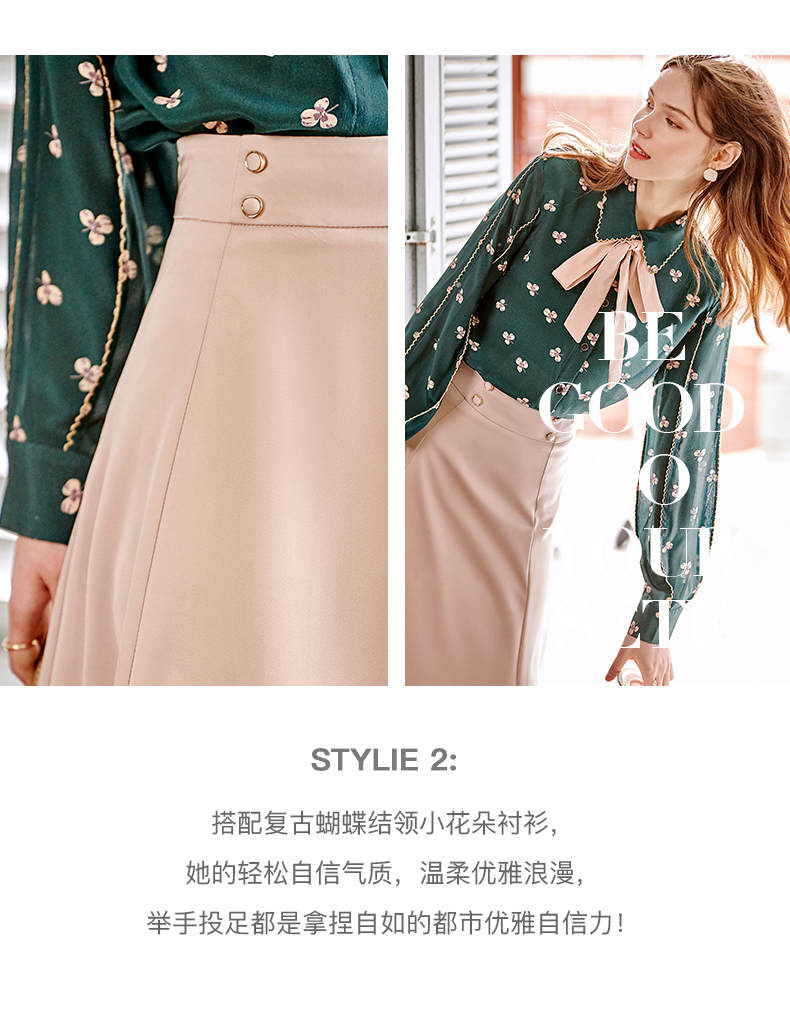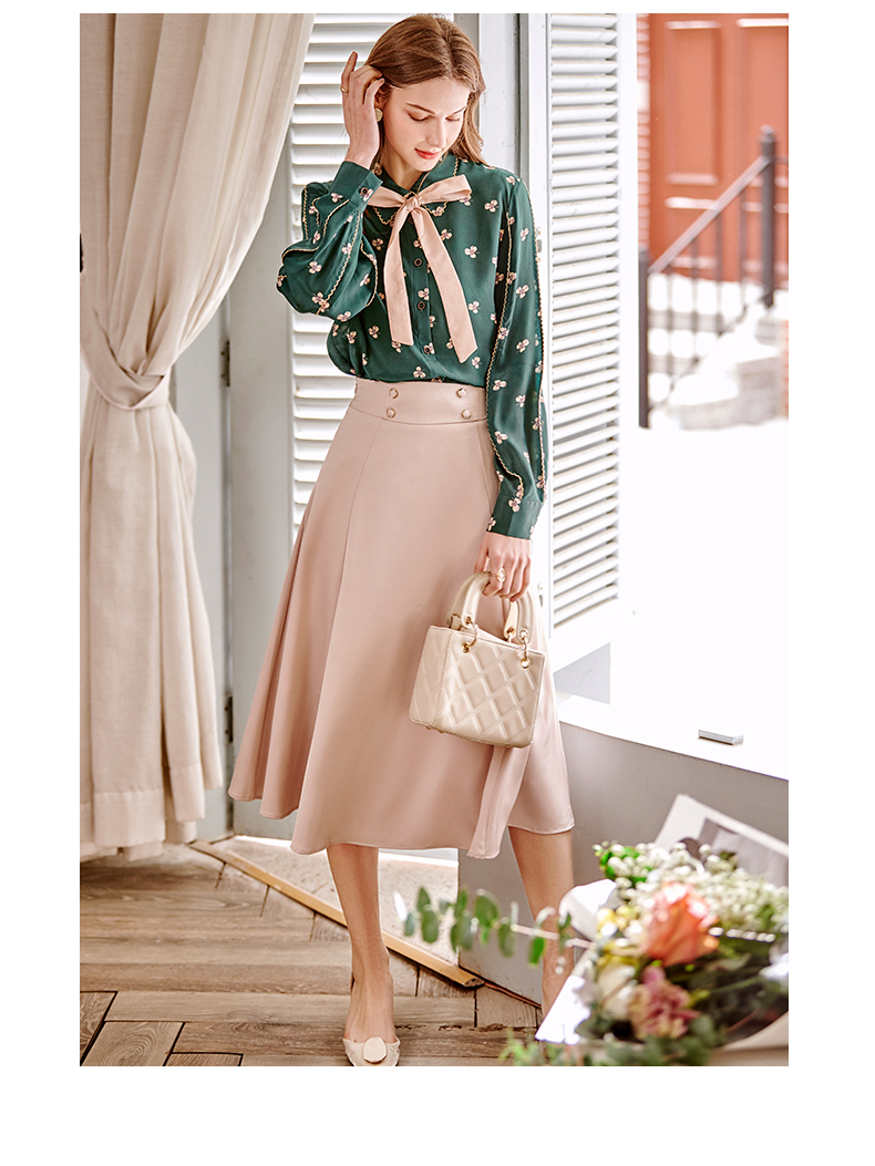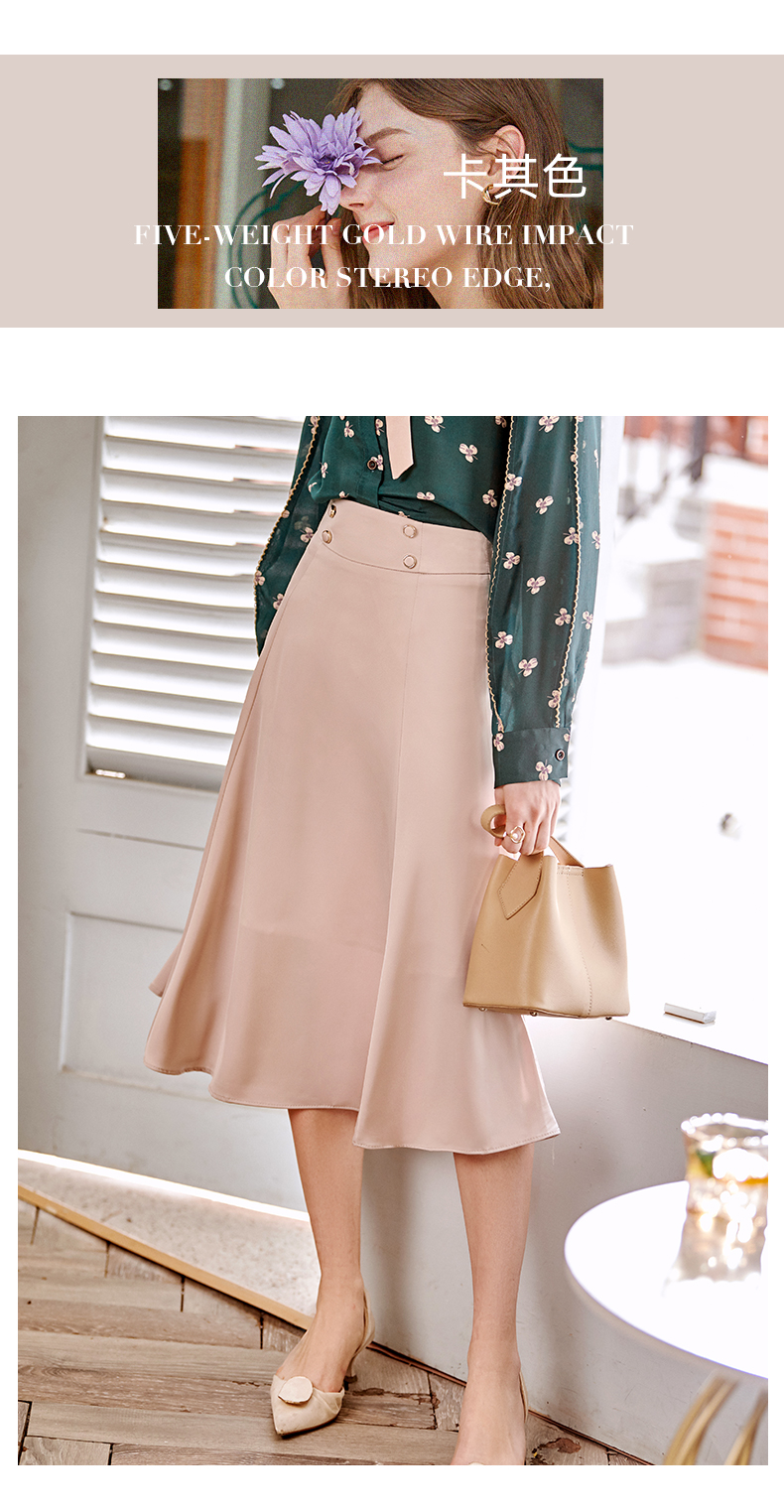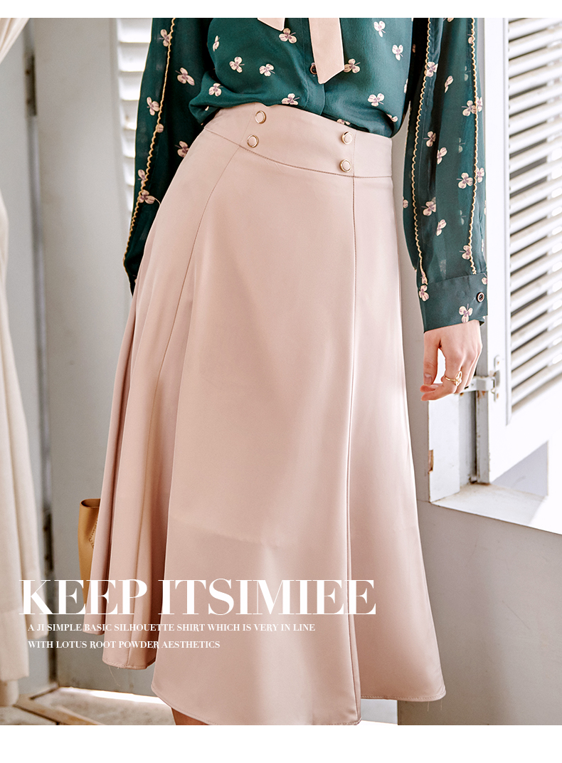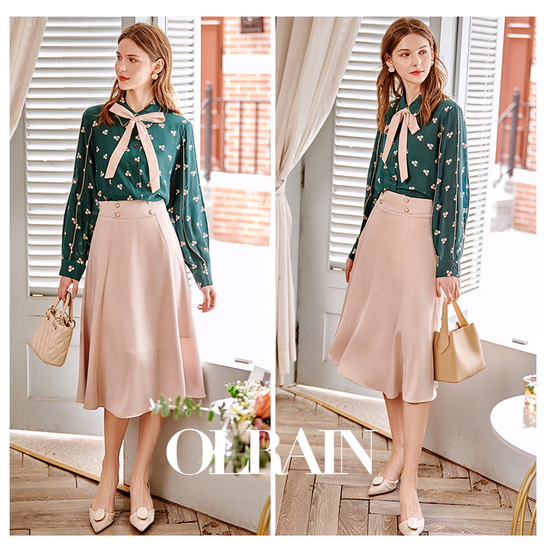 欧芮儿缎面半身裙春季新款高腰显瘦时尚气质优雅年轻垂坠感A字裙