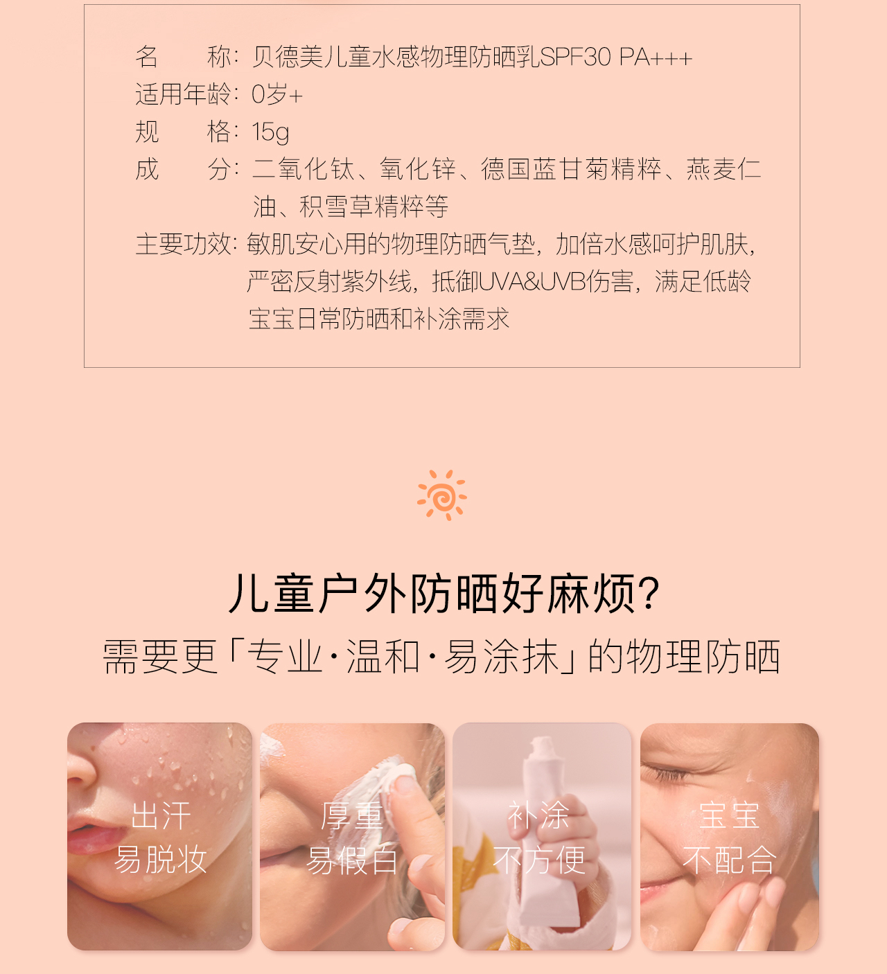 贝德美儿童水感物理防晒乳 气垫款
