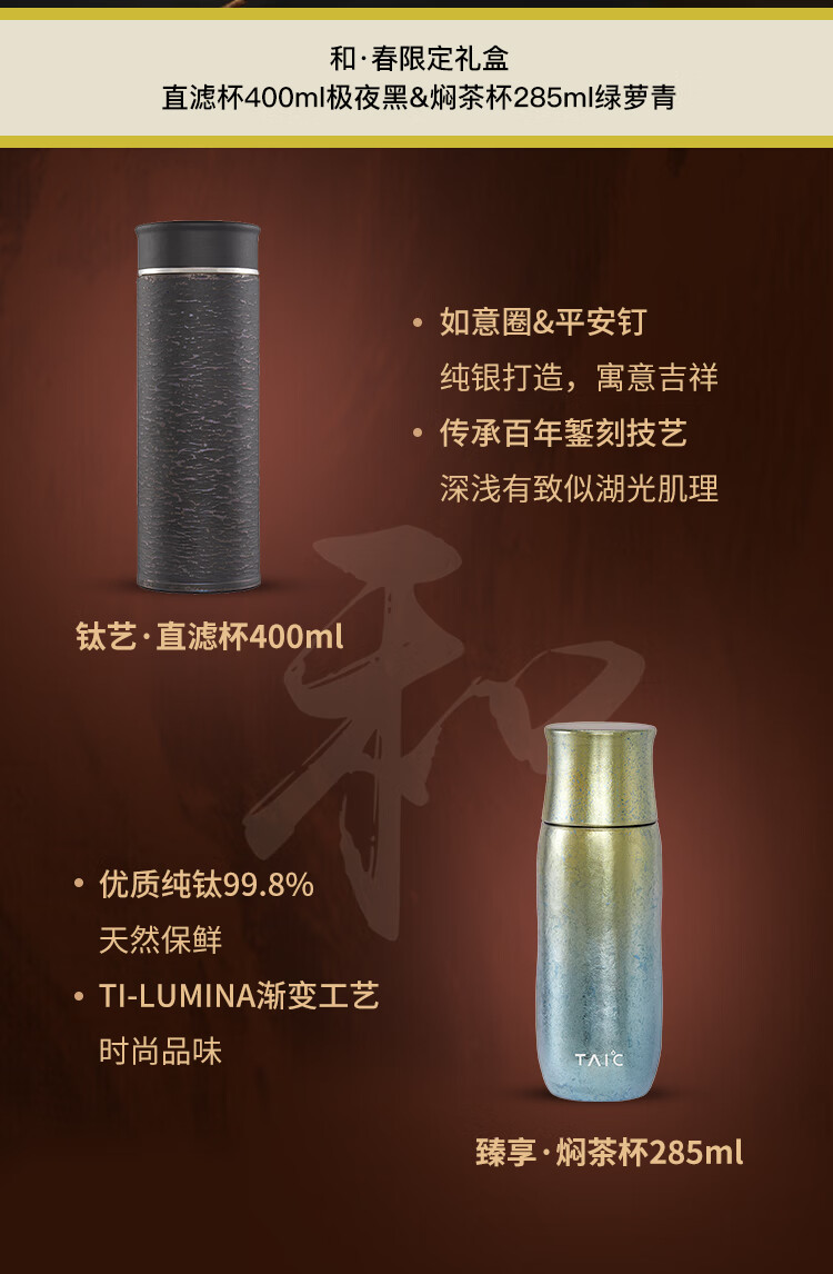 TAIC太可纯钛保温杯礼盒套装送礼物送爱人送长辈送领导