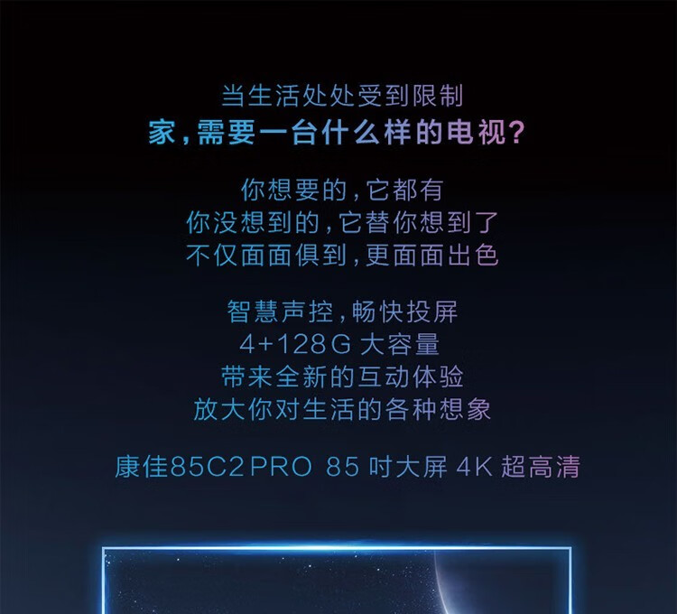 康佳(KONKA)85C2 PRO 85英寸 4K超高清4G+128G大内存AI语音网络平板液晶电视 康佳85C2 PRO 85英寸
