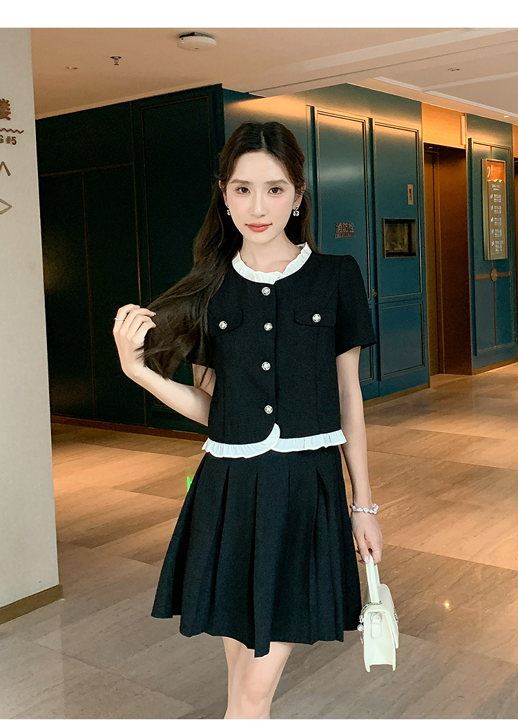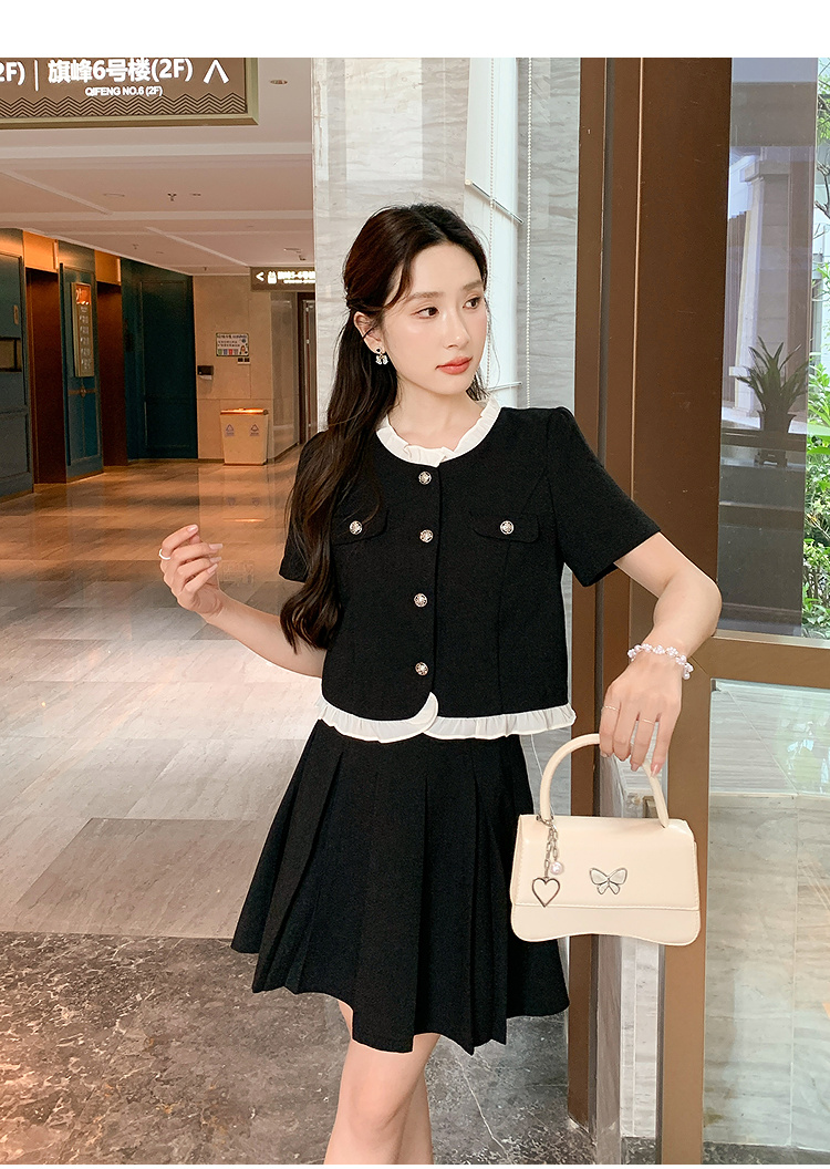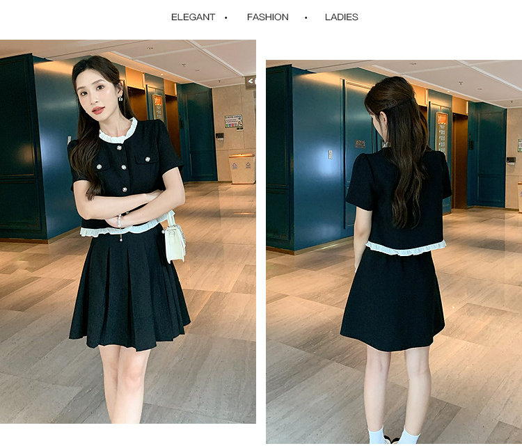 奢姿大码女装2025夏季小香风花边减龄套装胖妹妹时尚百褶两件套9952921932
