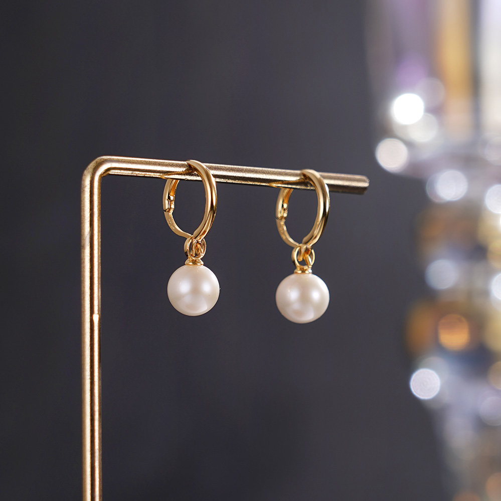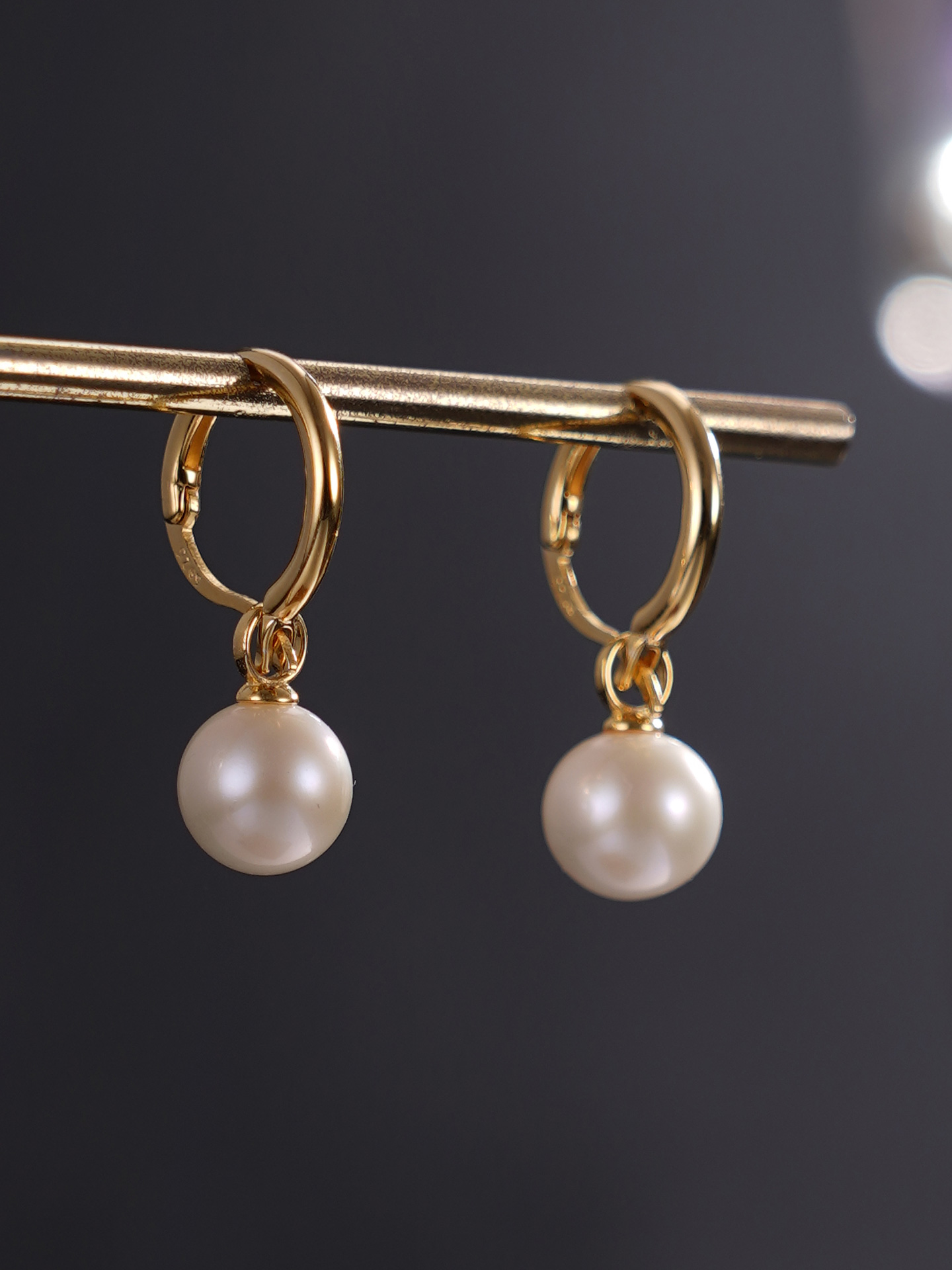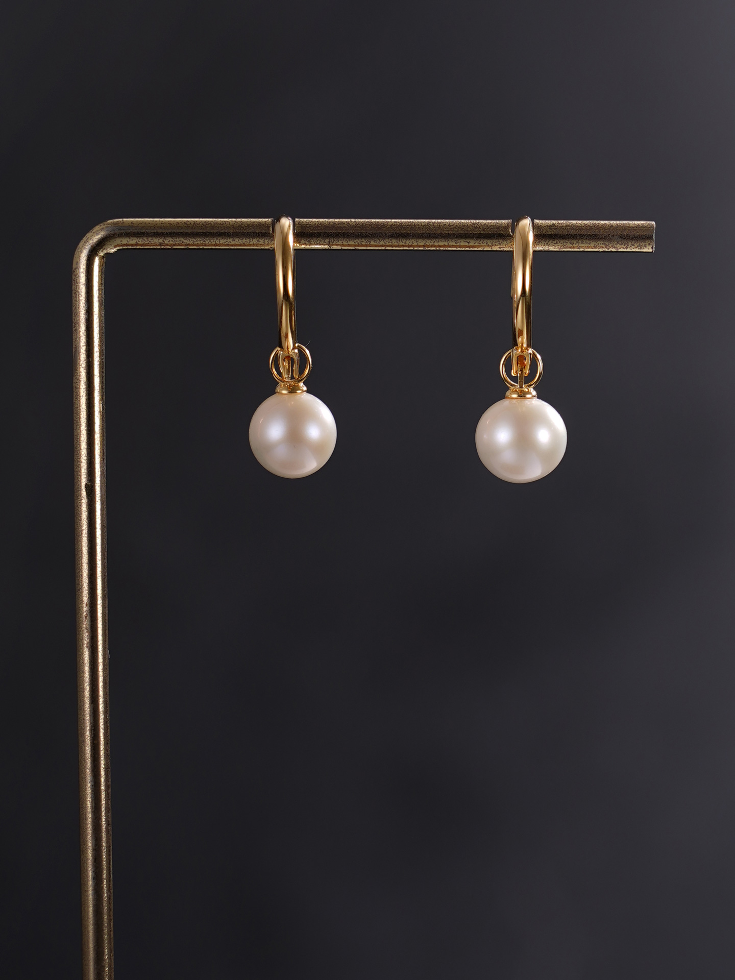 子佩集【雪魄凝辉】银S925珍珠惜王妃耳环【MLEH005】8mm珠镀金扣环圆圈2601