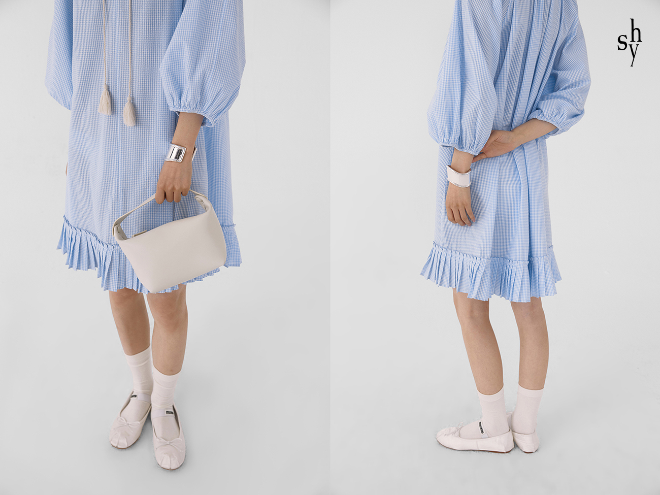 shyshystill/shy202307021/双色格子纯色流苏系带松弛感长款衬衫裙