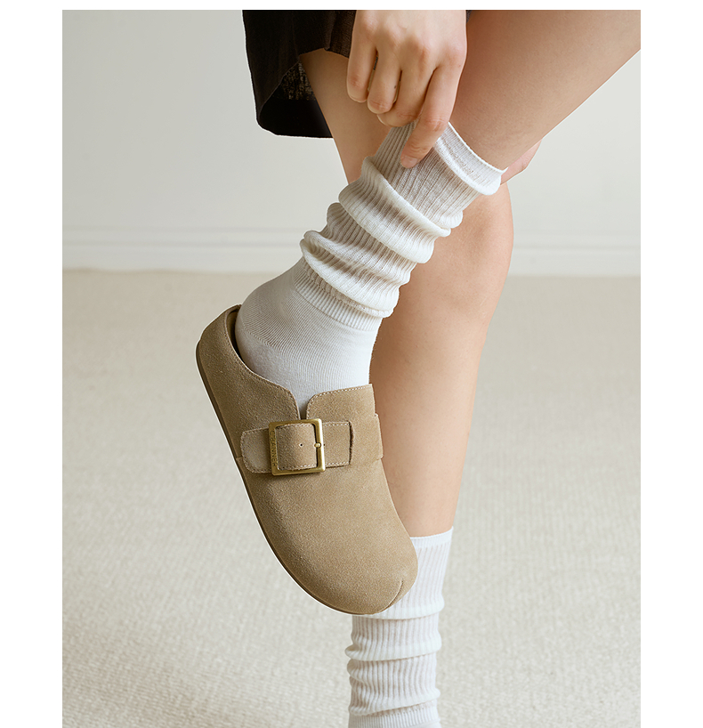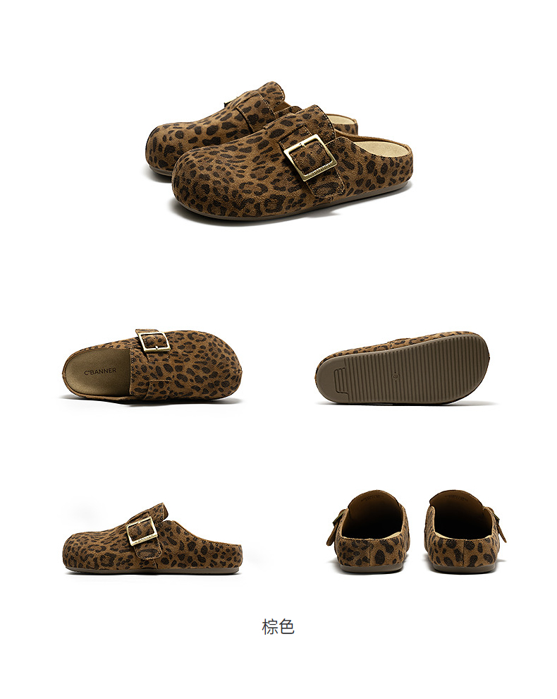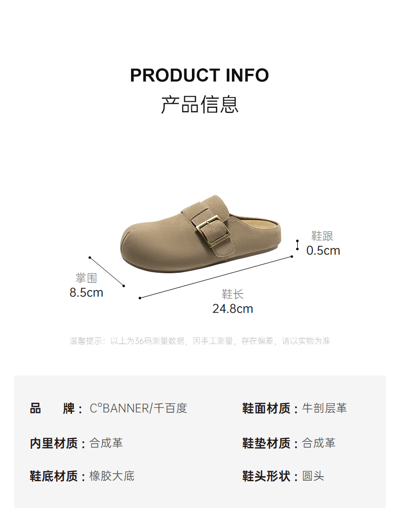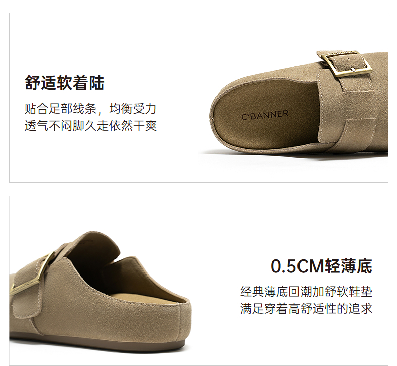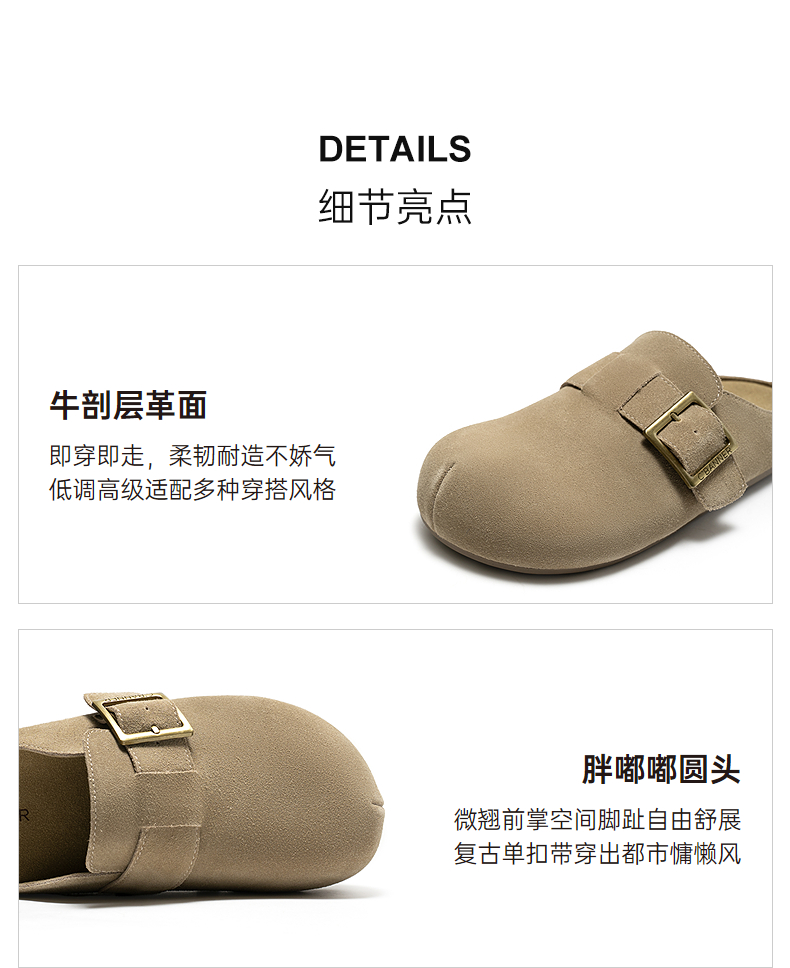 千百度平底勃肯鞋女2026夏季新款丑萌鞋薄底复古外穿一脚蹬凉拖鞋A26288710
