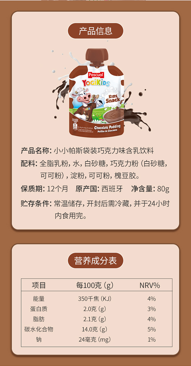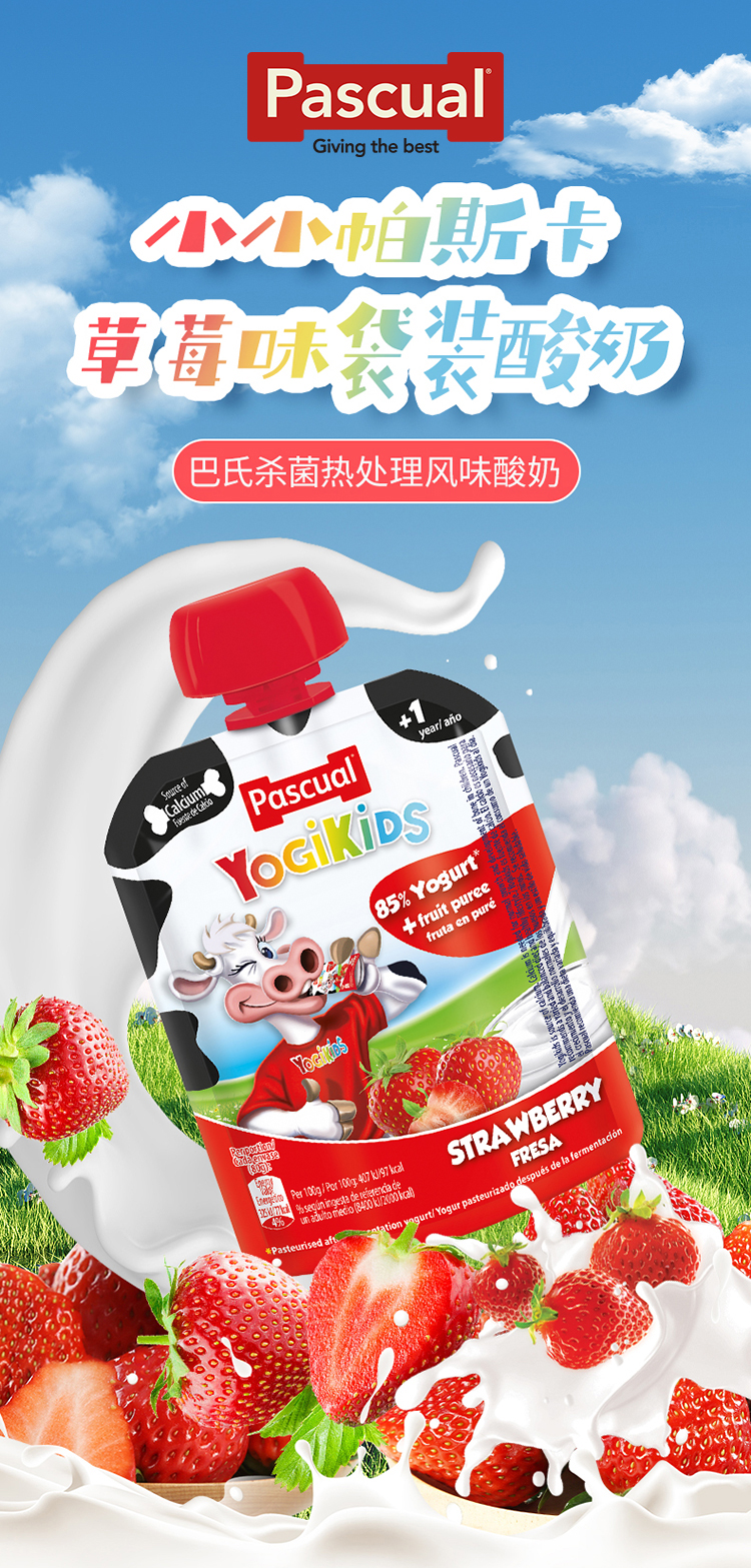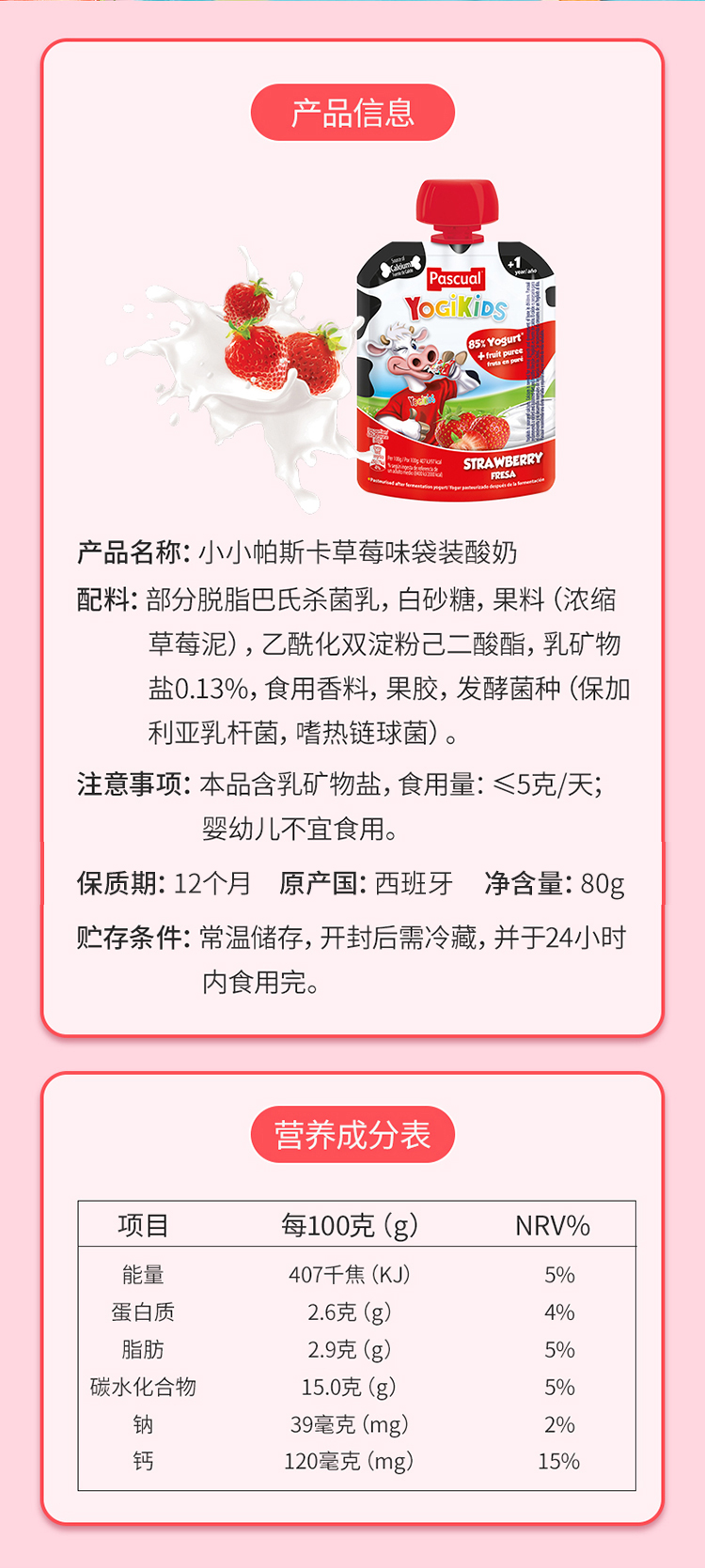 3岁+ | 80g*4袋 | PASCUAL 小小帕斯卡 草莓香蕉味草莓味袋装酸奶宝宝辅食