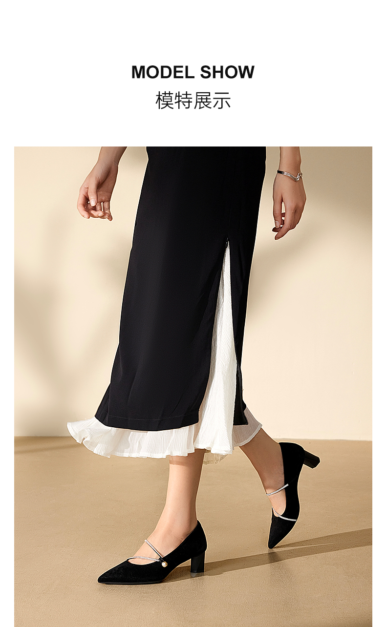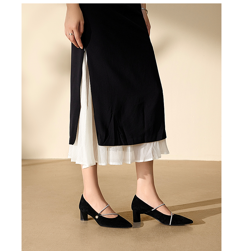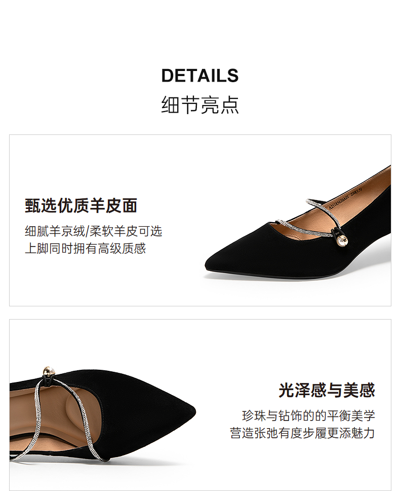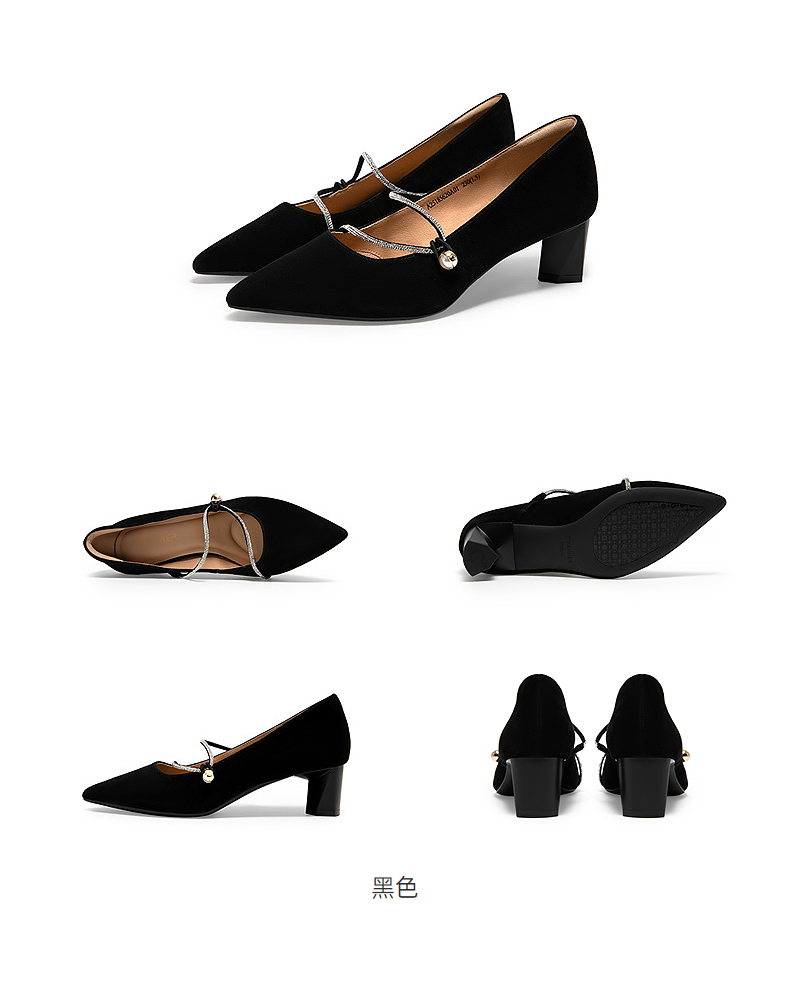 【静音系列】千百度小猫跟羊皮浅口法式单鞋女秋季高跟鞋A24482908