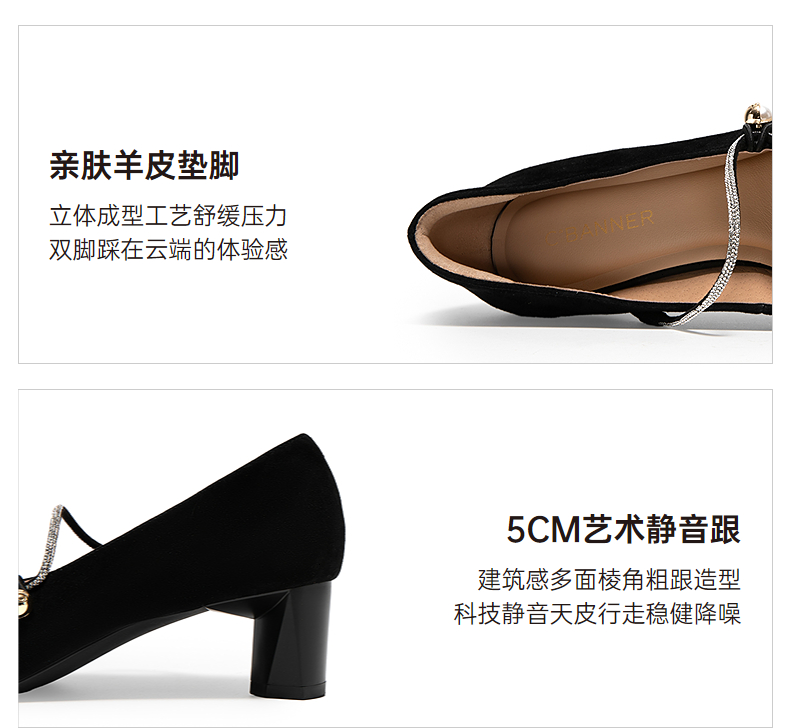 【静音系列】千百度粗高跟鞋女款通勤羊皮浅口单鞋A25185620